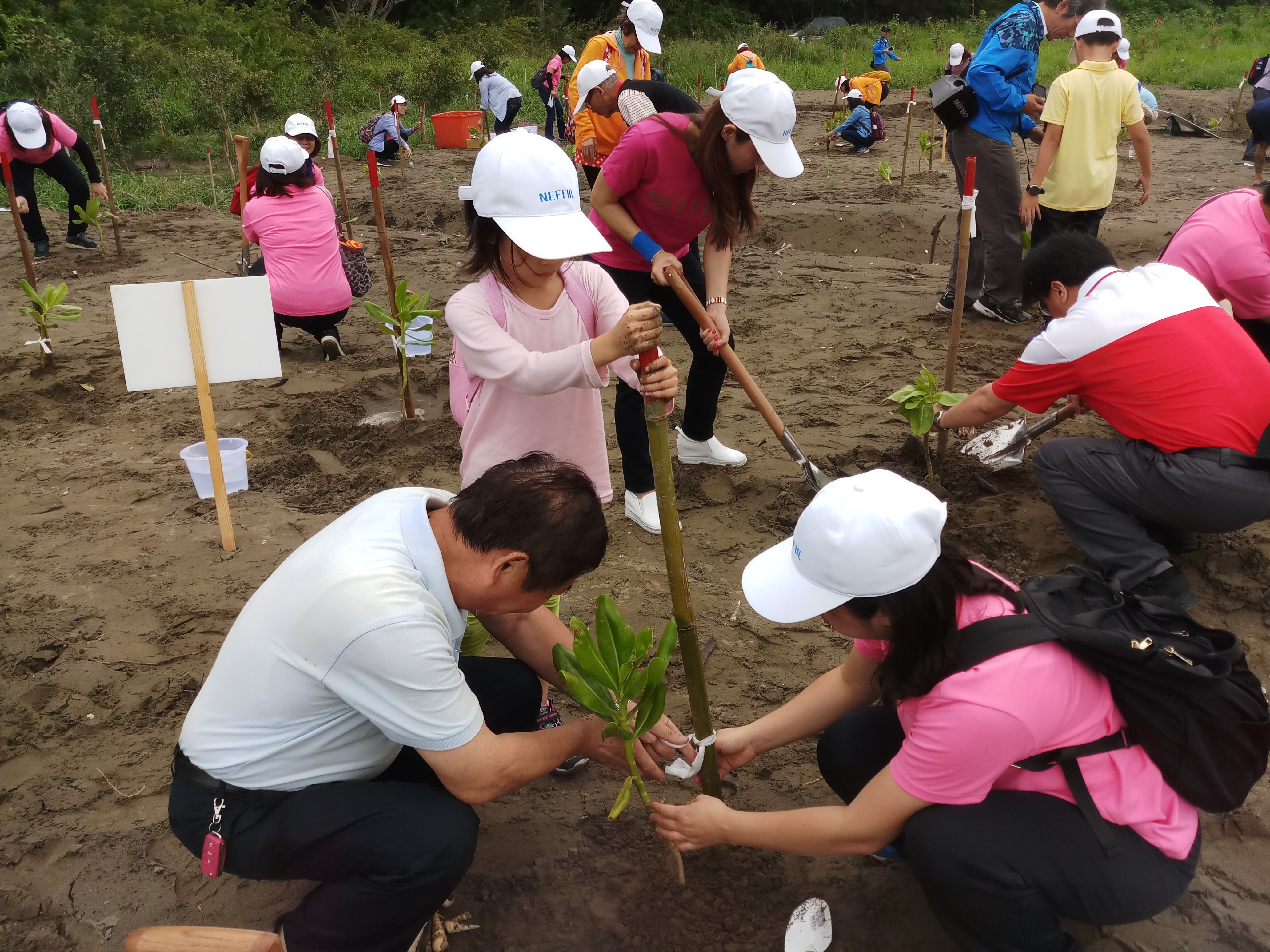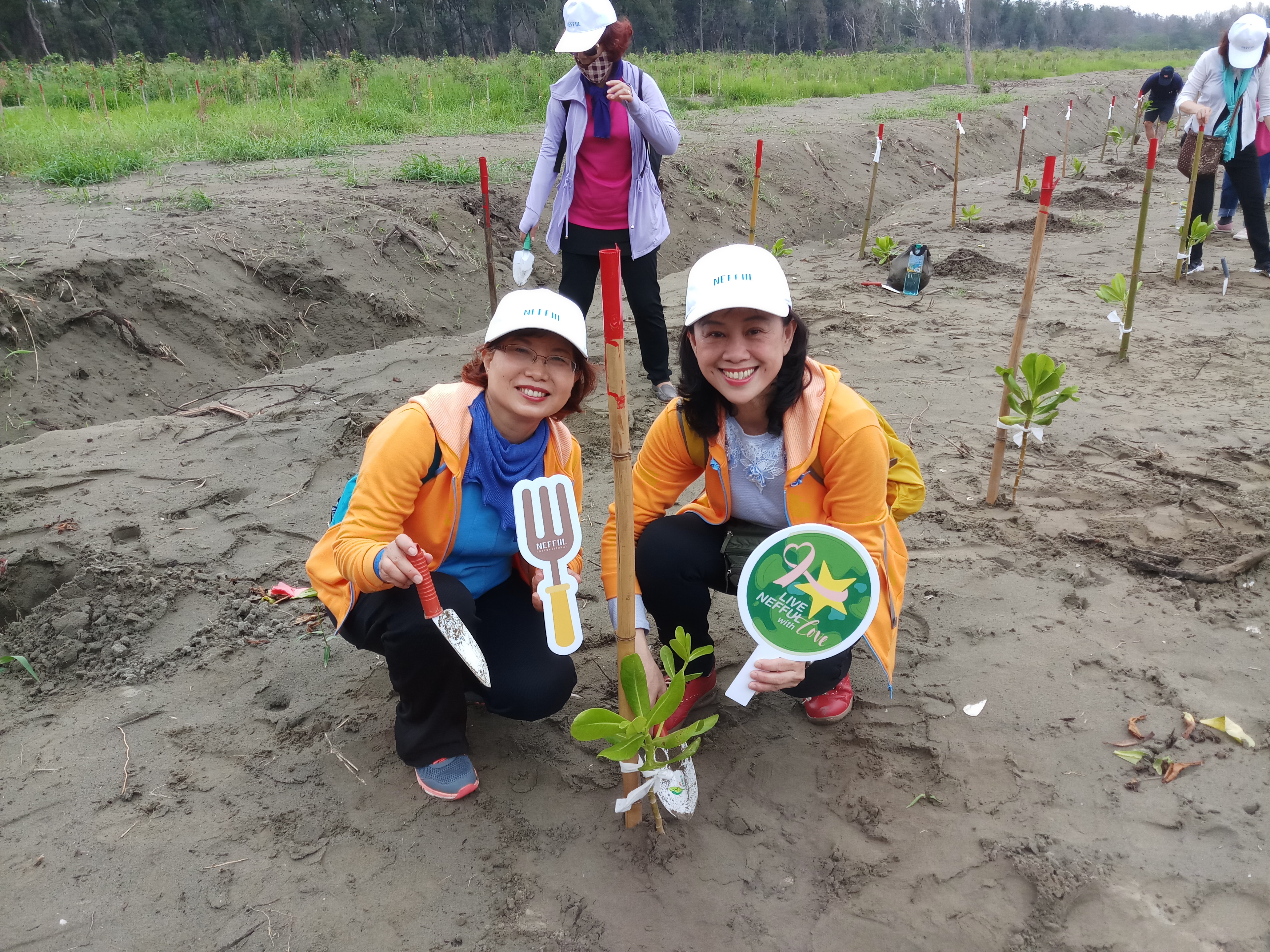 認養方式:捐款造林 認養期間:108年 植樹面積:0.21公頃,約525株 成果簡述: 妮芙露公司有感於近年台灣沿海海岸線退縮,且防風林受火災損害嚴重,與嘉義林區管理處共同推動海岸林復育工作,以具體行動守護山林及為地球環境盡一份心力,於108年認養臺南市安南區城西段造林地,栽植木麻黃、白千層、欖仁、草海桐,同時於108年5月4日與嘉義處共同辦理「Green Up Day種樹綠行動保護海岸線」植樹活動,於造林地親手植下一株小苗,體驗造林工作辛勞及為大地盡一份心力。