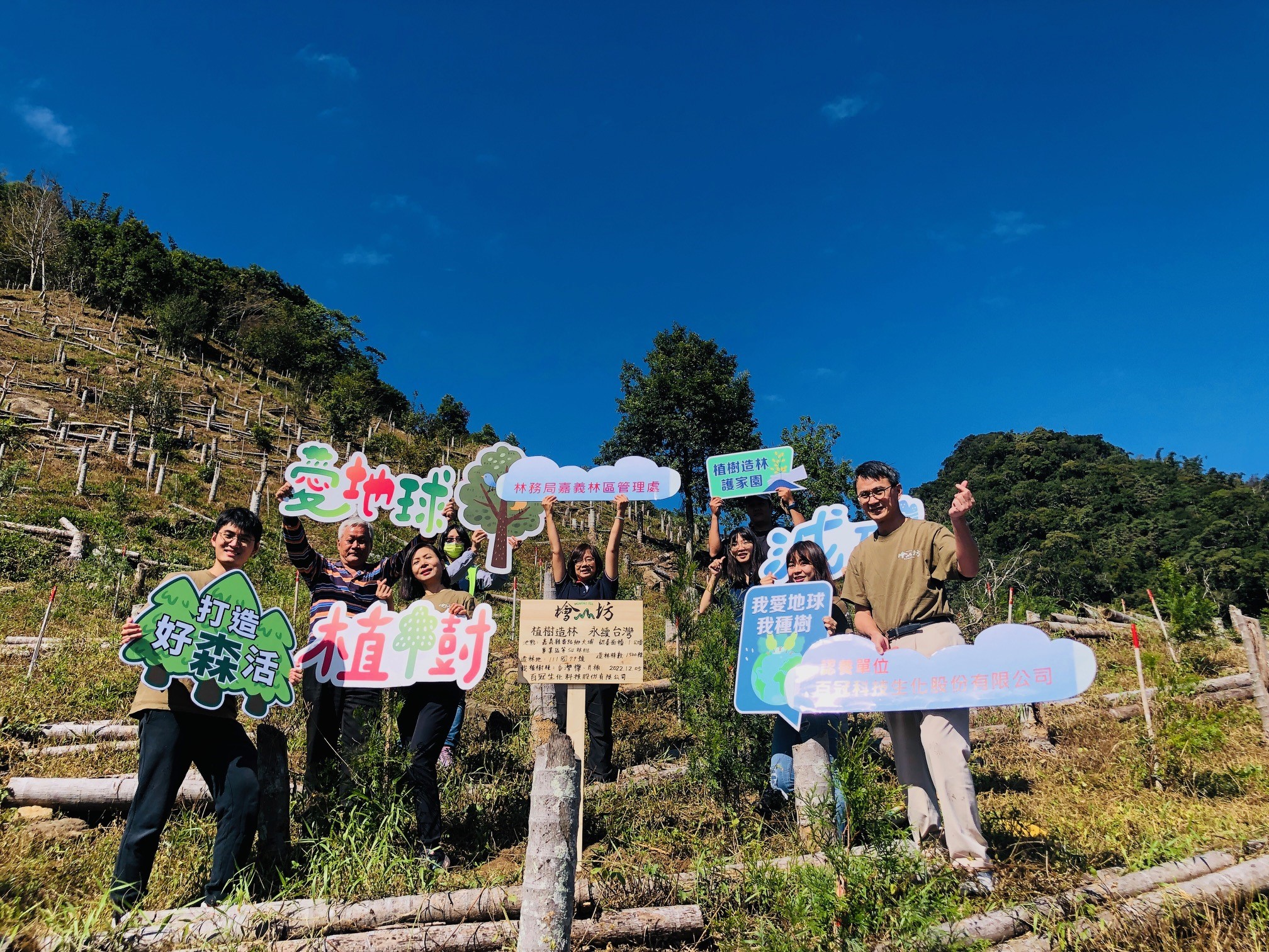 111年再次認養嘉義縣番路鄉草山村國有林地。111年12月5日實地走訪認養造林地及立牌,並走訪去年認養的香杉造林地,看到林木已長到百公分以上,一片綠意盎然、生機蓬勃,十分肯定林管處對造林工作的努力及用心。