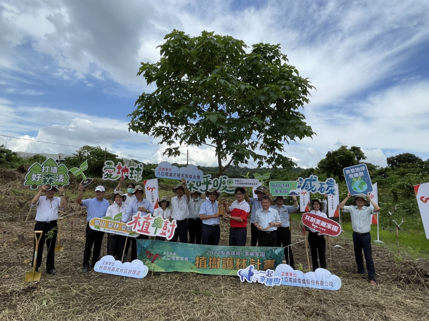 認養方式:捐款造林 認養期間:111-113年 植樹面積:2.24公頃 樹種及株數:苦楝、水黃皮、茄苳、光蠟樹、相思樹、樟樹等,4,075株 成果簡述: 大亞集團深耕電線電纜技術,提供台灣產業及經濟穩定的力量,現值全球氣候變遷,該集團也積極跨足綠能、綠電產業,致力成為能源串接的領導品牌;大亞於2011年成立大亞電纜美麗家園基金會,號召員工及眷屬參與志工服務長期投入社會公益,秉持環境保護、生命關懷、地球永續等理念,落實以環境友善行動促進人與環境共好,成為友善環境、美麗家園的推手,具體實踐企業願景。111年捐款認養嘉義林區管理處位於台南市楠西、山上區之造林地,進行3年造林撫育工作,栽植種樹種包括苦楝、水黃皮、茄苳、光蠟樹、相思樹、樟樹等造林木。
