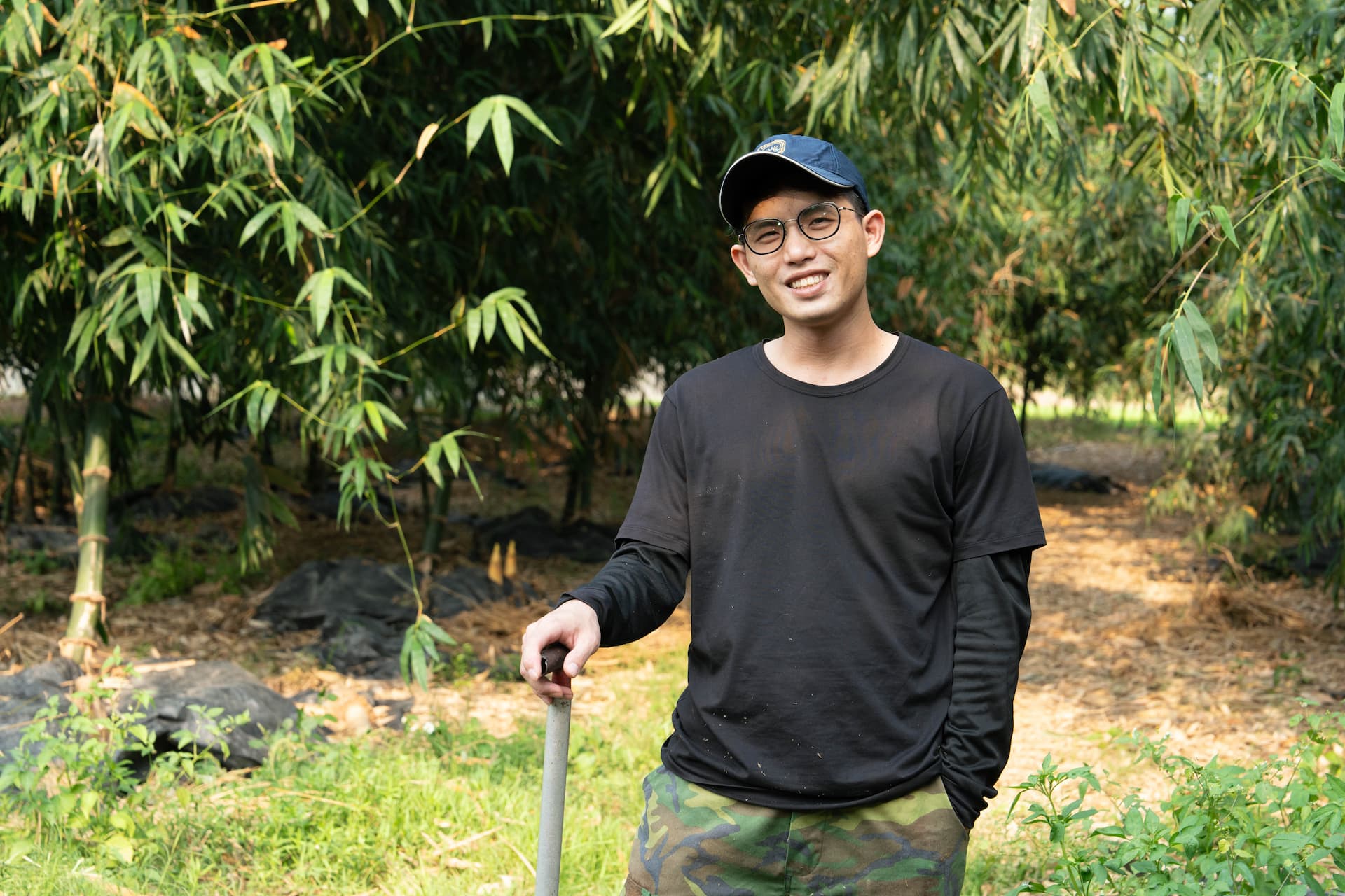 產地 嘉義大林 農產品 烏殼綠 與雨怪的緣分 盈堡也是標章農友中,年輕的夥伴之一,對於自己田區土地狀況相當了解,除了以友善諸羅樹蛙的方式,進行田區管理外,同時收集很多資訊持續以友善的方式增進田區的生產力。
