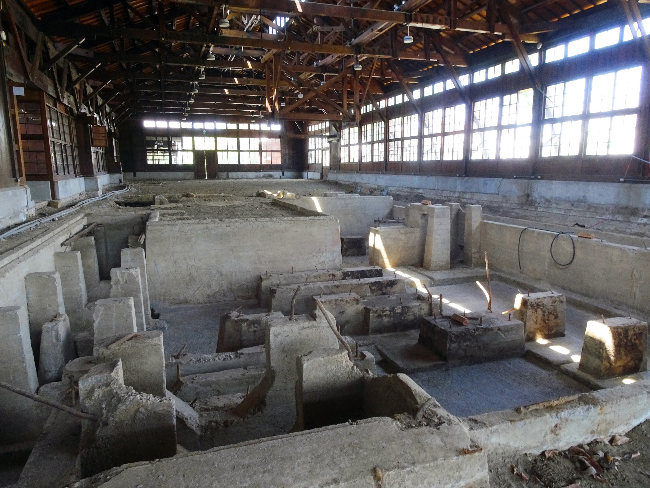 1913年興建完成的嘉義製材所,在阿里山林業開發中扮演木材集散及加工地重要角色,第一代嘉義製材工場1941年地震損毀,1942年於基地東北方興建了大跨距木構造製材工場。2016年4月完成整修, 12月賡續再利用工程,於開工整備時,依據1945年繪製內部配置圖的數條虛線、現場地板龜裂,及文獻記載「木造平屋建地下動力設備」,大膽假設地底下應有掩埋遺構,進行金屬探勘、人工試掘,果然發現極其珍貴的林業文化遺址,讓底藏半世紀的地下動力遺構重現,觸發阿里山林業文化新時代。