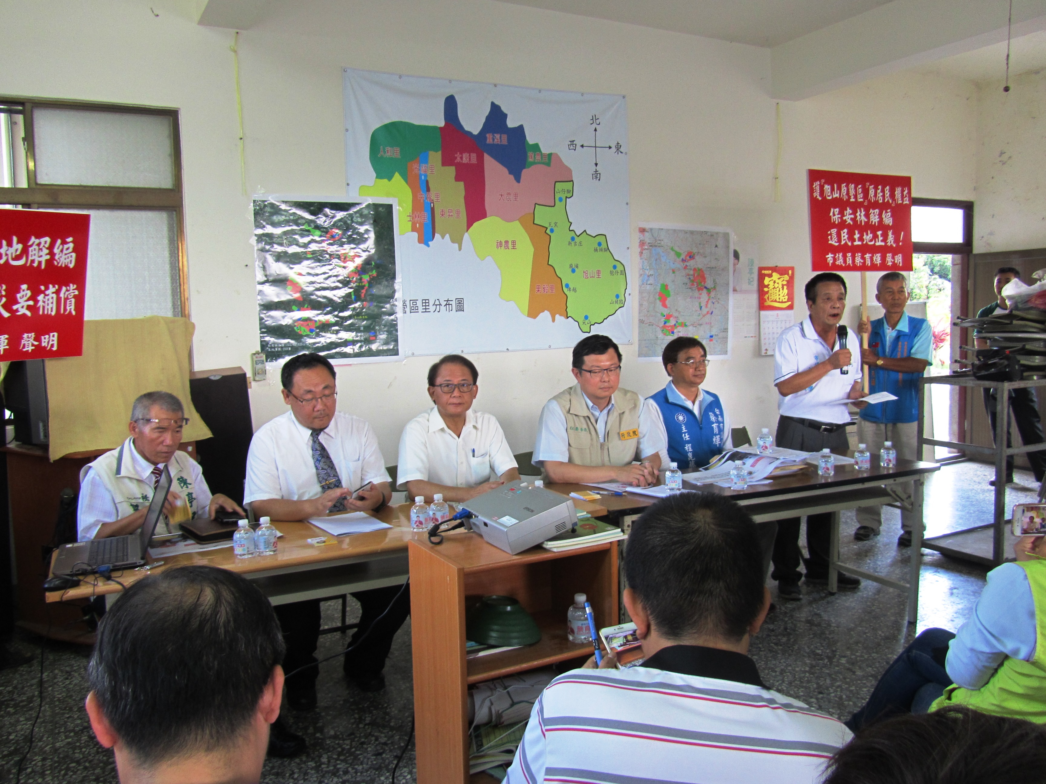 今日由農委會李退之副主委帶領林務局及嘉義林區管理處同仁,在尖山埤水庫上方的私有保安林現場進行現勘,了解私有保安林經營現況後,於台南市柳營區旭山村活動中心,與私有保安林權利人進行面對面的溝通,聽取民眾心聲,除了將林務局初步擬定的私有保安林逐步解除的規劃向在地民眾說明外,同時,將參考納入民眾需求及兼顧保安林公益功能,進行保安林解除審議委員會作業。