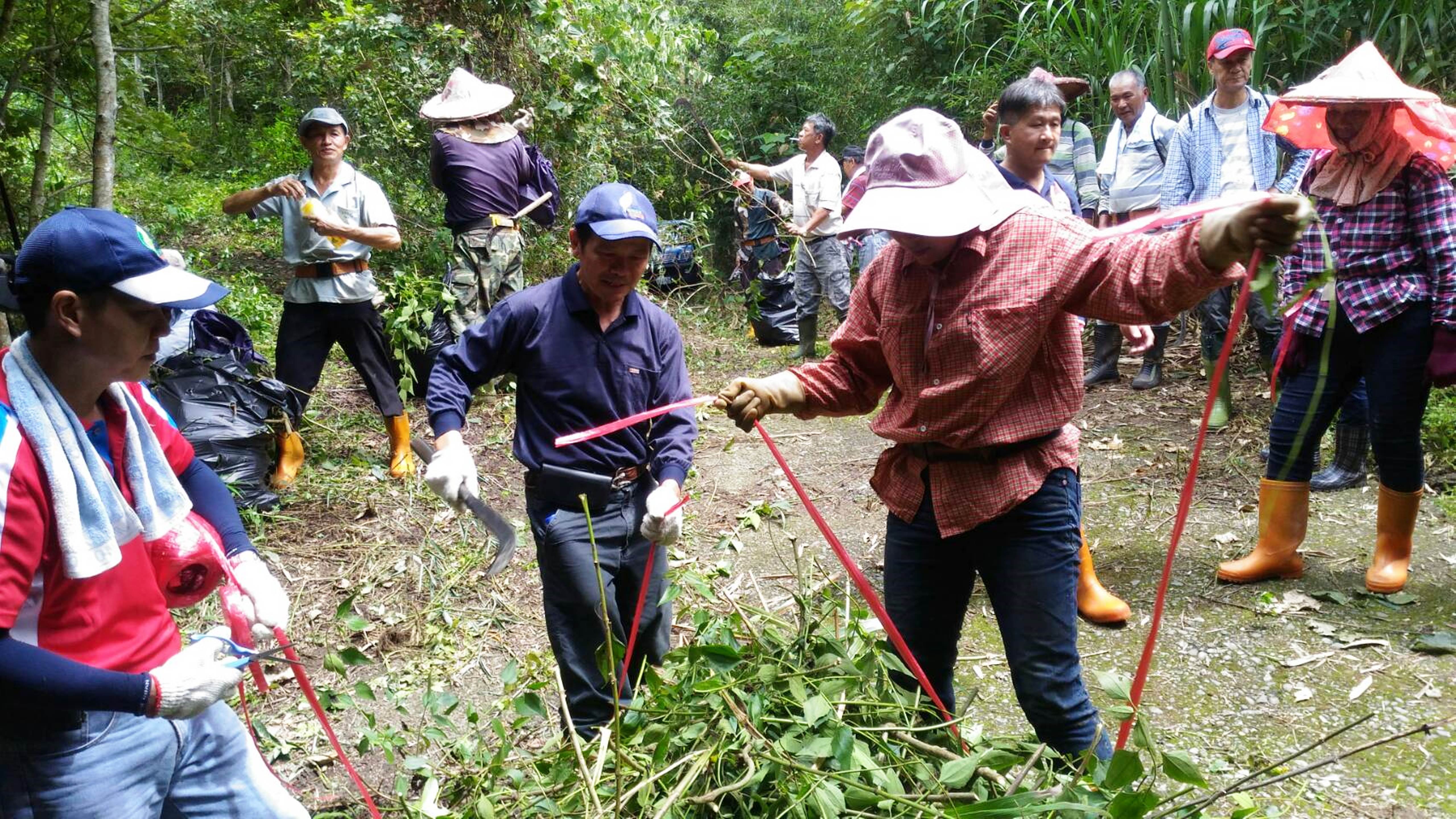 造林撫育除蔓動作不能少 俗稱「綠癌」之小花蔓澤蘭因繁殖能力強且以攀附形式蔓延,嚴重影響造林木生長,嘉義林區管理處為保護樹木,厚植森林,107年9月12日結合嘉義縣番路鄉草山社區發展協會於處轄大埔事業區第58林班造林地,舉辦小花蔓澤蘭防治及拔蔓活動,並講解移除小花蔓澤蘭方法,由嘉義林區管理處觸口工作站陳主任美璇與嘉義縣番路鄉草山社區發展協會劉理事長洪基帶領社區居民與觸口工作站同仁共50人參與,在烈日下共同參與剷除小花蔓澤蘭計200公斤。 加強社區協助造林地防治 小花蔓澤蘭生長快速、種子數量多(花季每平方公尺可高達17萬顆種子),具優勢之無性繁殖能力,導致許多撫育造林木遭受覆蓋吸收不到充足陽光而死亡。觸口工作站鑑於草山社區居民參與社區林業計畫營造保育類「爺蟬」棲地有成,對保育生態環境及防止外來種植物入侵等觀念成熟,期藉由本次活動讓社區民更瞭解造林重要,進而擴大協助周邊造林地小花蔓澤蘭防治工作,守護森林生態環境。 小花蔓澤蘭除盡 不分你和我 嘉義林區管理處觸口工作站表示,9月至10月是小花蔓澤蘭開花蔓延季節,亦為最佳防治時間,自9月1日起至10月31日止,每週一、三、五上午9:00-12:00,下午1:00-4:00除於觸口工作站及關子嶺與大埔等2分站展開每公斤5元收購外,本處奮起湖工作站及玉井工作站亦同舉辦,歡迎社區民眾一起剷除綠癌擺脫糾纏。