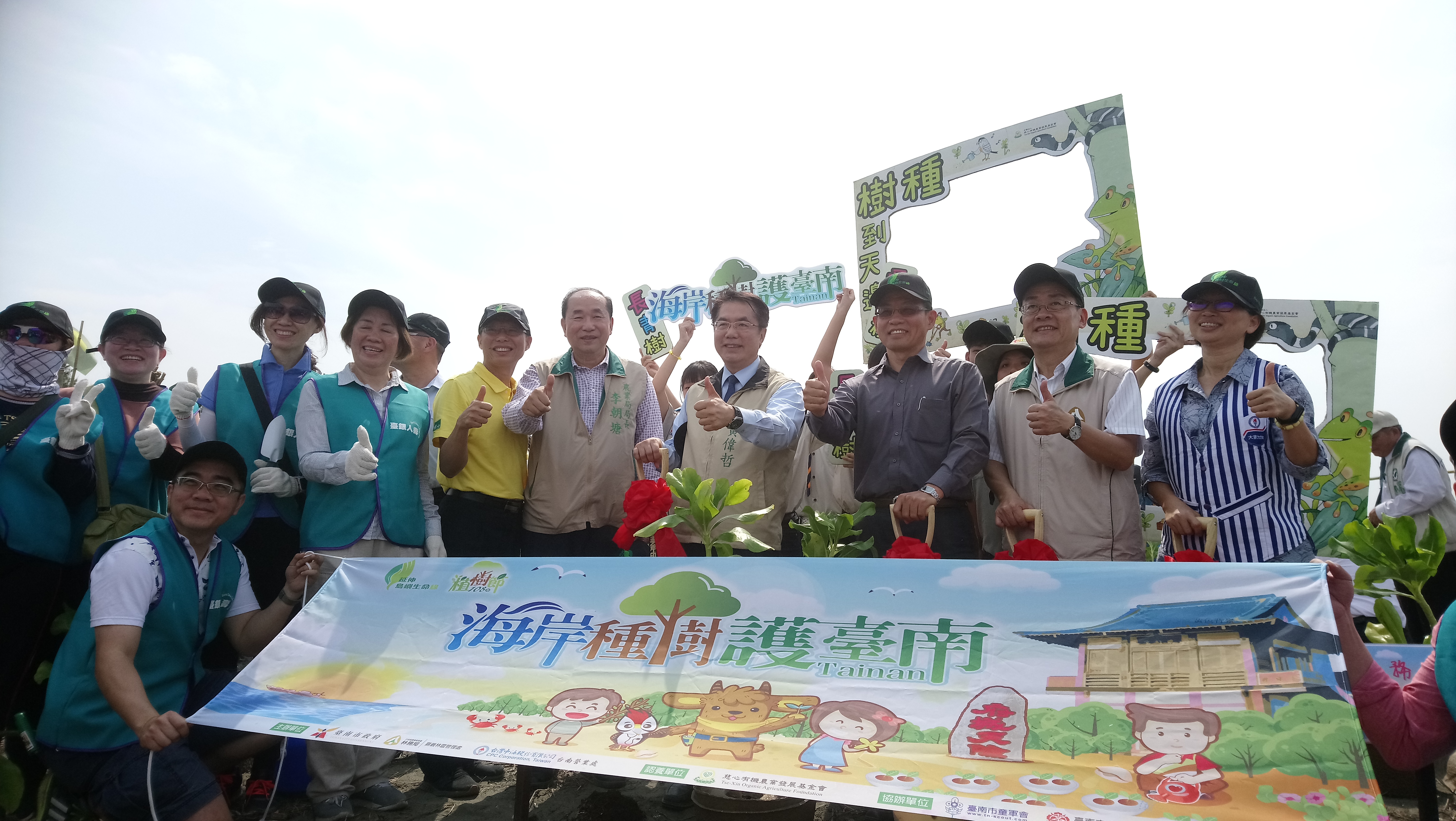 府城天險 認養簽署海岸種樹 3月30日在臺南市府城天險有一場植樹盛會,由慈心有機農業發展基金會與臺南市政府簽署3年海岸造林,隨後市長黃偉哲、林務局副局長廖一光、嘉義林區管理處處長張岱、台灣中油公司油品行銷事業部台南營業處長許振隆、台江國家公園秘書黃明通、慈心有機農業發展基金會執行長蘇慕容等人和熱情參與的民眾約600人,一同在臺南市鹿耳門溪出海口面積1.4公頃河口沙地種下黃槿、草海桐、冬青菊等計7,000株海岸適生苗木,期待將來延續保護海岸防線。 海岸保安林 保護你我的森林 嘉義林管處處長張岱表示,台灣西南海岸線退縮快速,綠帶寬度減少,衝擊生態環境外,也影響居民生活品質與居家安全,環繞在台灣外圍第一線的海岸保安林是保護內緣城市的防線,去年也和臺南市政府、慈心有機農業發展基金會一同在將軍漁港港口南側沙岸種下9,000棵苗木,成長速度快、成活率高,今年同樣由慈心有機農業發展基金會認養造林地,負責保固3年成活後再交由臺南市政府管理,與毗鄰嘉義林管處位臺南市安南區編號第2105號保安林面積224公頃形成更寬的保護帶,保護臺南鄉親。 植樹與推廣市民同樂 林管處現場贈送桂花、宮粉仙丹、含笑花共1,200株,火速被現場民眾拿著發票「秒殺」!捐發票可多領一株小樹苗,響應環保作公益,愛心完全不落人後!中油公司、台江國家公園等單位的成果宣導攤位內容豐富,與民眾互動性高,參加民眾在各攤位間來回體驗並蒐集各攤宣導品,彷彿是一場環保園遊會。
