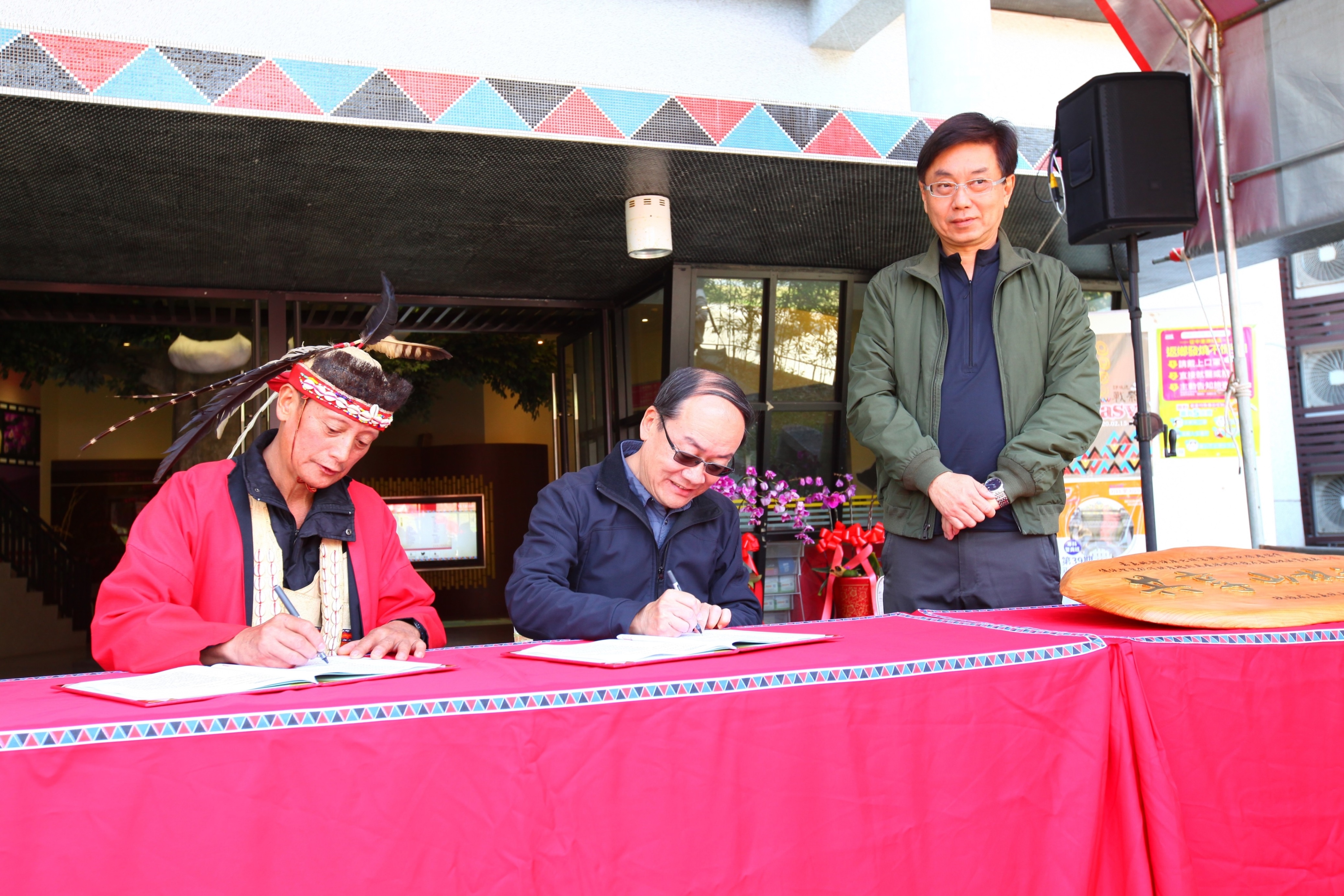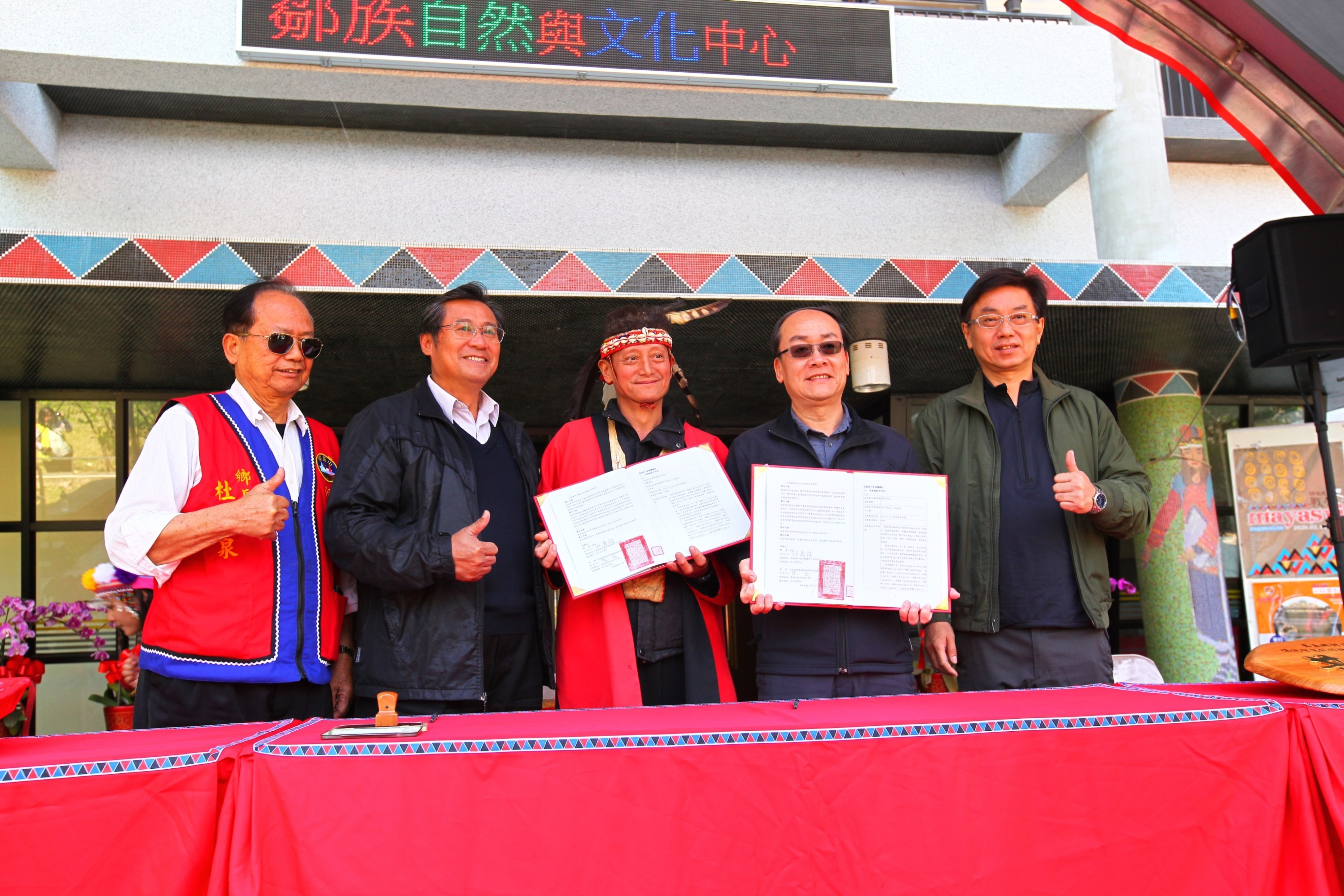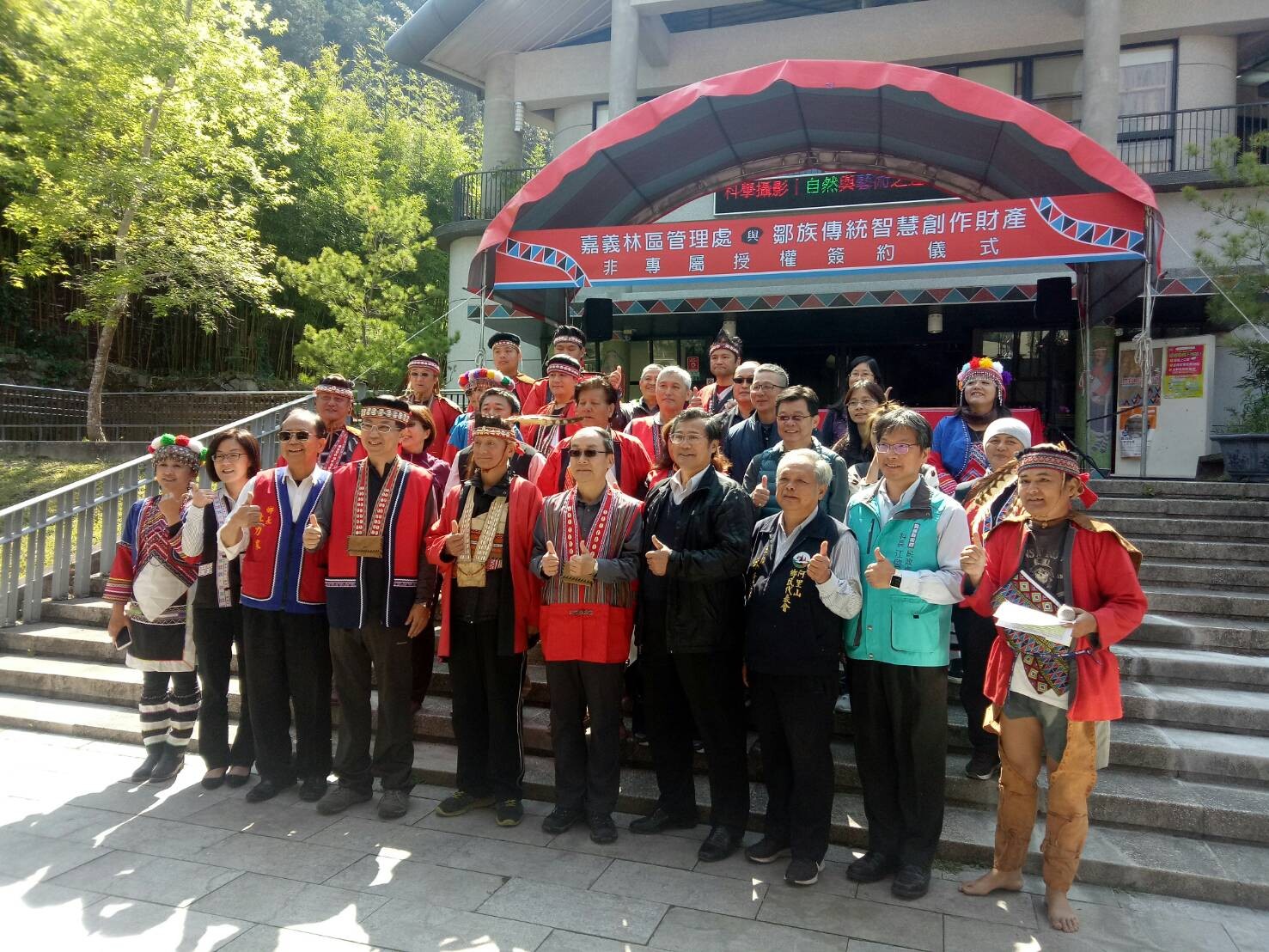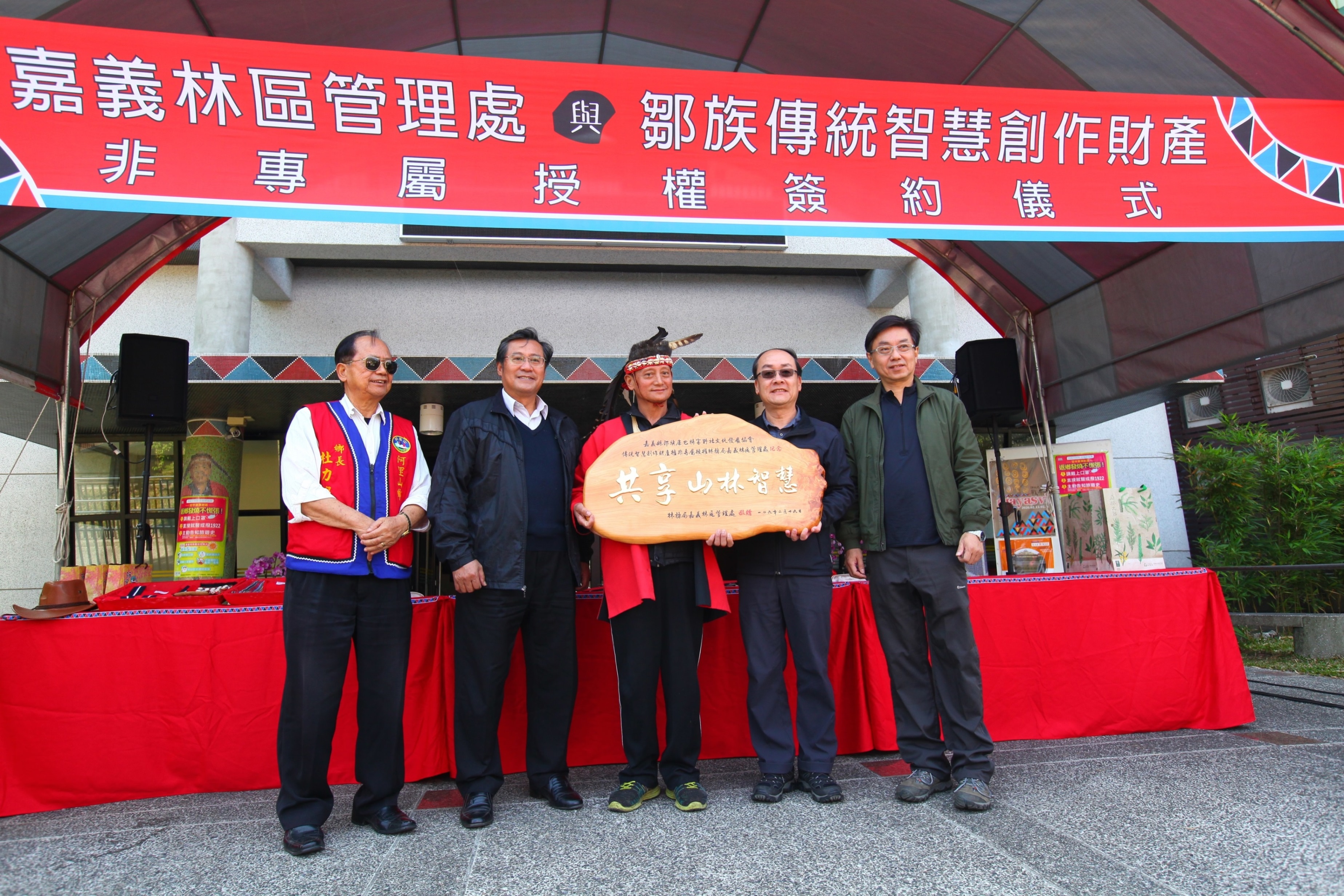 為保護原住民族之傳統智慧創作,促進原住民族文化發展與傳承,林務局嘉義林區管理處今(19)日上午,與嘉義縣鄒族庫巴特富野社文化發展協會舉行「鄒族傳統智慧創作財產權非專屬授權」簽約儀式,由鄒族代表人特富野社頭目汪義福與嘉義林區管理處張岱處長代表簽約,並由林務局局長林華慶、阿里山鄉公所杜力泉鄉長、原民會鄒族族群委員汪啟聖、與會人員及鄒族耆老、各傳統智慧創作財產權審查委員在場見證。本項簽約儀式除肯定原住民族傳統智慧創作的文化資產價值外,更彰顯取得合法授權從而應用原住民族智慧財產權,應被各界正確認識與重視。 嘉義林管處長張岱指出,阿里山鄒族有豐富的文化資產與智慧創作,應積極保存推動及善用,雙方同意於「鄒族」依原住民族傳統智慧創作保護條例享有原住民族傳統智慧創作專用權之yxsx no cou 男女傳統服飾、鄒族特富野社tohpxngx(歷史頌)、kuba no cou tfuya /鄒族特富野社男子會所、鄒族特富野社meesi no ton´ u(粟作祭儀)、鄒族特富野社meesi no mayasvi與祭歌(宗教祭儀、歌曲)、鄒族特富野社神話故事「hamo、洪水及nivnu」6項授權使用。儀式中張岱處長特別致贈「共享山林智慧」牌匾給汪義福頭目,並表示未來該處將加強推廣應用於生態旅遊、文化傳承等主題上,彰顯鄒族傳統智慧創作財產權珍貴價值。 特富野社頭目汪義福表示,林務局近年來極為重視與原住民族的夥伴關係,在傳承部狩獵傳統文化之目標下,積極推展原住民文化及鄒族狩獵自主管理工作,深獲族人肯定與支持。此次授權是希望傳遞正確的鄒族傳統創作,並藉由林管處加以分享推廣。因此,該協會特別歡迎林務局林華慶局長親自到部落觀禮見證,並致贈代表鄒族的傳統服飾、額飾及生命袋致意。 林華慶局長表示,本次授權是林務局首場與原住民族簽訂傳統智慧創作財產權之重要儀式,對原住民來說,山林裡頭蘊藏著千年來累積的生活智慧,是祖先傳承下來的寶庫,是祖靈庇佑的地方,是家園,更是心的所在。因此,永續使用自然資源,是原住民傳統文化的精髓。且「生物多樣性公約」,早已敘明體現傳統生活方式的原住民,與生物資源有著緊密的依存關係,應公平分享從利用與保護相關傳統知識、創新和實踐所產生之惠益。 林管處強調,鄒族為了繁衍並永續利用自然資源,長期與環境互動所產生的生活慣俗,經過代代相傳乃成為傳統山林智慧,這種生活態度就是尊重自然。林務局與鄒族是親密戰友,有責任與義務與轄區部落簽訂傳統智慧授權,共同推展原住民族文化及觀光事業,實踐尊重與包容的多元文化價值。
