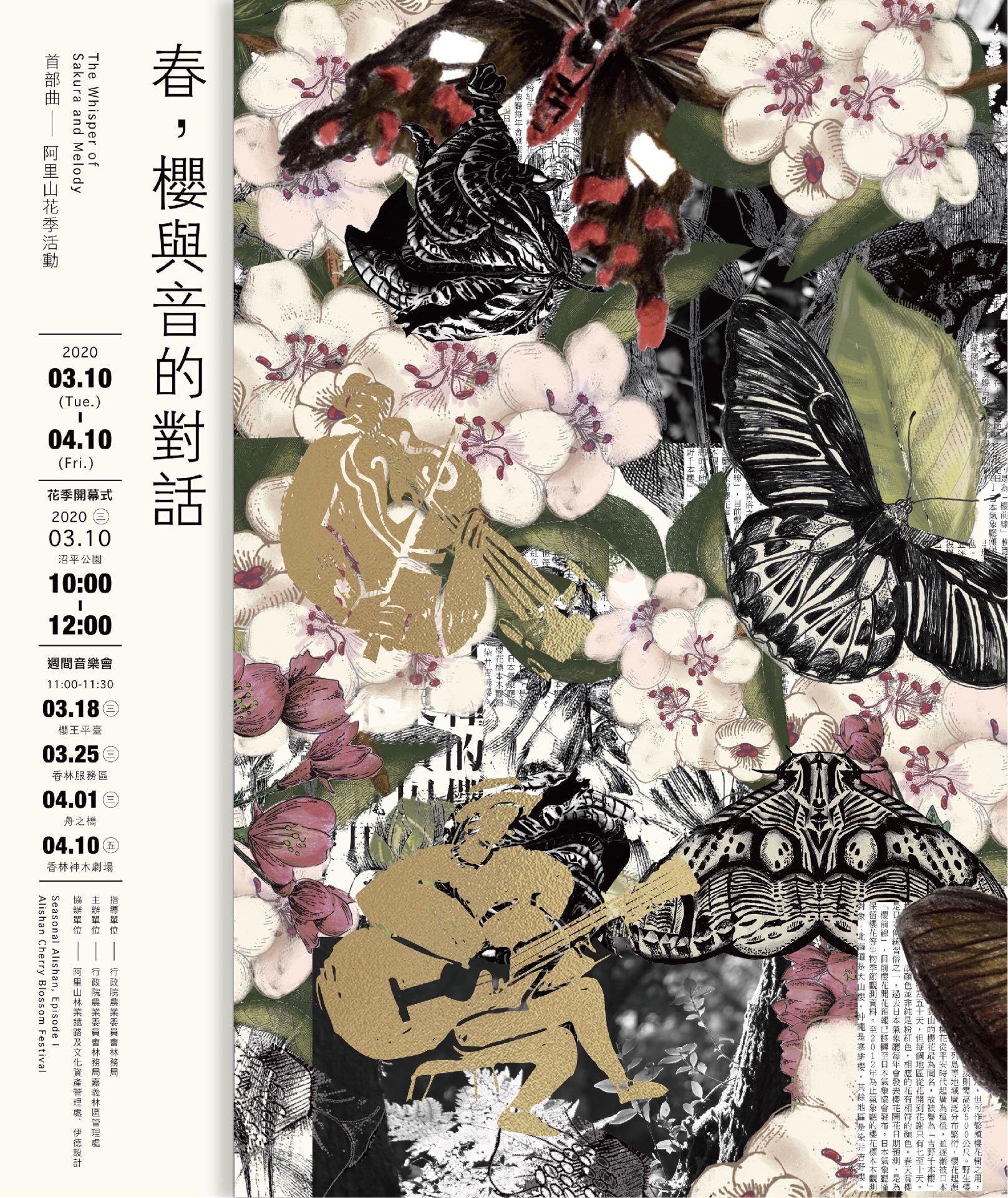 林務局嘉義林區管理處將於3月10日10時在阿里山國家森林遊樂區沼平公園舉辦花季開鑼儀式,宣告109年花季展開,當日開幕式後,還有「櫻花漫步」導覽活動,邀請遊客穿上粉紅色系衣服,打造花季專屬Dress Code,完成指定任務還能獲得花季限定好禮。在為期1個月(3月10日-4月10日)的阿里山花季,每周更有「櫻與音的對話」戶外音樂會增加聽覺及視覺饗宴,如果被疫情悶壞了,趕緊趁著春光無限好出遊踏青,在阿里山森林裡,有豐沛的芬多精增強抵抗力,陪您挺過新冠肺炎! 阿里山即時花況報你知 遊樂區幅員遼闊,櫻花品系共有31種將近3000株,其中山櫻花品系花種(山櫻花、琉球山櫻、阿龜櫻、河津櫻等)盛開已近9成,小櫻王-唐實櫻及霧社櫻已達7成,嘉義林管處表示,現在最佳的賞櫻地點非阿里山工作站莫屬,3月10日花季開幕當日預計可看到滿開的唐實櫻,旁邊的櫻王-染井吉野櫻也上看約5成花量,這也預告著園區最多數量的染井吉野櫻即將登場,緊接著有大島櫻、重瓣花系的關山櫻、高砂櫻、一葉櫻、普賢象櫻、五所櫻等等一棒接一棒陸續登場。同時,山櫻花品系的粉色花瓣隨風飄落,形成特殊櫻花雨更增添文雅的氛圍。再來園區內遍植的木蘭、垂絲海棠、雲南黃馨、森氏杜鵑、平戶杜鵑、台灣一葉蘭等也逐漸加入花團繁開的行列,直至4月底多花紫藤盛開更掀起賞花熱潮,建議民眾多來幾次,一同感受春季朝氣蓬勃的阿里山。 鼓聲磅礡慶開鑼 櫻花漫步新體驗 今年度開幕地點在沼平公園舉行,特別邀請曾獲海內外金曲獎、葛萊美獎、美國獨立獎三項大獎提名的「十鼓擊樂團」為花季帶來震撼演出,更將表演代表阿里山參天神木的「山之喚」,現場更備有充滿櫻花氣息的粉色主題小點,提供視覺、聽覺及味覺的三重饗宴。 開幕後不妨一同悠悠漫步山林,今年嘉義林管處首辦的「櫻花漫步」活動,邀請民眾穿上粉紅色系服飾或配件一同上山,打造花季專屬Dress Code,拍照打卡、分享的朋友還有機會獲得花季限定好禮,沿途會有專業森林志工提供導覽及定點小提琴家獨奏表演,讓您更加了解阿里山的賞花植物,營造春日賞花新體驗。歡迎至阿里山國家森林遊樂區的facebook官方粉絲團並點連結網址報名,掌握最新消息。 阿里山林業鐵路及文化資產管理處為配合花季活動,遊樂區內的「沼平線」列車將於花季開幕當日上午10時30分至11時45分,行駛蒸汽車頭附掛檜木車廂,還能捕捉櫻花與「蒸檜火車」相互輝映的經典畫面,按好相機快門別錯過。 花季限定文創商品別錯過 嘉義林管處為讓大家把阿里山的美帶回家,此次開幕會場-沼平公園更設有臨時攤位,販賣詢問度高的櫻花紙膠帶、花季必備的賞花手冊;今年更推出阿里山鳥類變色雨傘、票卡夾及memo夾心備忘版提供販售,敬請把握良機、並來場阿里山花季之旅。林管處表示花季期間(3月10日-4月10日)購票入園的民眾也請記得到遊客中心領取「限量花季入園紀念票」,更有機會獲得以上好禮。
