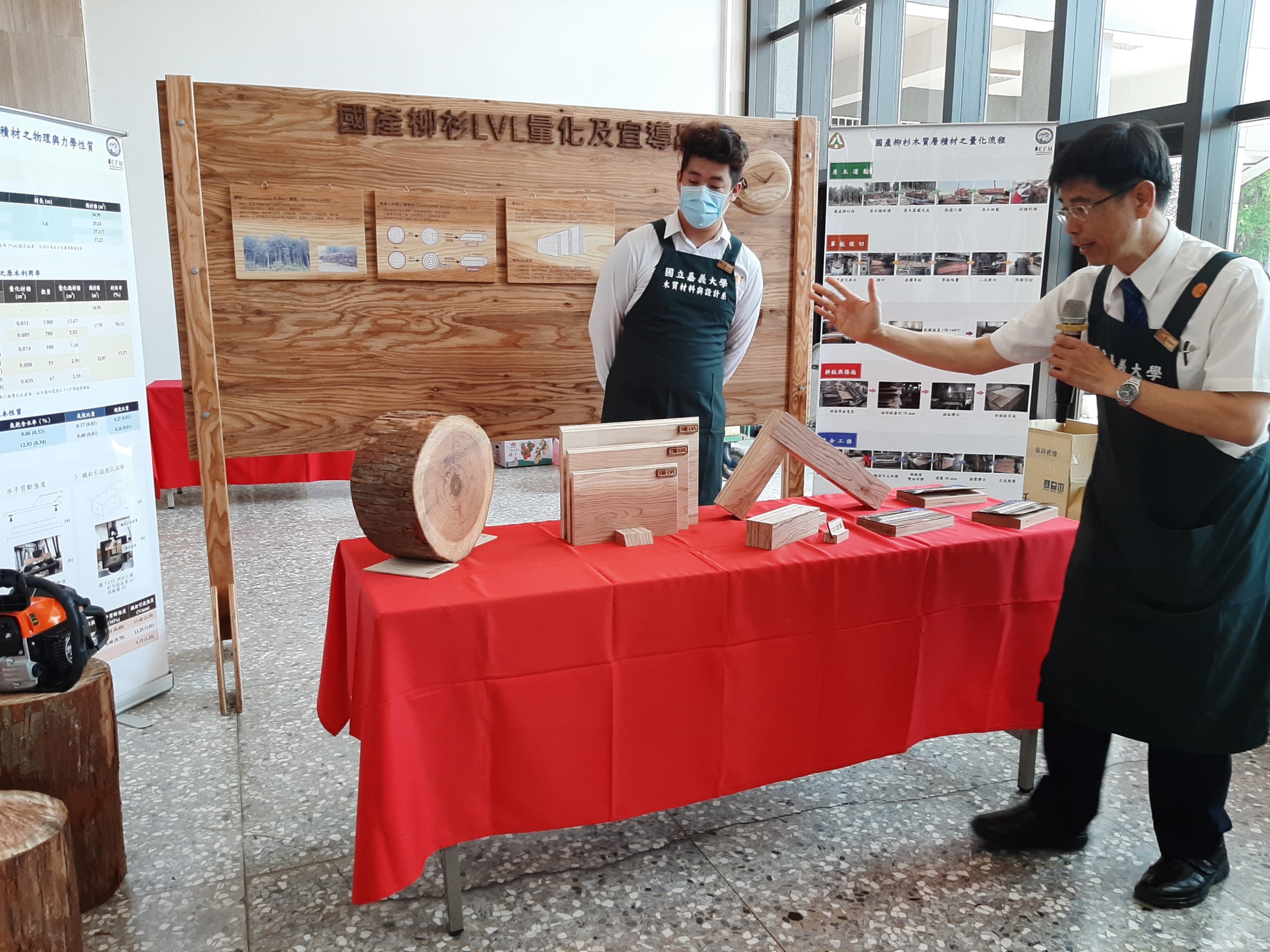 走入阿里山,印象最深的除了檜木外,就是阿里山公路沿線的人工林相-柳杉,為提高國產材自給率及讓國人能認識臺灣的木材多元利用,今(26)日上午於嘉義大學國際交流學園舉行「柳杉木質層積材創意商品推廣發表會」,由林務局嘉義林區管理處張岱處長與嘉義大學艾群校長共同主持,與會者對於有效利用柳杉中小徑木配合消費者需求,發展木質層積材(LVL)消除木材原本有節、裂等缺點,並可提高產值,均表大有商機可為。 林管處處長張岱表示,柳杉為台灣5、60年代重要的造林樹種,也是該處轄區最主要的針葉樹造林樹種,而疏伐是森林經營的方法之一,藉由疏伐作業調整林木,可使陽光穿透並避免林木彼此過度競爭,以獲取形質更好的木材,伐取之木材徑級較小,經適當處理仍可有效利用,有別以往利用原木去開發木製品,卻易受限於材積與缺點(諸如腐朽、節與裂等)的影響,造成賣相不佳,本次利用木質層積材(Laminated Veneer Lumber)依其特性應用旋切加工及層積膠合技術發展,不僅可改善木材原本的缺點且可作為樑柱結構等資材,以及型態多變的可行性,對木材加工業者商品設計與製造發展可成為國產材多元利用的重點。 本次推廣發表會是由嘉義林管處與嘉義大學木質設計系合作,開發出書架、會議桌、屏風、穿鞋椅等創意及可自行組裝產品各5組,每項產品都獨具特色,充份展現阿里山柳杉木質肌理,尤其推薦DIY產品可透由購買者自己組裝完成,除增加經濟價值外另加強產業鏈運作,結合產官學一條龍,柳杉LVL層積材可應用於家具、室內裝潢用材及結構樑柱使用,讓木材業者對國產材柳材產品生產有信心,未來將技術轉移給業界,開創國產材柳杉中小徑木利用的新契機。