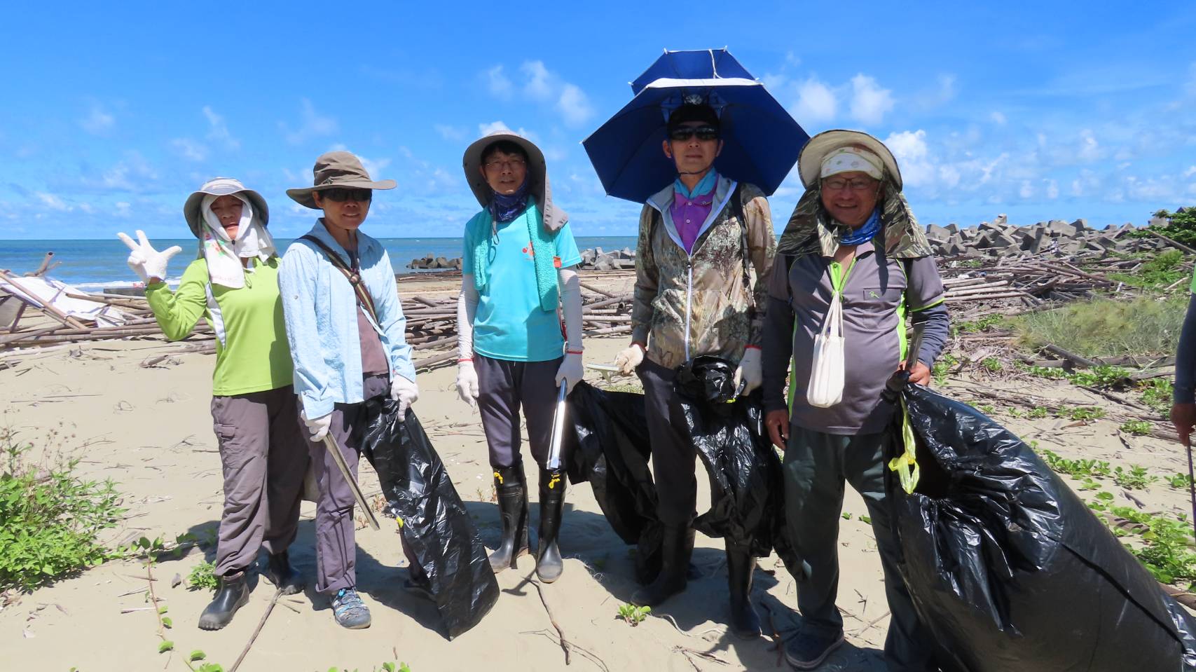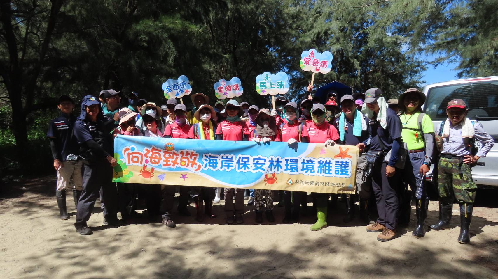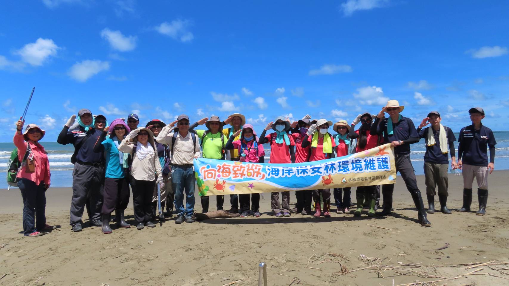林務局嘉義林區管理處結合國家森林調查監測志工今(17)日於臺南市北門雙春編號第2018號飛砂防止保安林,辦理「向海致敬」淨灘活動,共清理海岸垃圾1,200公斤,以實際行動,讓雙春海岸重回美麗面貌。 結合公私協力 共同守護海岸保安林 嘉義林管處表示,該處轄管海岸保安林計10號,總面積約702公頃、臨海長度約28公里,相鄰海岸、海域多為民眾休閒遊憩之場所,因海流帶來海漂垃圾堆積在沙灘或保安林,或是民眾隨意棄置垃圾,往往讓美麗的海灘大為失色。為響應行政院「向海致敬」計畫中的海岸保安林環境維護,該處特別結合國家森林監測志工共同淨灘,日後並將由志工夥伴排班針對臺南市將軍區、北門區、七股區、安平區等多 處海岸保安林易遭棄置垃圾熱點進行巡護,以維護海岸環境。 森林監測志工 上山下海無所不能 林管處強調國家森林調查監測志工原本任務主要在深入林班進行森林巡護,執行濫墾、盜伐等不法案件通報工作,今天更走向海岸「向海致敬」,肩負海岸保安林巡護重任,真是所謂「上山下海、無所不能」。海岸淨灘不僅能提供國人乾淨的休閒環境,更能幫助海洋生物清淨家園,因此也特別呼籲國人一同向海致敬,隨手做環保,垃圾不落地,共同為保護美麗的海岸盡一份心力。