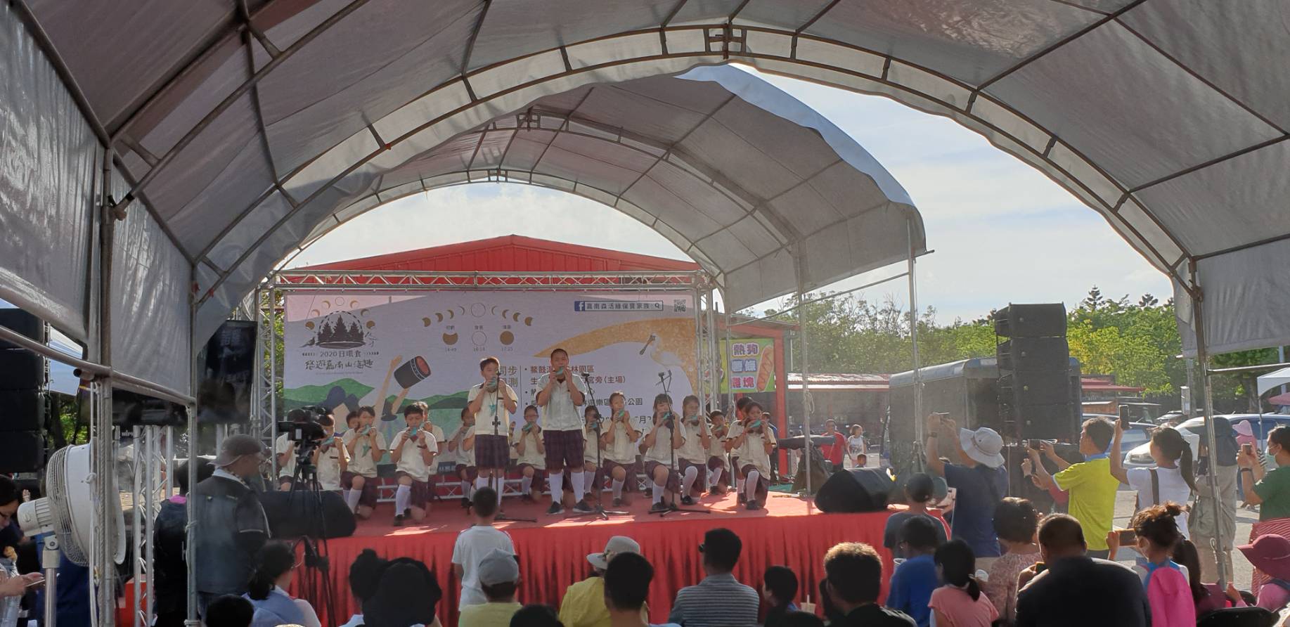 林務局嘉義林區管理處6/21(日)於鰲鼓濕地森林園區港口宮旁生態日晷辦理「2020日環食-悠遊嘉南山海趣」主場活動,與嘉義市天文協會合作,共架設5部天文望遠鏡觀測日環食動態。活動由嘉義在地永慶高中國樂社悠揚琴聲中開場,雲嘉南濱海國家風景區管理處洪肇昌副處長、嘉義縣東石鄉公所蔡武憲機要秘書也到現場,參與日環食觀測開跑儀式,活動中東石高中熱舞社、東石陶笛隊輪番演出,食甚時更有巾幗震天集樂團打響太鼓,象徵與民眾一起趕走把太陽吃掉的天狗! 活動現場邀請到嘉義林區管理處社區林業計畫輔導的模範社區提供橄欖手工皂、沁涼粉粿冰、植物染與鹽滷豆花等特色DIY活動。還有精心設計的生態闖關活動,找到生態日晷旁隱藏的動物即可兌換里山里地里海國產材動物拼圖1份;活動打卡贈送明信片、贈苗活動等。嘉義郵局更於現場設置臨時郵局提供遊客寄送明信片服務,可蓋當日限定日環食郵政戳章,現場許多遊客紛紛寫上難得的日環食經驗寄出留念。 此外阿里山國家森林遊樂區的沼平公園、觸口自然教育中心現場亦舉辦日環食觀測活動,協助遊客透過天文望遠鏡觀測日環食的完整過程,民眾現場打卡還贈送苗木及可觀測日環食的限定明信片一組,其中觸口自然教育中心並推出日環食主題闖關活動,讓民眾深入了解日環食的成因、變化過程與安全觀測的方法。 嘉義林區管理處表示,感謝大家熱情參與夏至日環食觀測活動,活動前漁塭體驗與生態小旅行活動甫一推出即遭秒殺。為了推動社區生態旅遊,林管處特別與旅行社合作推出生態遊程,遊程報名人數超過200人次,當日現場更有旅行社從外縣市包車超過500人次特別前來現場觀賞日環食,活動現場滿滿人潮,接近活動尾聲舞台上抽出5位民眾免費招待生態旅遊1次,希望遊客能再次體驗嘉南的生態之美。未來里山地海生態遊程也將與旅行社配合持續推廣,歡迎各位民眾參與,發現嘉南生態魅力。