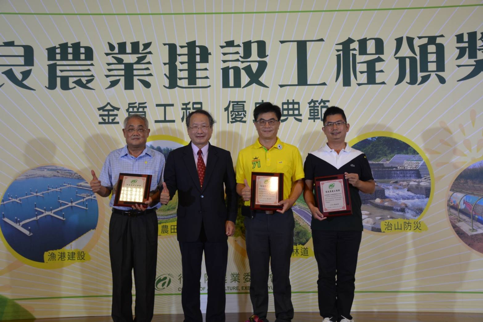 向來都是農業工程領域最高榮譽的優良農業建設工程獎,選在今日(8/26)舉行頒獎典禮,林務局嘉義林區管理處處長張岱率治山課同仁及得獎廠商一行躬逢其盛。本次108年度優良農業建設工程獎,嘉義林管處以5件優等及5件佳作的優異成績奪得十項大獎。其中「阿里山森林遊樂區木蘭園排水工程」更獲得公共工程委員會金質獎優等的殊榮,可謂本屆的最大贏家。 嘉義林管處表示,近年來該處對於主辦工程施工品質嚴格把關監控,並率先全面實施工程生態檢核,在施工期間同時尋求生態環境的永續發展,因而屢創佳績,獲得外界一致肯定。去年(108年)獲獎數更是參賽歷屆以來最高,對於單位同仁可說是莫大的榮耀。 嘉義林管處表示得獎工程分別坐落為阿里山、大埔及玉井等事業區,大部分皆為人煙罕至的山林野溪,本著國土保安及綠色工程的精神,在籌備、設計、施工、驗收各階段中,不斷諮詢專家學者及環保有志之士的意見,以求完善每項在建工程。優良農建工程獎的豐收,證明嘉義處在落實生態友善機制與維持工程品質中取得平衡,並獲得了不錯的成果。 嘉義處表示,得獎固然充滿喜悅,但不會因此自滿。獎項雖然是肯定,但只是個過程,該處真正的目標仍然是國土的長治久安與環境的永續保存,並希望更多的有心人士可以一齊來參與、督促,打造一個更美好的綠色臺灣。