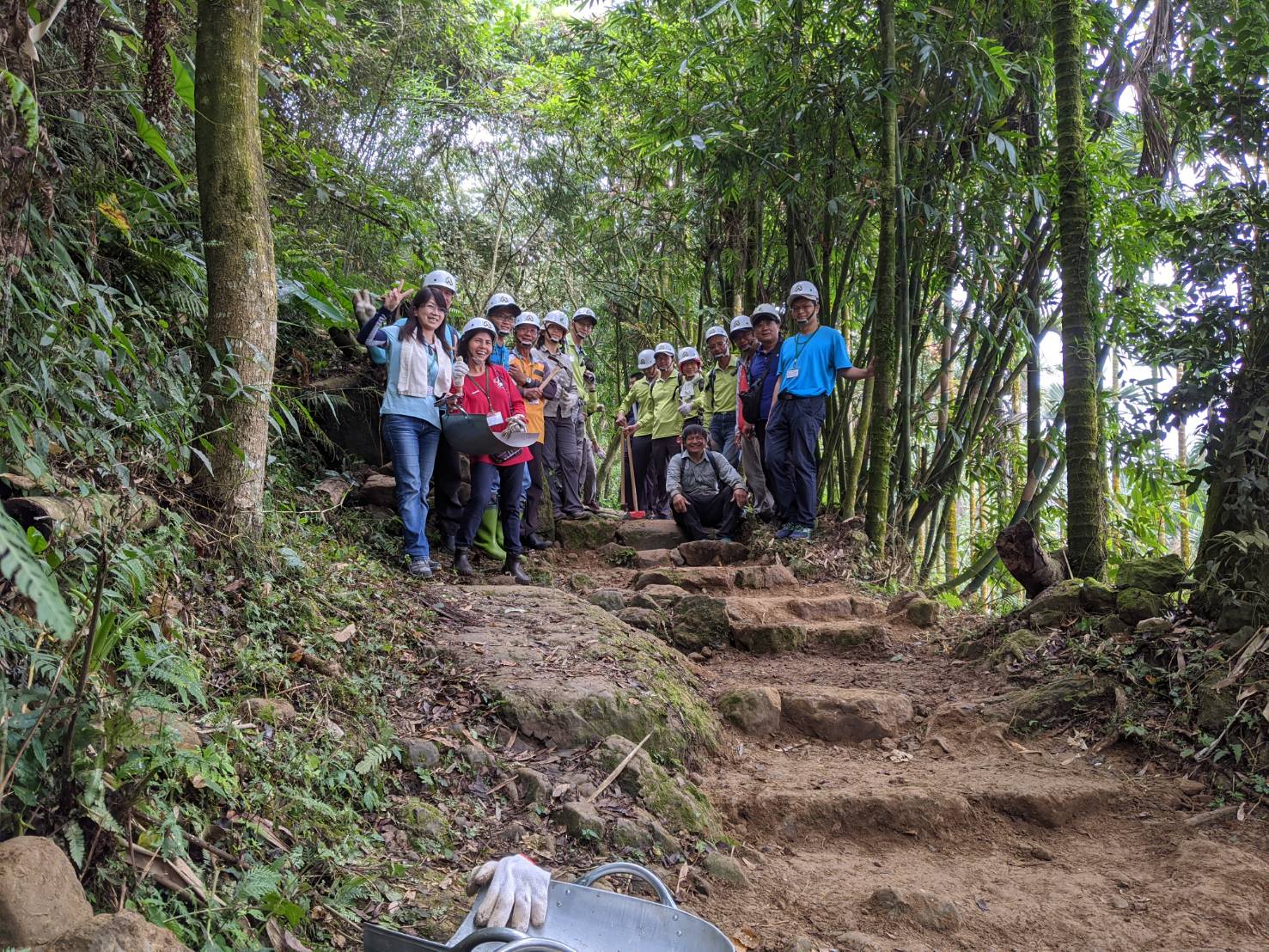 關子嶺大凍山為台南市第一高峰,是台南地區假日熱門登山健行路線,由於地勢陡峭部分路段遭雨水沖蝕,導致岩石裸露、路面不平整,嘉義林區管理處於109年10月23日舉辦手作步道及淨山活動,邀請台南地區登山團體、國家森林志工、白河區公所等機關團體約50位,以手作步道就地取材方式修整部分路段,透過活動辦理,讓山友及志工能更深入了解手作步道理念及操作。同日也舉辦淨山活動,清理步道沿線及休憩點環境,以提供民眾更清淨優質的步道環境。 大凍山海拔1241公尺,是台灣山岳界的「小百岳」之一,陡峭的山勢讓大凍山成為造訪百岳前的最佳訓練基地,也因位於台南市郊成為人氣指數極高的登山步道。嘉義林區管理處為維護步道環境,與山友們共同宣誓遵守無痕山林守則,希望大家上山前就減少食物的個別包裝,遵循無痕山林的七大原則,妥善收拾好自己的廢棄物帶下山,如需「就地解決」,也於遠離步道處,將排遺挖貓洞掩埋或攜帶下山,也可隨身帶個夾鏈袋,如廁完將使用過的衛生紙放進夾鏈袋帶下山,才不會造成遍地「小白花」(衛生紙)污染環境。 在秋風颯涼的天氣,參與淨山的夥伴抱著維護山林環境的好心情,沿途撿拾寶特瓶、糖果紙、果皮,並於涼亭等休息地點清理瓶罐及塑膠水桶等垃圾,再由眾人不畏髒污揹出,過程雖然艱辛,但能攜手恢復步道乾淨整潔,為山林盡一份心力,眾人仍感心滿意足。 另為宣導手作步道理念,邀請手作步道達人文耀興及伍玉龍老師帶著山友,以就地取材、結合自然方式,透過雙手一步步搬起、砌疊每一塊石頭,徒手打造自然步道,重新連結人與土地的關係。 林務局嘉義林區管理處呼籲美麗的山林步道需要大家一起來維護,遊客在享受山林美麗景色的同時,除了不隨意丟棄果皮、垃圾外,如果看見垃圾也隨手撿拾帶下山,一起珍惜美麗而珍貴的山林環境。