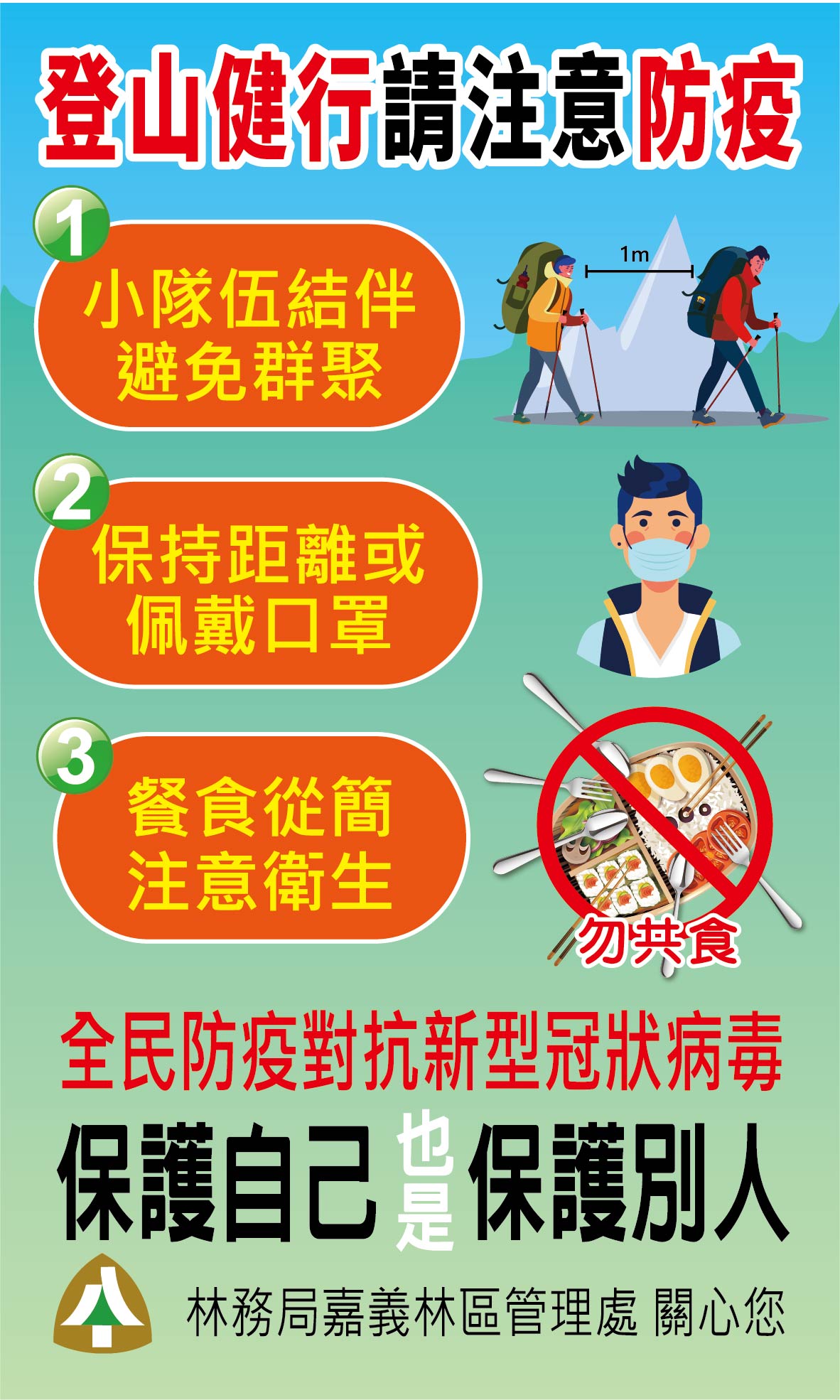 中央流行疫情指揮中心公告於110年5月11日至6月8日,提升疫情警戒至2級,阿里山國家森林遊樂區遊客總量管制人數調整為每日4,355人。入園人數達3,000人時,林務局嘉義林區管理處將透過 CMS 資訊可變標誌、LBS 簡訊、警廣等系統通知遊客;達 4,000人時,透過前揭系統通知遊客轉往其他景點,並請保全人員於園區入口啟動管制。 阿里山國家森林遊樂區自109年COVID-19疫情發生以來,依據傳染病防治法及相關公告持續落實防疫措施,場域服務人員皆配戴口罩,遊園車輛每日皆作消毒處理,遊樂區室內外均定期消毒。 為避免室內群聚,旅客服務中心即日起暫停播放影片,遊樂區室內場館採單一出入口限制入場人數,進入需配戴口罩、配合量體溫及實聯制登記。遊客搭乘大眾運輸工具、遊園車、小火車、區外免費接駁車及室內場域亦需量體溫及配戴口罩;每日旅客服務中心及阿里山工作站全區廣播提醒遊客需遵守防疫措施,配戴口罩、保持「室內1.5公尺、室外1公尺」的社交距離,並應落實勤洗手、咳嗽禮節等個人衛生習慣,以降低傳染風險。 林管處提醒民眾,全球疫情等級升溫,保護自己也保護他人,請務必配合落實防疫措施,全民防疫動起來。如出現發燒、上呼吸道、腹瀉、嗅味覺異常等症狀,應配戴醫用口罩,儘速至就近指定社區採檢院所就醫,不得搭乘大眾運輸。就醫時請主動告知接觸史、旅遊史、職業暴露、周遭其他人是否有類似症狀等,可以撥打防疫專線1922民眾疫情通報及傳染病諮詢。