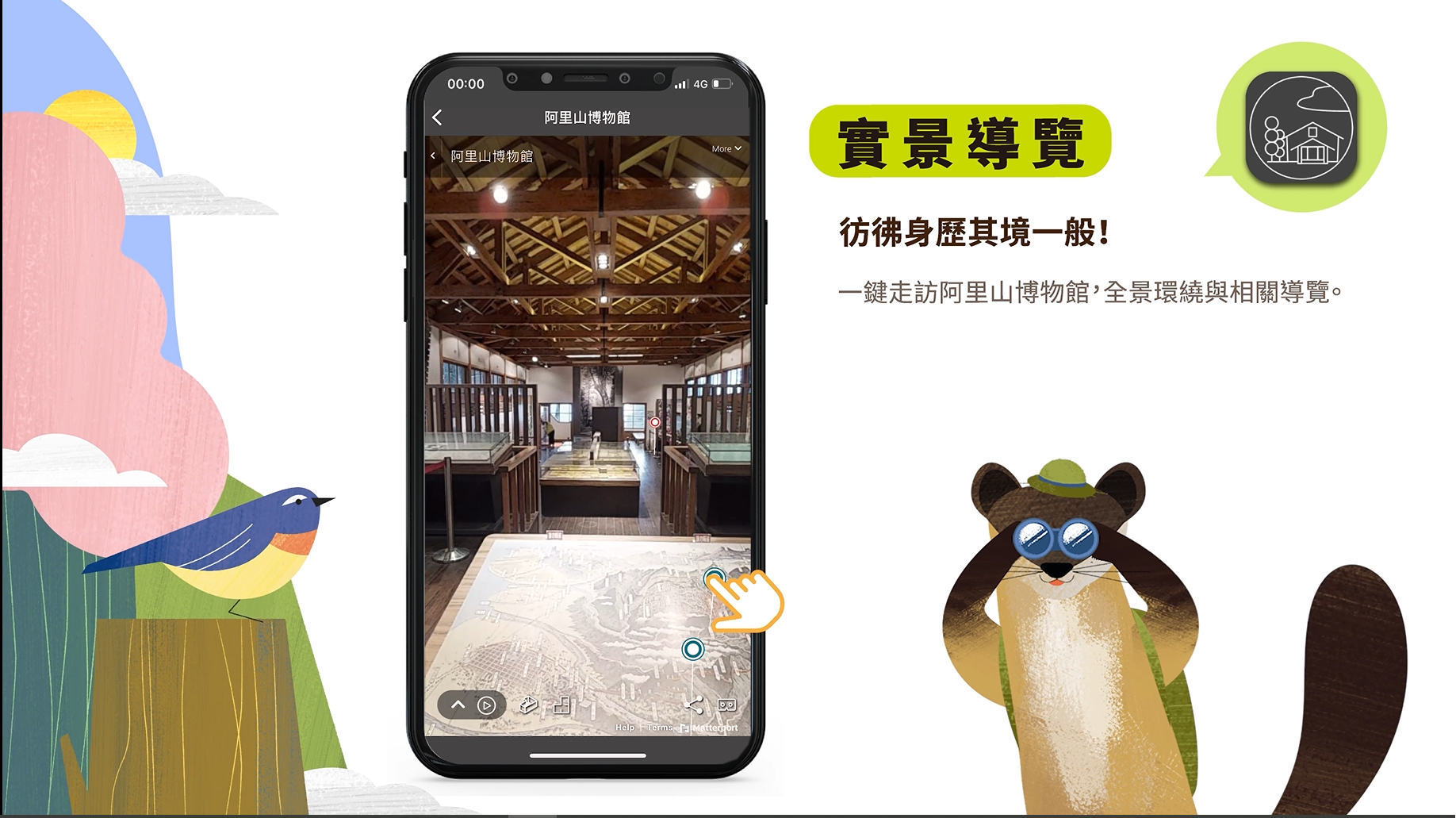 為了服務更廣大的民眾,嘉義林管處特別推出「森遊阿里山」教學短片,打開app,馬上了解山上多變天氣及阿里山日出位置,為追日提前卡位。利用「步道360度實景導覽」,讓每個景色無死角,彷彿置身於森林中,不用出門就可以享受森林視覺美。想了解展館內容可用「3D實景」,一鍵走訪博物館、生態教育館等館舍,附帶專業導覽介紹收穫滿滿。「最新花況」是由小編群即時拍照、標註座標,建立阿里山最完整的追花秘笈,讓你不再走馬看花。