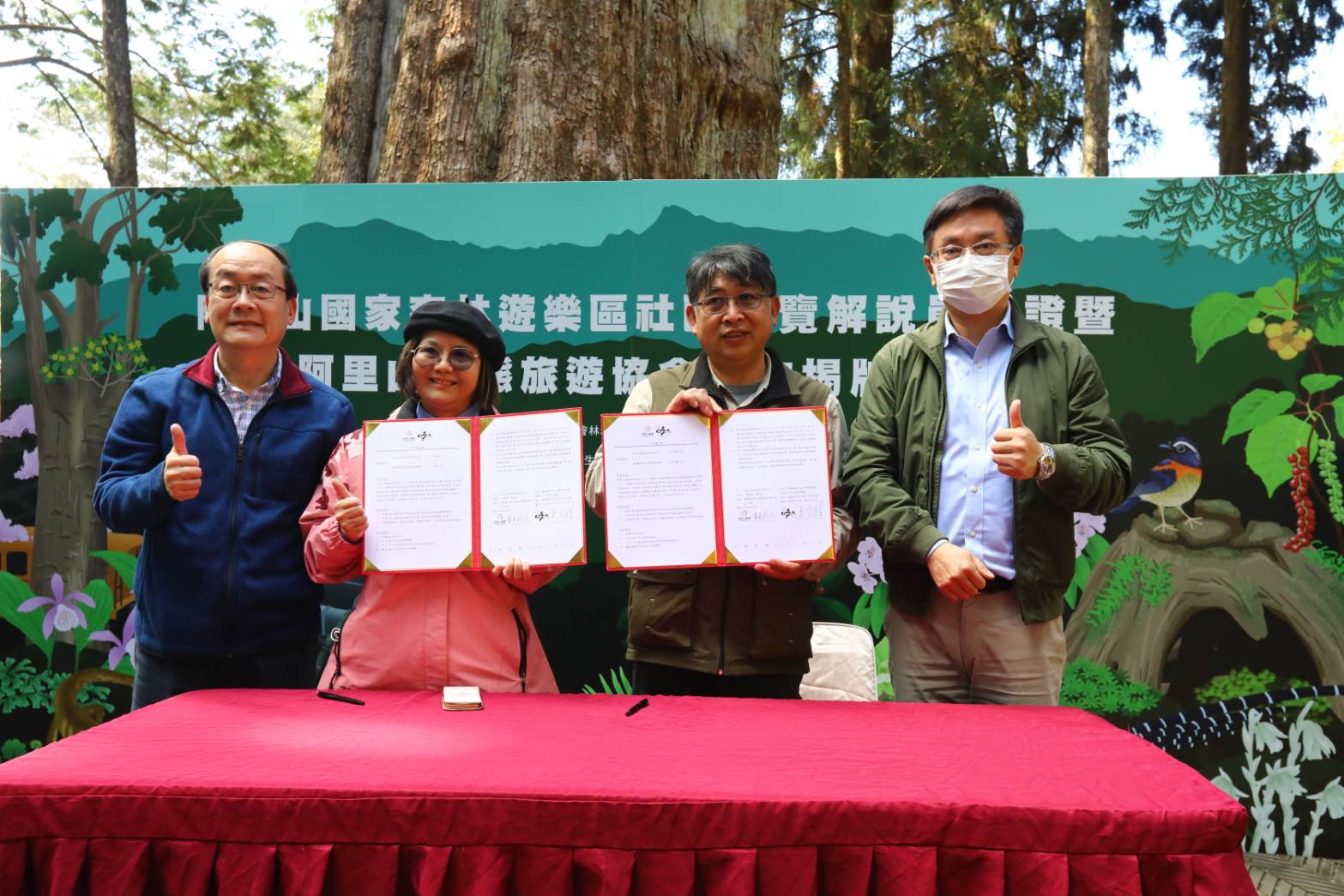 活動當日,協會更與阿里山賓館股份有限公司簽署合作備忘錄,承諾一起努力精進阿里山國家森林遊樂區旅遊服務,共同推動優質生態旅遊提升旅遊品質,為創造在地社區福祉而努力。