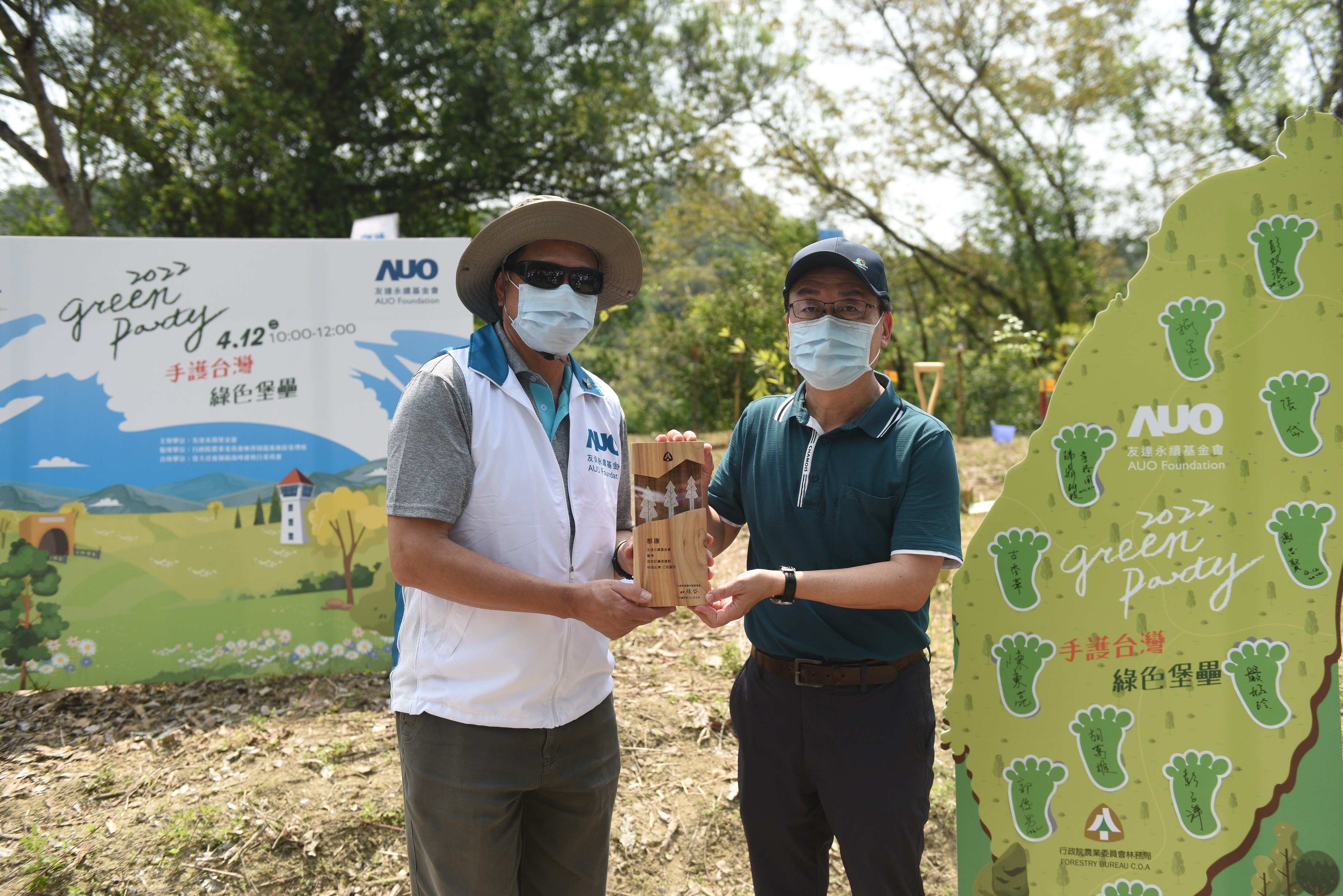 林務局嘉義林區管理處與友達永續基金會111年4月12日於臺南市玉井區土砂捍止保安林,進行企業認養造林植樹活動,在嘉義林管處處長張岱與友達光電暨友達永續基金會董事長彭双浪親自率領70餘位員工,親手種下270棵台灣原生且為碳吸存能力前二名的相思樹及光蠟樹,對於環境的保護,營造生物多樣性的價值別具意義,更能善盡企業社會責任。