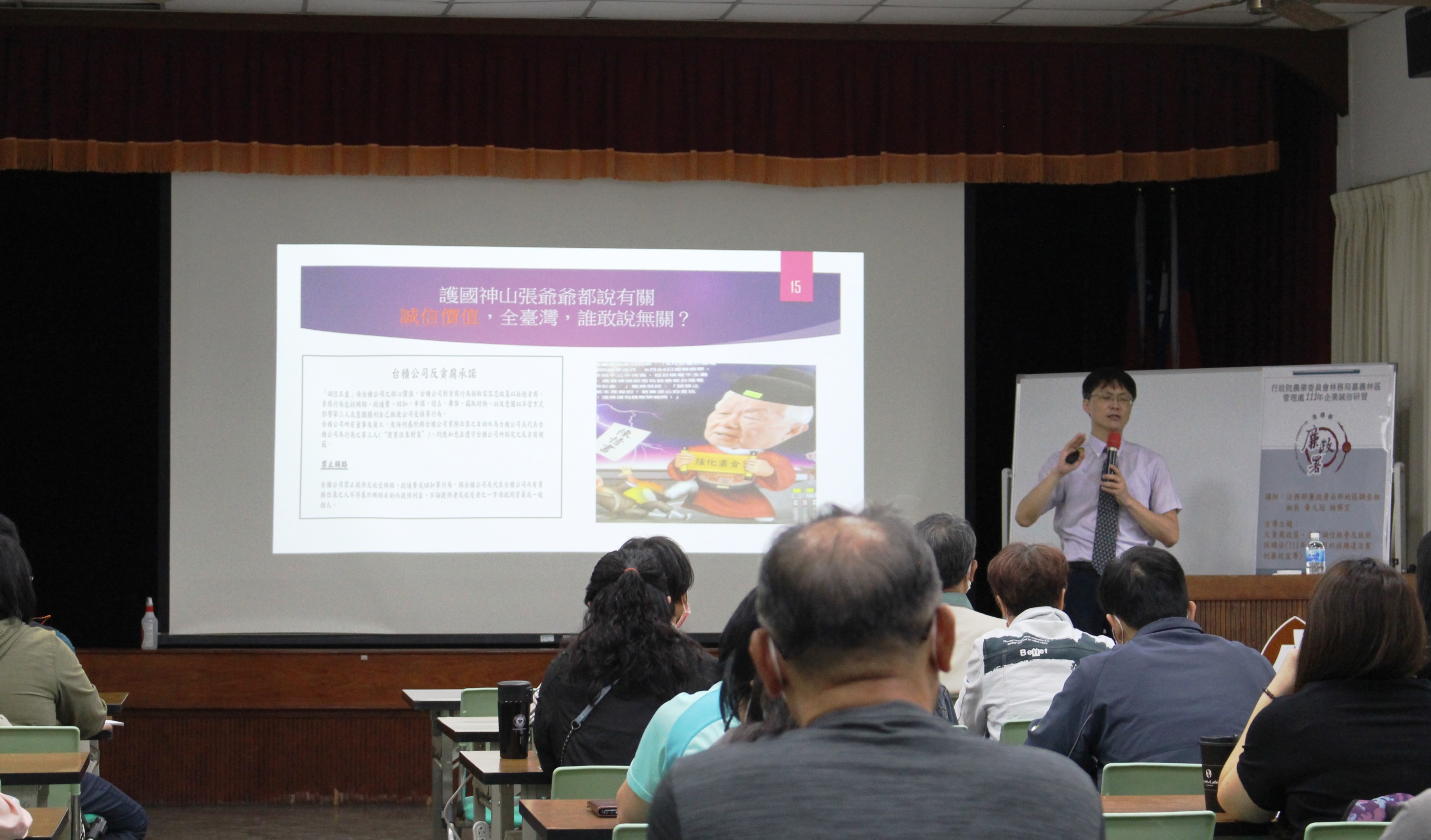 臺灣地區汛期為每年5月至11月,梅雨及颱風季的連續性強降雨常導致山區易發災害,林務局嘉義林區管理處為確實整合防救災資源,於111年4月15日舉行「111年度汛期防災措施宣導暨職業安全衛生、企業誠信研習會」,邀集轄內雲嘉南縣市之鄉鎮村里長、山區部落代表及該處勞務工程承攬公司、廠商參與,預先演練及宣導防汛相關資訊,同時為加強與外界的合作信賴關係,開設職業安全衛生及企業廉能之相關課題講座,提供其他單位及民間機構兼顧工作績效與職場安全的相關知識。 嘉義林管處針對汛期防災部分邀請國立成功大學防災研究中心組長陳俞旭擔任講師,介紹台灣山區汛期土砂災害好發原因、山崩及土石流發生機制和災害防治的手段與成效,再解釋自主防災社區概念、災前整備演練及自主協力防災的重要性,提醒學員認識災害並留意周遭環境變化,才能有效降低傷害之衝擊;對於汛期施工的高危險性,則邀請勞動部職業安全衛生署南區職業安全衛生中心簡任技正王則義擔任講師,針對汛期營造業防災重點進行實務及案例探討,及職安法規的綜合解說,以加強施工監造單位於防汛期間的安全意識與警覺性,保障勞工生命安全;另為打造廉潔社會,會中邀請法務部廉政署南部地區調查組組長黃元冠檢察官主講企業誠信經營及反貪腐課題,依據「聯合國反貪腐公約」指出貪腐是全球性,公私部門及民間力量均須共同參與,政府機關的廉潔與民間組織的誠信要相輔相成,方能組建反貪廉能陣線,共同創造公平誠信的高效能施政環境。 林管處期盼透過反覆演練、落實,使大眾具備緊急救災的應變動能,並身處安全無虞且具效能的優質從業環境,共同打造安心信賴的民政合作關係網絡。