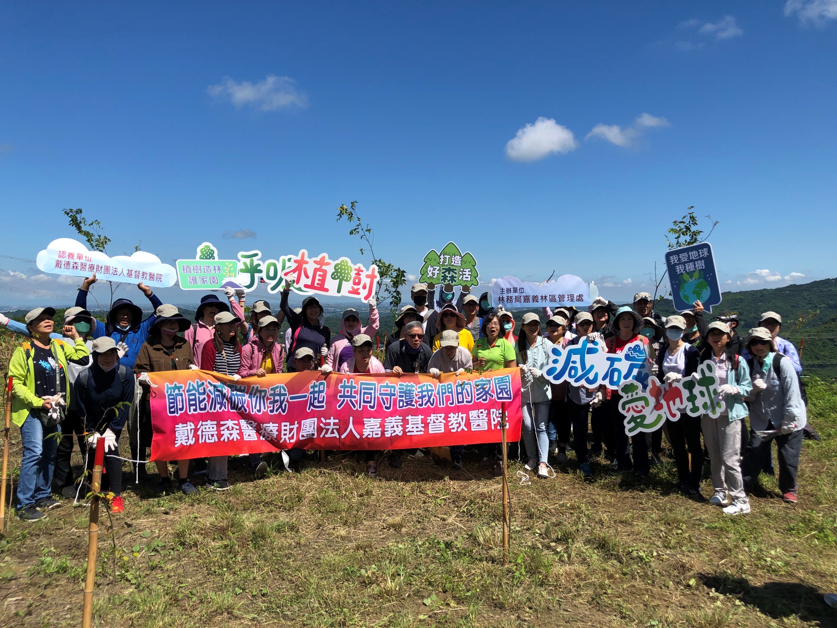 森林是地球上主要的碳滙,種樹造林是增加天然碳滙最佳的方法。戴德森醫療財團法人嘉義基督教醫院參與林務局捐款認養植護樹計畫,今(13)日由林務局嘉義林區管理處康素菁課長代表與陳明晃副院長及周恬弘副院長率領50位員工在台南市東山區舉辦植護樹活動,種植及養護台灣櫸、烏心石林木。嘉義基督教醫院秉持救人、護樹同樣重要的理念,與林管處共同推動森林及環境資源復育工作,以具體行動守護台灣山林及為地球環境盡一份心力。