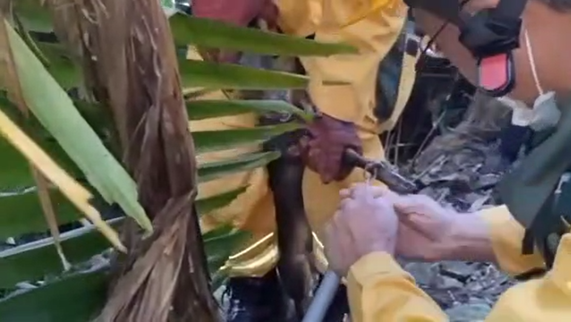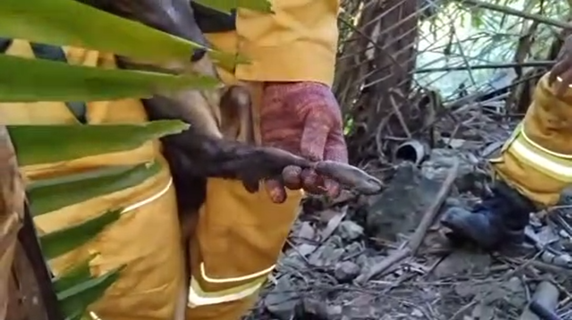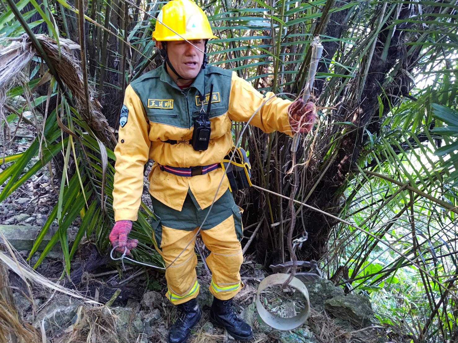 林務局嘉義林區管理處觸口工作站昨(23)日於大埔事業區第158林班辦理森林火災防火演練,森林護管員於演練期間發現一隻山羌受困山豬吊陷阱,經同仁協力解救,山羌順利救援成功野放。