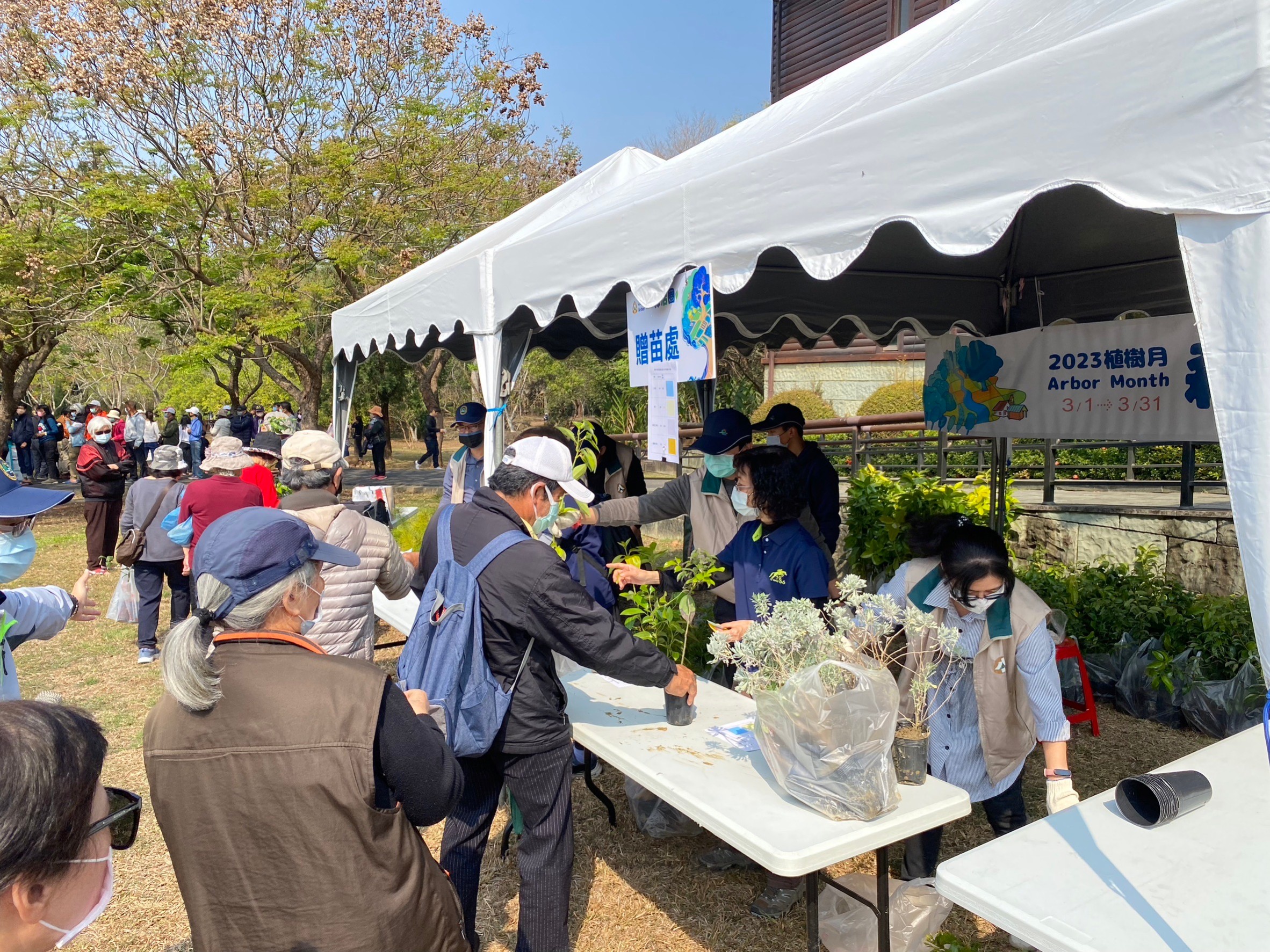 嘉義林管處表示,今年林務局植樹月主題「森活圈」呼應COP15生物多樣性公約締約方大會協議,守護臺灣生物多樣性,希望透過各區域植樹、贈苗等系列活動,邀請民眾一同栽植適宜的原生樹種,將破碎化的生物棲地串聯成森活圈,維護森林生態與人類生活間密不可分的健康關係。活動循往例請民眾以捐贈發票方式,在領苗木同時獻出愛心幫助社福單位,而今日林管處也與嘉義縣財政稅務局合作,開放民眾捐贈電子發票,推廣減紙減碳。另外財政部國稅局南區分署嘉義分局、嘉義地方法院也到場共襄盛舉,進行財稅及國民法官等宣導,讓民眾領苗之餘可以瞭解更多政府現正推行的制度。