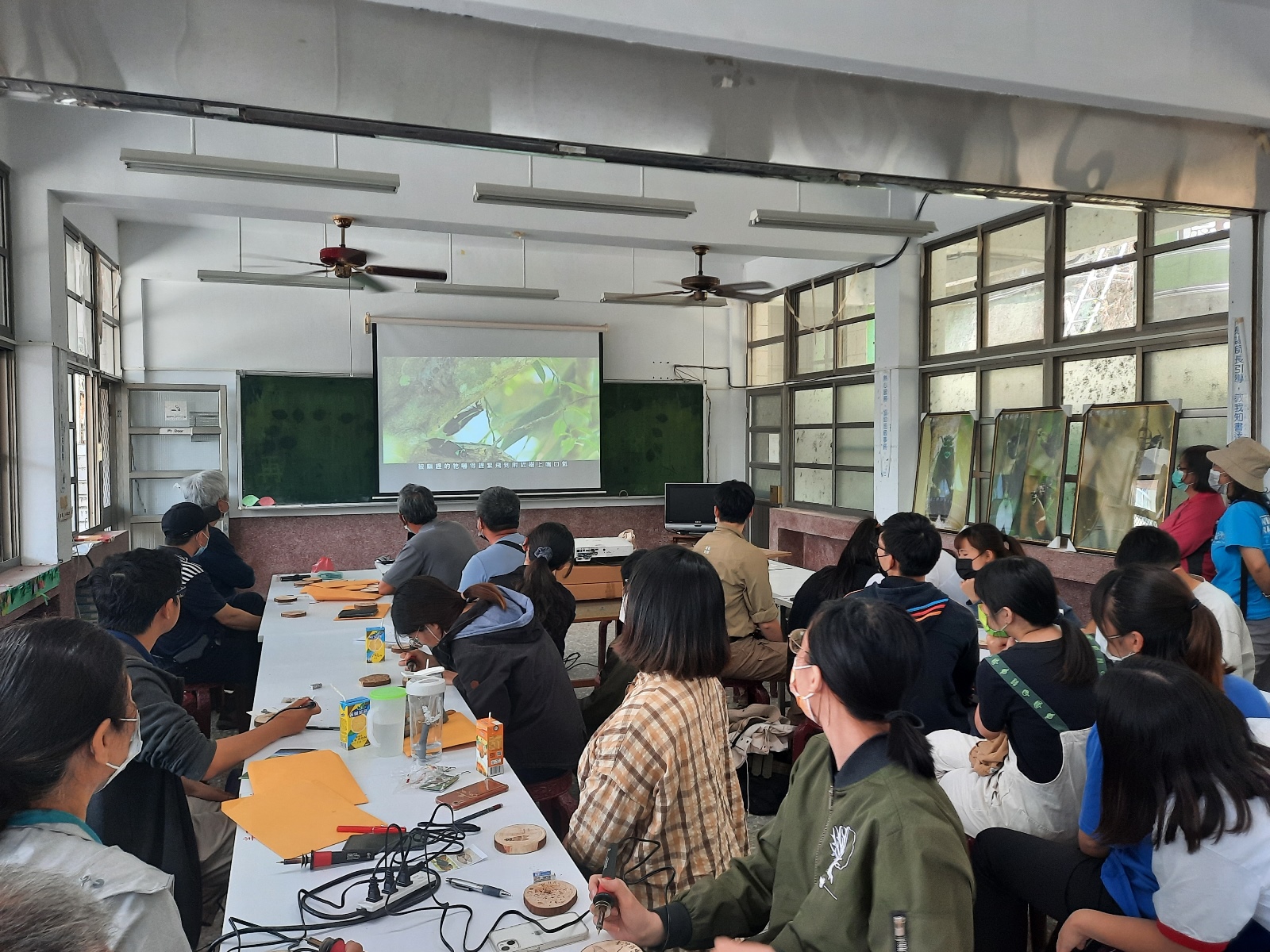 林務局嘉義林區管理處委託國立嘉義大學推動臺灣爺蟬社區保育行動,攜手草山社區及公興社區,於昨(22)日在隙頂國小草山分校舉辦「草山青年生態講座與體驗」活動,帶領學生及民眾進入臺灣爺蟬的家─番路鄉草山社區,展現臺灣爺蟬研究及推動社區保育行動成果,並實際走入手作步道體驗草山社區保護爺蟬棲地的現況。 臺灣爺蟬屬於珍貴稀有保育類昆蟲,在臺灣的蟬類中體型最大,擁有深黑的身軀和翅膀,背部上有青綠色的豔麗花紋,猶如一張狐狸的臉,也有人稱牠們為「青頭蟬」、「狐狸蟬」。臺灣爺蟬由於有著美麗的外表,過去曾受到長期的捕抓並製成標本販賣,造成數量逐漸稀少。近年在林務局推動國土生態綠網計畫下,由嘉義林管處委託嘉義大學進行嘉南地區臺灣爺蟬生態研究,逐漸開始對爺蟬的分布、寄主植物和生活史等有更多的了解;同時推動社區保育行動計畫,深入社區辦理生態教育講習和交流活動,培養生態保育觀念及導覽解說能力,讓更多社區參與爺蟬保育工作。 本次活動共有40位學生及民眾共襄盛舉,先由公興社區發展協會分享在地文創商品開發經驗,參與民眾在老師指導下,進行在國產材臺灣肖楠木板上親手電烙爺蟬圖樣的趣味手工藝實作。接著由嘉義大學植物醫學系宋一鑫老師研究團隊向參加民眾分享爺蟬生態研究和社區保育推動的計畫成果,其中包括團隊精心製作的「臺灣爺蟬與草山四季」影片播映。影片中介紹臺灣爺蟬的生態和生活史,以及草山社區因和爺蟬的際遇,積極發展生態旅遊,在一年四季中來到草山,都可以有獨特的體驗。 跟隨著草山社區發展協會的帶領,參與的學生和民眾踏入草山社區居民跟嘉義林管處、嘉義大學合作以當地素材自然工法建造的九彎仔手作步道,步道旁栽植百棵臺灣爺蟬的主要寄主植物─臺灣梭羅木,社區並成立巡守隊巡護爺蟬棲地,已有效減少盜獵事件的發生。林管處表示,本次活動除了與民眾分享臺灣爺蟬的研究成果,也期望呈現社區參與對保育和守護山林的重要性,吸引更多社區居民共同參與,甚至培養未來可能的生態導覽人員,希望臺灣爺蟬神秘翩然身影,能在臺灣的森林中持續飛翔。