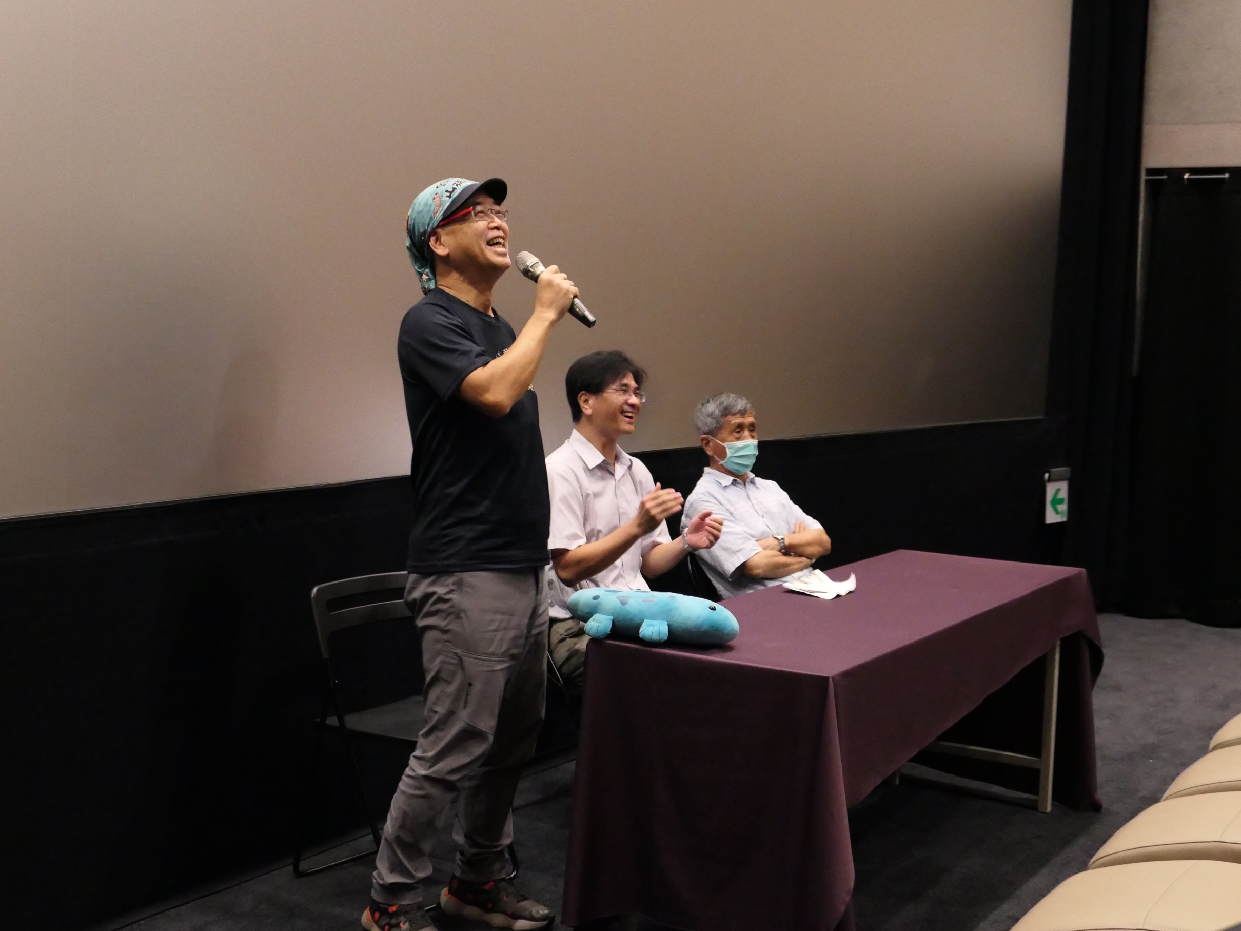 林務局嘉義林區管理處昨(12)日晚間包廳舉辦《山椒魚來了》生態紀錄片特映會,超過60位林管處同仁、國家森林志工及環境教育教師共襄盛舉,一同跟隨著電影中研究人員的腳步跋涉臺灣山岳,認識臺灣5種特有種山椒魚。映後更特別邀請重磅級導演麥覺明以及率領臺灣山椒魚研究的靈魂人物臺灣師範大學教授呂光洋進行座談,分享電影拍攝經歷及山椒魚生態和研究之路。 映後座談由嘉義林管處秘書鄭鈞謄主持,由麥覺明導演率先分享歷時17年拍攝的《山椒魚來了》電影緣起及經歷,並希望藉由電影讓民眾更了解珍貴的臺灣特有種山椒魚習性。麥覺明同時也表達與林務局已有多年的合作關係,許多人跟他說從小看他的節目長大,而他則是看著林務人員長大的,最初拍攝山椒魚,也是從阿里山開始,跟嘉義林管處有很深的感情;而呂光洋教授則分享山椒魚的生態及演化知識,也表達他自民國66年回國後,第1隻山椒魚就是在阿里山發現的,在阿里山進行山椒魚研究也已有至少30年的時間;此外呂光洋也宣導無痕山林的重要,鄭重呼籲遊客上山及志工導覽山椒魚時,請不要隨意翻找山椒魚,干擾牠們的棲地環境。觀眾也和麥覺明、呂光洋互動,了解山椒魚物種形成的原理及到日本拍攝大鯢的所見趣聞。透過《山椒魚來了》,5種臺灣特有種山椒魚的身姿活躍於大螢幕上,觀眾得以一窺山椒魚卵串孵化的珍貴影像紀錄,以及山椒魚所面臨如登山等人為活動影響棲地環境的問題。電影中亦呈現出研究人員不畏辛勞,蹲下身翻開一塊塊石頭尋找山椒魚的身影,及團隊成員研究山椒魚精神的代代傳承。 臺灣為山椒魚分布的最南界,如同《山椒魚來了》電影內容所指出,山椒魚族群分布在高海拔山區,不但受到氣候變遷的影響,遊憩活動造成棲地的汙染、人為干擾以及基礎研究資料的缺乏,都成為山椒魚生存的主要威脅。臺灣5種山椒魚皆為林務局盤點出的優先保育行動研擬對象,其中阿里山山椒魚為臺灣分布最廣的山椒魚,是珍貴稀有的保育類動物,嘉義林管處也一直陸續在進行阿里山山椒魚的監測調查及棲地保護營造,最新計畫為2020年委託國立臺灣大學朱有田教授進行阿里山山椒魚的族群分布、食性調查及保育遺傳學研究,成果發現阿里山國家森林遊樂區及特富野古道的阿里山山椒魚族群具有遺傳組成的獨特性。林管處希望透過包場觀影支持山椒魚研究及生態紀錄片的製作團隊,宣導山椒魚保育的重要議題,同時會持續致力於山椒魚族群的保育工作。
