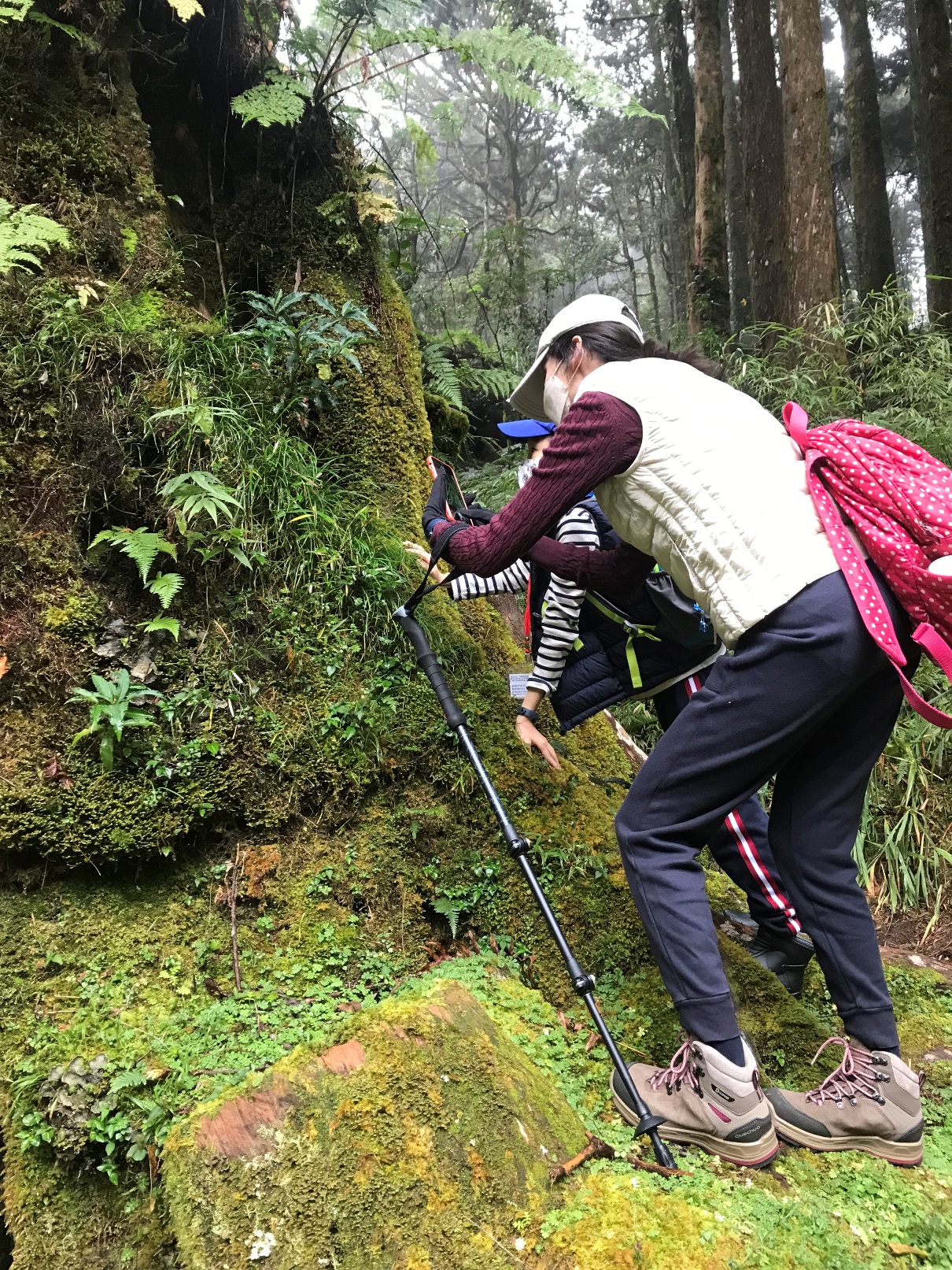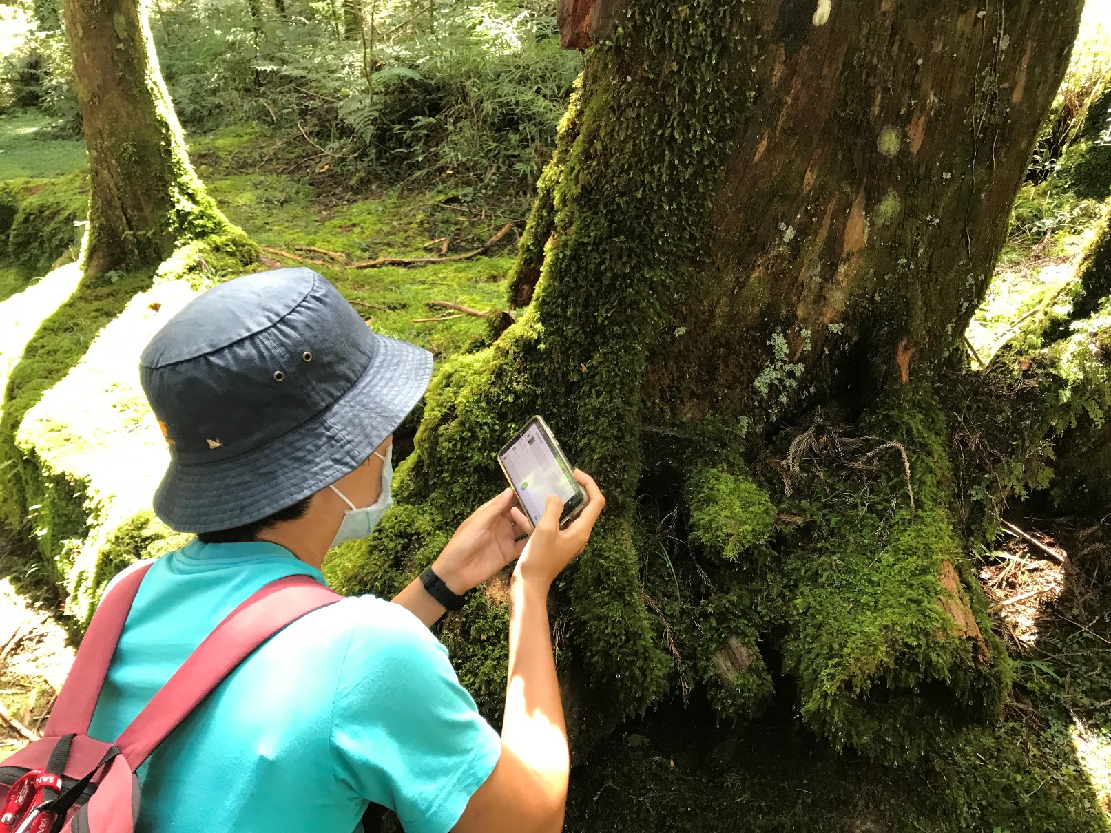 阿里山國家森林遊樂區位於霧林帶,終年濕潤、豐沛霧氣孕育出著名的紅檜、扁柏,以及森林中隨處可見的的苔蘚、地衣。「寶庫阿里山」活動帶領學員漫步於園區步道,沿途觀察步道周邊生物,發現身旁各具特色的植物,同時指導學員使用愛自然app拍照上傳,呼吸芬多精於大自然放鬆身心也能記錄生態做研究。