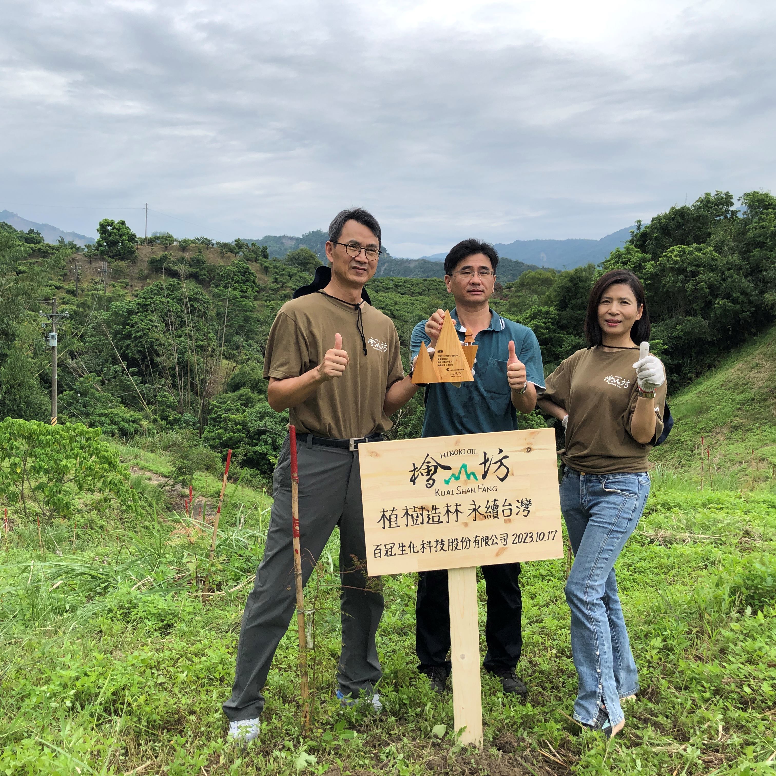 為支持檜山坊「取之於林用之於林」的精神,農業部林業及自然保育署嘉義分署秘書鄭鈞謄今(17)日與檜山坊創辦人黃素秋、總經理李清勇等人,在該公司今年度捐款贊助的臺南市南化區國有造林地刈草除蔓並豎立認養牌誌,以行動永續臺灣”森”命力。