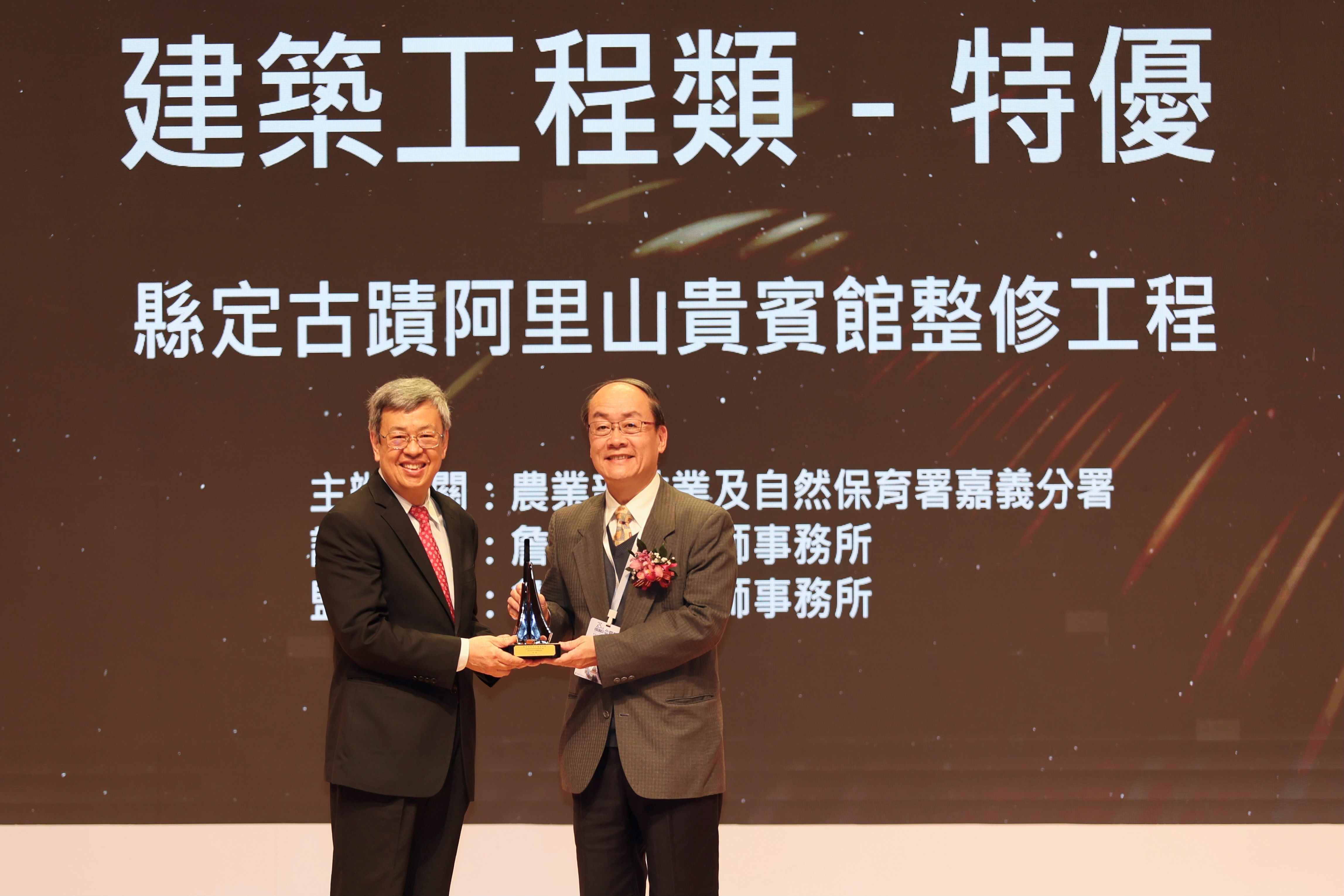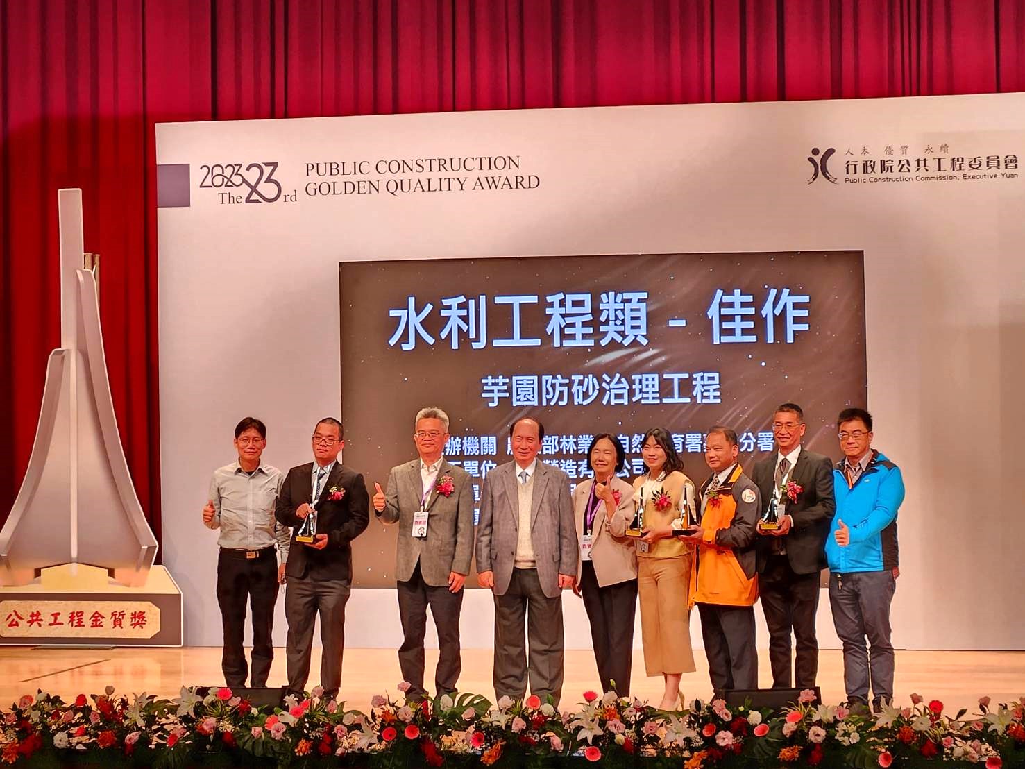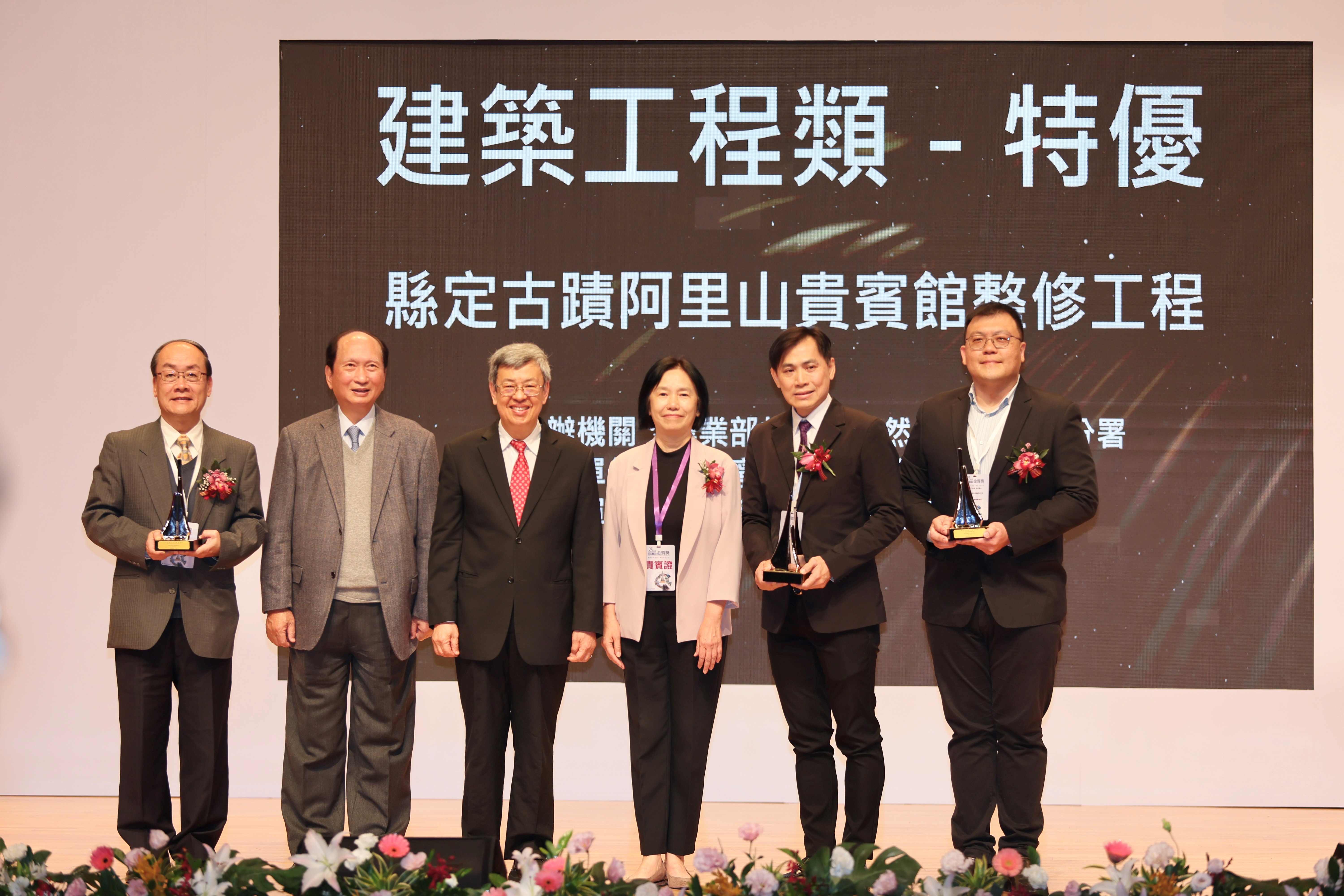 今(112)年林業及自然保育署嘉義分署提報「縣定古蹟阿里山貴賓館整修工程」及「芋園防砂治理工程」參加第23屆公共工程金質獎「公共工程品質優良獎」, 26日分別獲頒建築類特優及水利類佳作的殊榮。