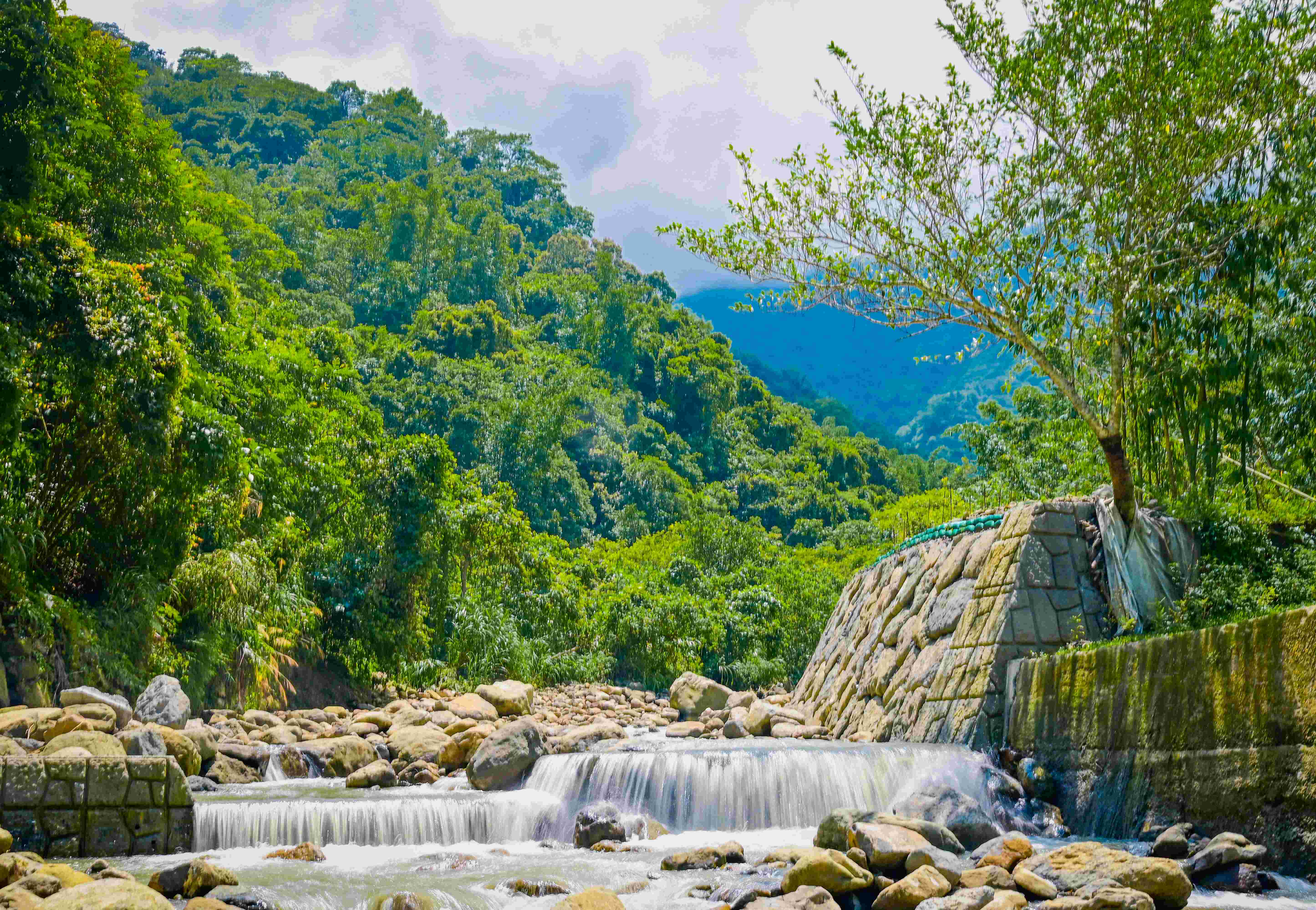 芋園工程位於臺南市白河區關子嶺地區,為白河水庫上游白水溪流域,由於原有縱橫向構造物在歷年颱風豪雨逕流淘刷下,產生部分破損及基礎裸露情形,難以發揮抑制土砂災害的功能;嘉義分署評估構造物現況,於111年編列預算進行整治改善,導入對應補強工程,保留樹島及巨石等現地風貌,並用生態工法減少河道高低差,營造生物友善環境,達到既有構造物延壽再利用及減輕環境破壞與水庫淤積量,保全172線道、白河區關嶺里、中埔鄉東興村通行安全的目的。同時完工後透過生態團隊持續追蹤調查,棲地環境已得到復育,原生物種也逐漸回歸。