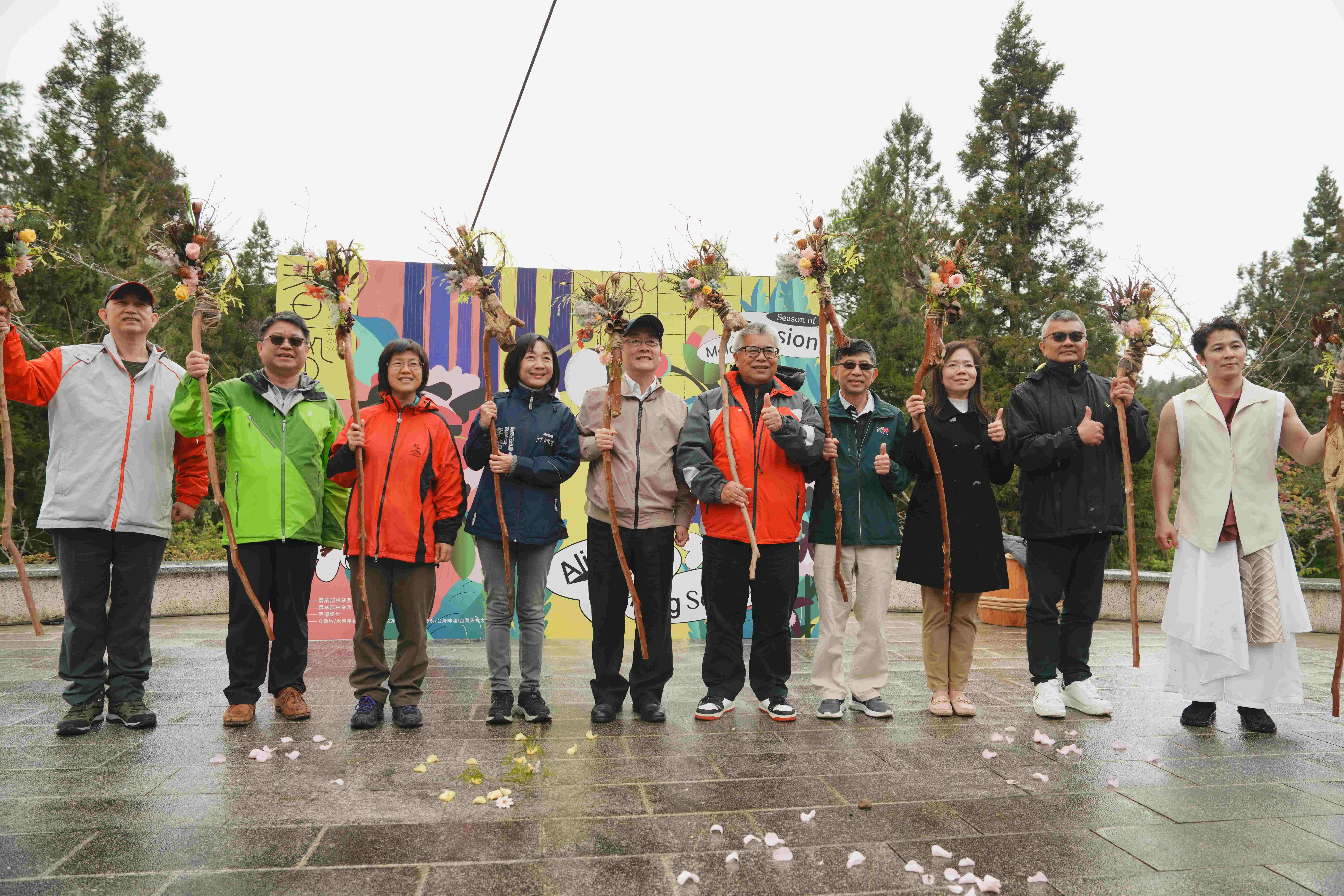 林業及自然保育署嘉義分署今(10)日在阿里山國家森林遊樂區沼平公園舉辦2024阿里山花季記者會,揭開今年度花季「櫻與音的對話」,邀請「众擊坊」透過深沉的鼓聲為阿里山譜寫一段美麗鼓樂,舞台從沼平公園延伸至阿里山山椒魚館旁的森林,以氣勢磅礡的擊鼓音樂演出,宣告阿里山花季正式開始!另外邀請蔬食料理團隊,以阿里山在地食材結合山林特色製作限定餐點,推出「限定森林餐桌」,讓遊客體驗全新的視覺與味覺饗宴。