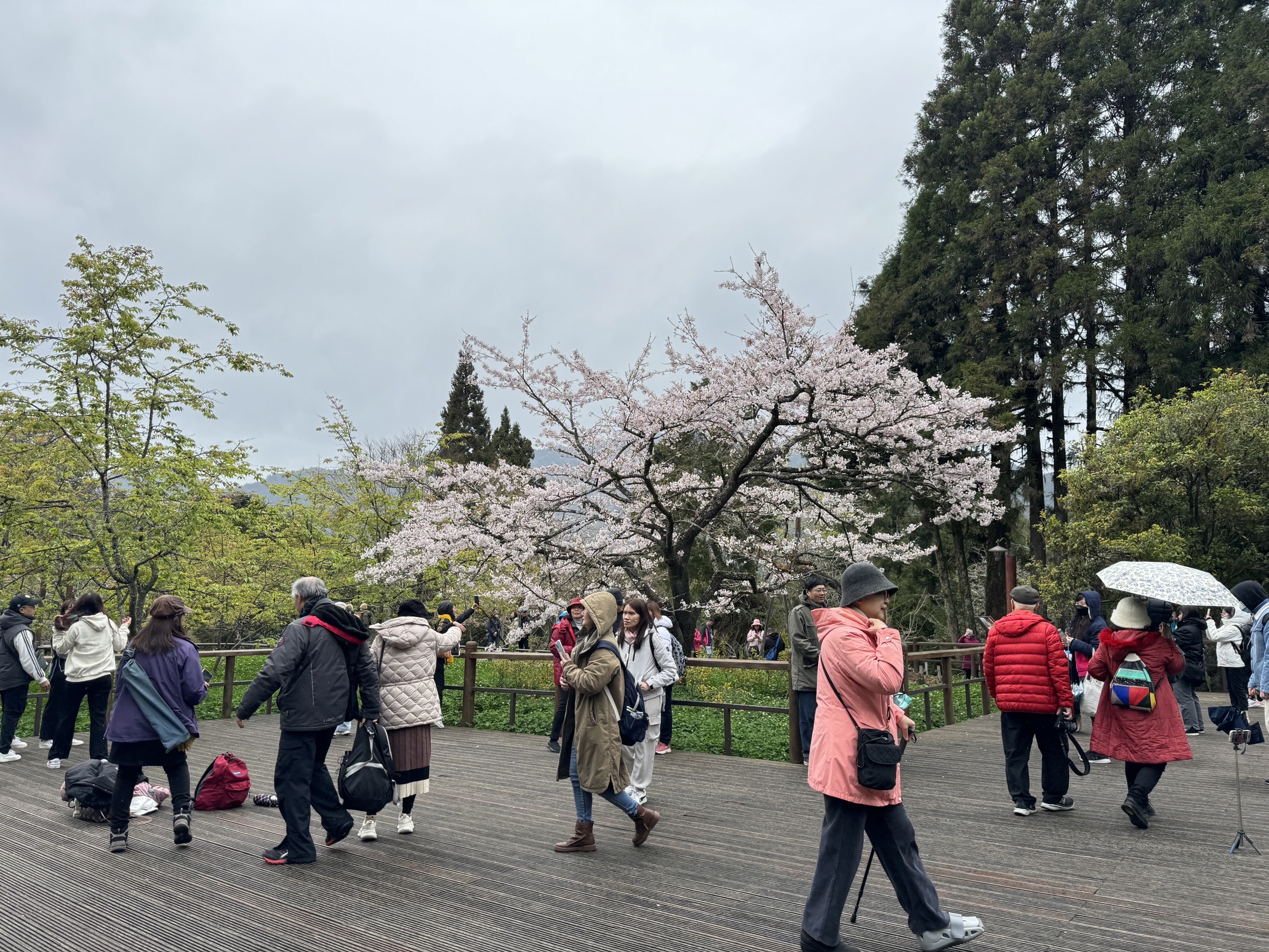 今年氣候偏暖,預估花期較往年提前7-10天,阿里山工作站前眾所矚目的櫻王-染井吉野櫻已近盛開,而經典賞花地點阿里山派出所後方、祝山觀日平台的吉野櫻也進入最佳賞花時機;阿里山的櫻花種類多達31種,將陸續接力綻放,除了花期較早的山櫻花、霧社山櫻花、琉球山櫻花、阿龜櫻,還有白木蘭、紫玉蘭、臺灣一葉蘭、多花紫藤及玉山杜鵑等多樣花卉接力開花至4月底,讓上山遊客盡情享受春意盎然的氣息。