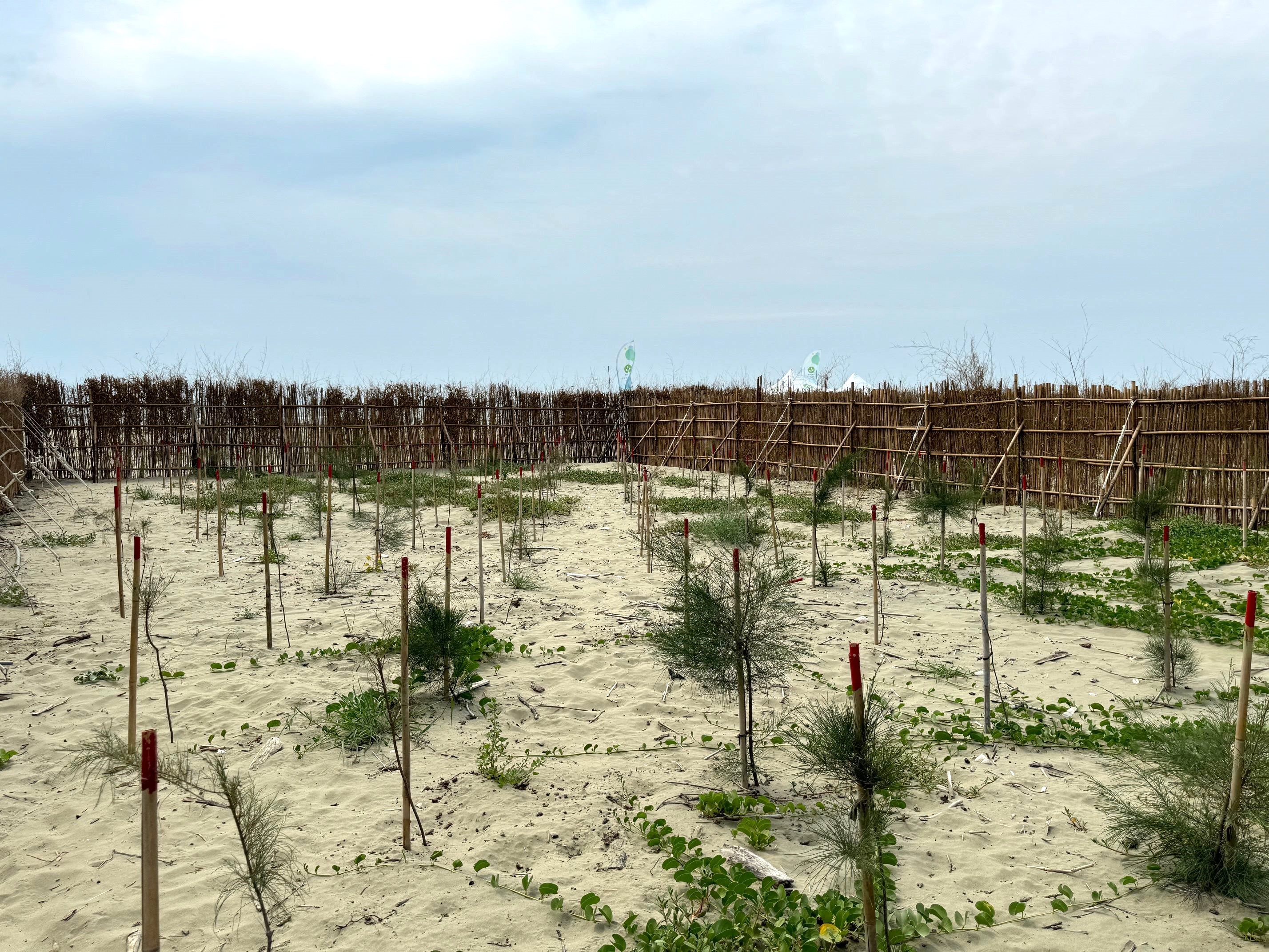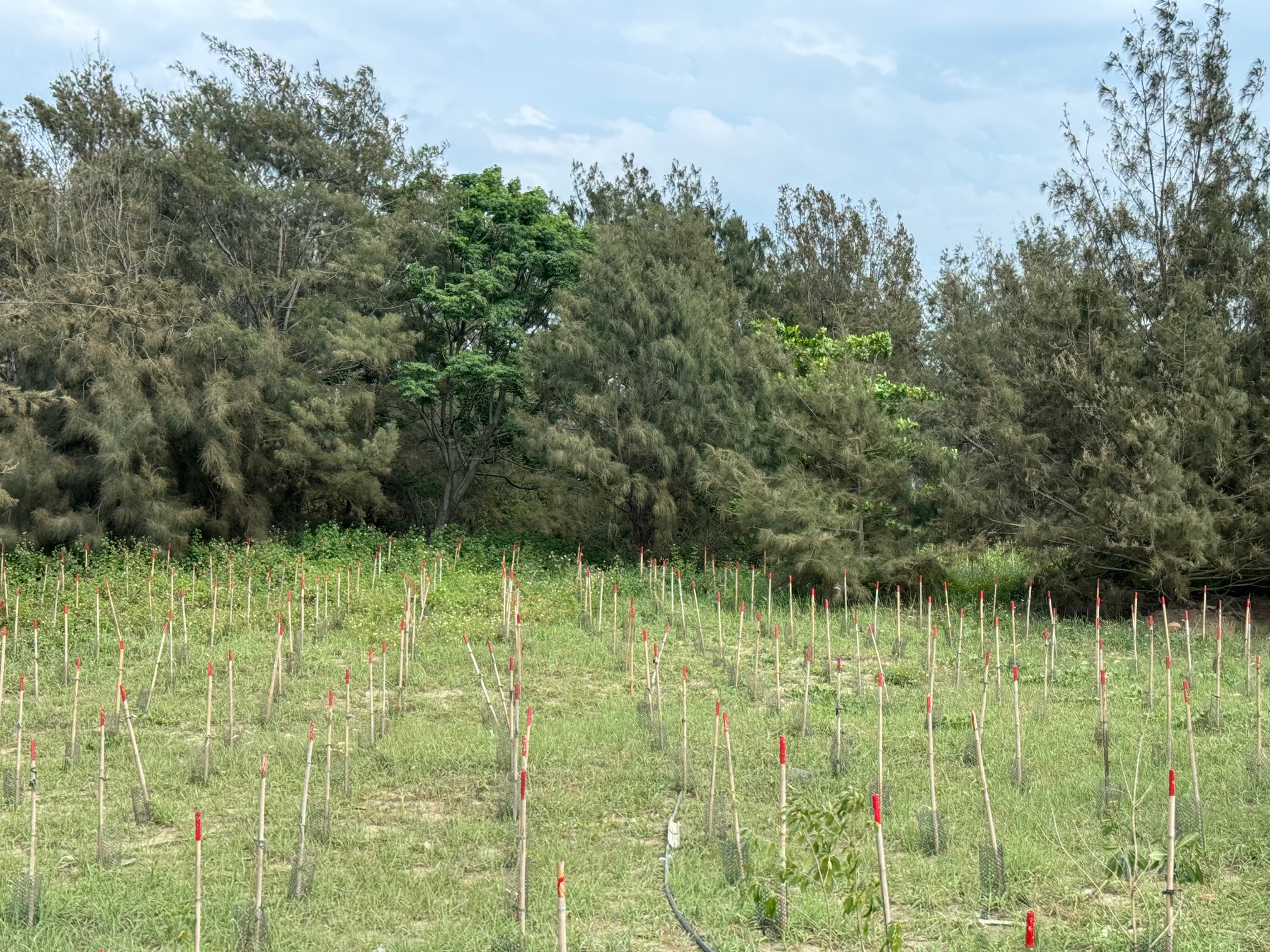 台灣半導體製造巨頭台積電長期支持海岸造林計畫,與林業及自然保育署嘉義分署合作造林,112年於台南北門雙春近海岸側種植海岸樹種營造海岸林,守護台灣西南海岸線。22日該公司帶領員工約150人參與植樹及淨灘活動,嘉義分署副分署長李定忠特別到場參與並致贈合作造林感謝牌,肯定該公司對守護台灣西南海岸線的用心及努力,將環境永續發展列為首要。 公私合作綠化海岸線 防災減災保安國土 台灣四面環海,海岸線長約1,250公里,因海岸地區易受東北季風、土地鹽分、飛砂及潮害侵襲,環境惡劣導致植物生長困難,造林難度相當高,林業保育署積極進行海岸林栽植及複層林營造工作。2(111)年前台積電與林業保育署洽談合作造林,擇定與嘉義分署自112年起於台南市北門雙春地區共同推動海岸復育造林,造林面積3公頃,種植耐鹽、耐旱、適合海岸地區的樹種,如大葉欖仁、苦楝、台灣海桐、木麻黃、林投等13,200株,增加台灣西南海岸綠色資源,以防災、減災、營造生態棲地,增加生物多樣性。 該造林地去(112)年面臨東北季風及小犬、海葵颱風海水倒灌的多重威脅,不但危害林木生長甚至死亡,海岸造林困難重重,卻非做不可,該公司積極增設防風圍籬計1,200多公尺,目前苗木陸續恢復生機。22日台積電特別率領150多位員工志願服務,進行苗木補植及淨灘工作,齊力營造藍海綠地,參與的員工都感受到海岸造林的重要性,對於能夠一起以實際行動守護美麗海岸線感到非常有意義。 政府與企業攜手淨零 打造環境與經濟多方共好 嘉義分署表示,因應2050年淨零排放目標,以及企業日益增加之自然資源管理、生物多樣性保育、環境保護及社會責任等永續目標的需求,林業保育署推動「增加森林面積」、「加強森林經營」、「提升國產材利用」三大森林增匯策略,並對應聯合國永續發展目標(SDGs)及昆明-蒙特婁全球生物多樣性框架(GBF),推動以自然碳匯及生物多樣性為主的專案,建置「公司團體參與自然碳匯與生物多樣性保育專案媒合平臺」,規劃自然環境及社會文化二大面向,自然碳匯、生物多樣性、林業文化及山林文化四大類別11種類型專案,公開徵求企業參與森林經營、自然棲地維護或生物多樣性保育等工作,共創雙贏互利,歡迎有興趣的企業團體大家作伙來。
