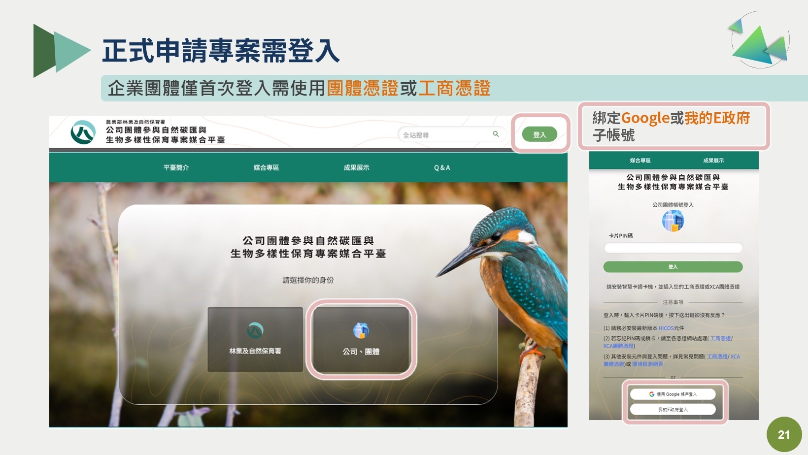 隨著CSR (企業社會責任,Corporate Social Responsibility)轉化為ESG (E環境保護Environment、S社會責任Social以及G公司治理Governance)議題發燒,有愈來愈多企業團體紛紛投入ESG行列,林業及自然保育署為積極回應社會需求,已建立「企業參與森林及自然碳匯ESG專業媒合平臺」(簡稱ESG專案媒合平臺,https://esg.forest.gov.tw),並於113年4月15日已正式上線,專案種類包括新植造林、竹林經營、棲地營造、林業文化資源保存或活用等類別。嘉義分署第一階段提出之專案共計7案,未來也會不定期持續推出各類專案,提供企業團體挹注資源,共同發展自然環境生態保護的目標。本階段專案受理期限將於5月29日截止,歡迎有意願申請之企業把握時間提出申請。