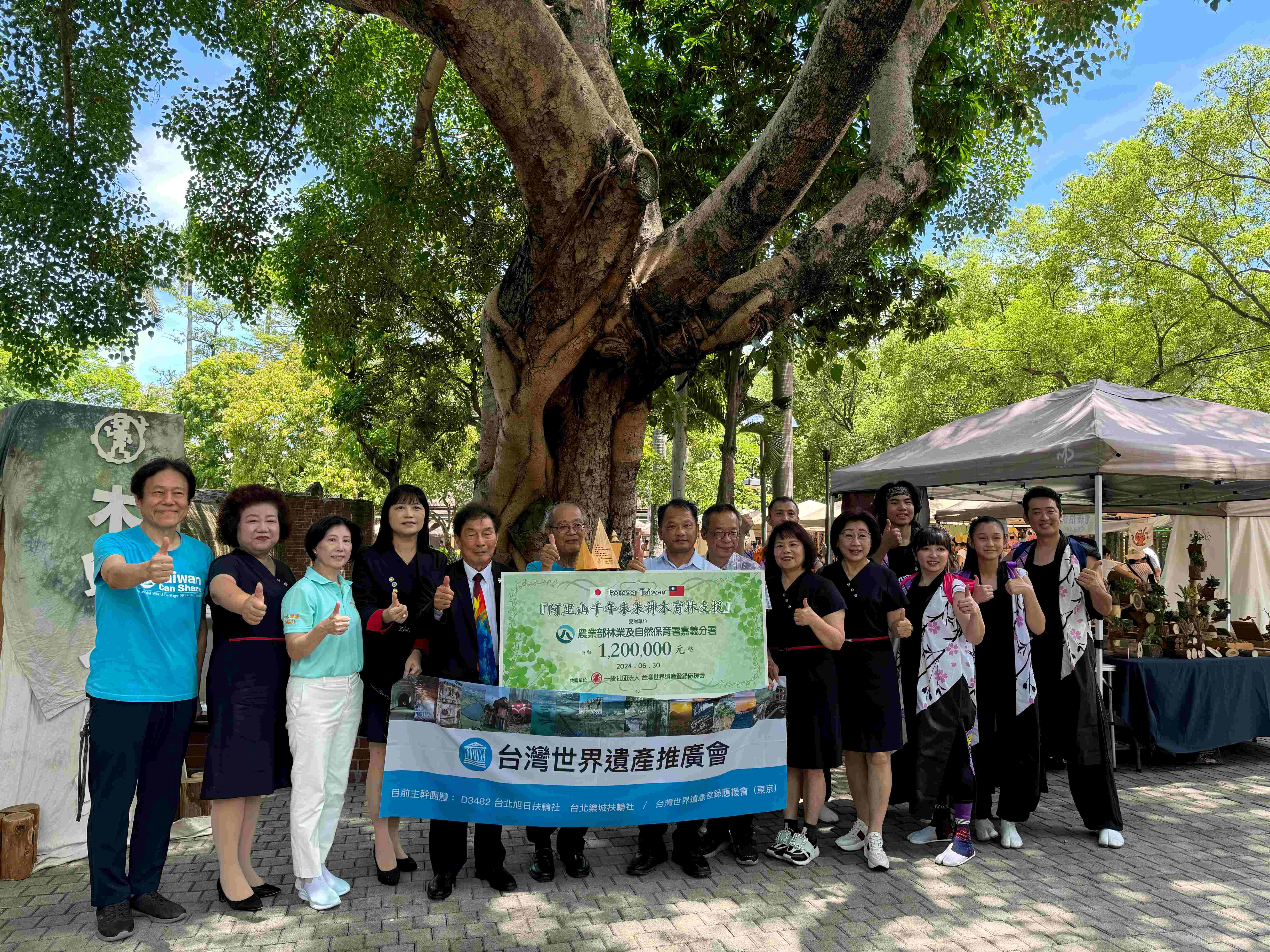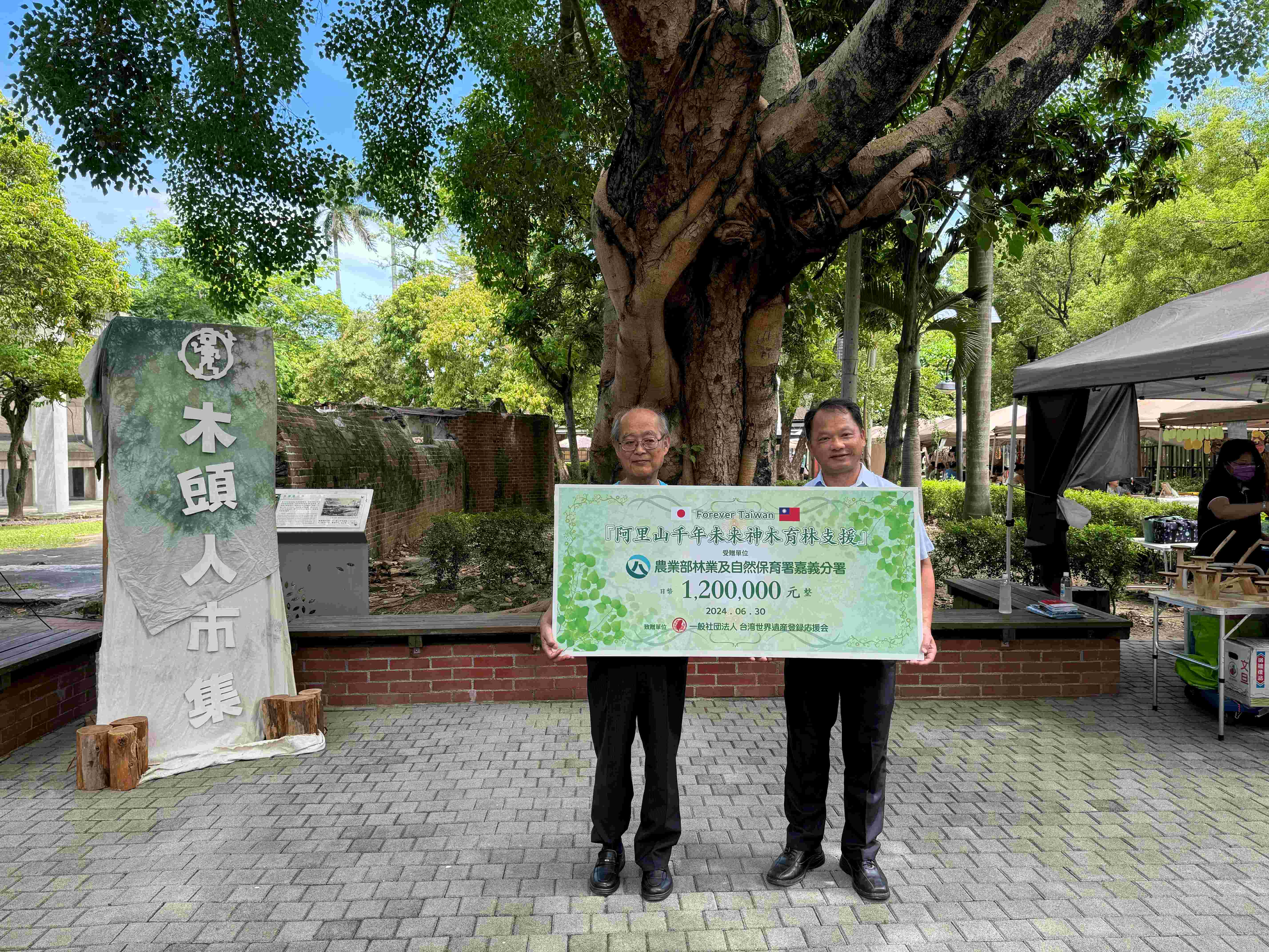 農業部林業及自然保育署嘉義分署副分署長李定忠今(30)日上午代表出席於嘉義製材所辦理的「阿里山千年未来神木育林支援金贈呈儀式」,接受日本一般社團法人台灣世界遺產登錄應援會以「重現阿里山地區千年檜木林」為目標,在網站公開募款所得的120萬日圓,供阿里山造林工作使用。 嘉義分署表示,日治時期日本人建造阿里山森林鐵路,開採阿里山地區森林資源,而今森林鐵路不再是林木生產的運輸工具,但其因應地形環境發展的建造技術、設備,及海拔爬升形成的景觀變化,結合阿里山國家森林遊樂區內林業發展遺留的遺跡、森林巨木及四季景觀,成為台灣登錄世界遺產潛力點中最有潛力的遺產之一。台灣世界遺產登錄應援會成立於2013年,極力推動阿里山林業文化遺跡登錄世界遺產,去(112)年7月為了紀念成立10週年,在阿里山國家森林遊樂區內種下台灣扁柏,同時以恢復阿里山檜木林為目的在網站公開募資,今將募集款項提供嘉義分署用於阿里山地區紅檜造林地撫育工作,期待阿里山再現參天巨木。 林業保育署嘉義分署指出,每處造林地造林工作從新植到撫育至少需時6年,為鼓勵民眾、企業團體支持台灣森林資源及保育之永續發展,該分署開放讓個人、法人或團體可以捐款形式認養造林護樹工作,認養者可於認養期間設置認養標誌,並有節稅好處,同時亦能加速推動造林工作,善盡社會責任,歡迎有意願參與認養造林者,至嘉義分署網站/林務工作/捐款認養植護樹網頁查詢。