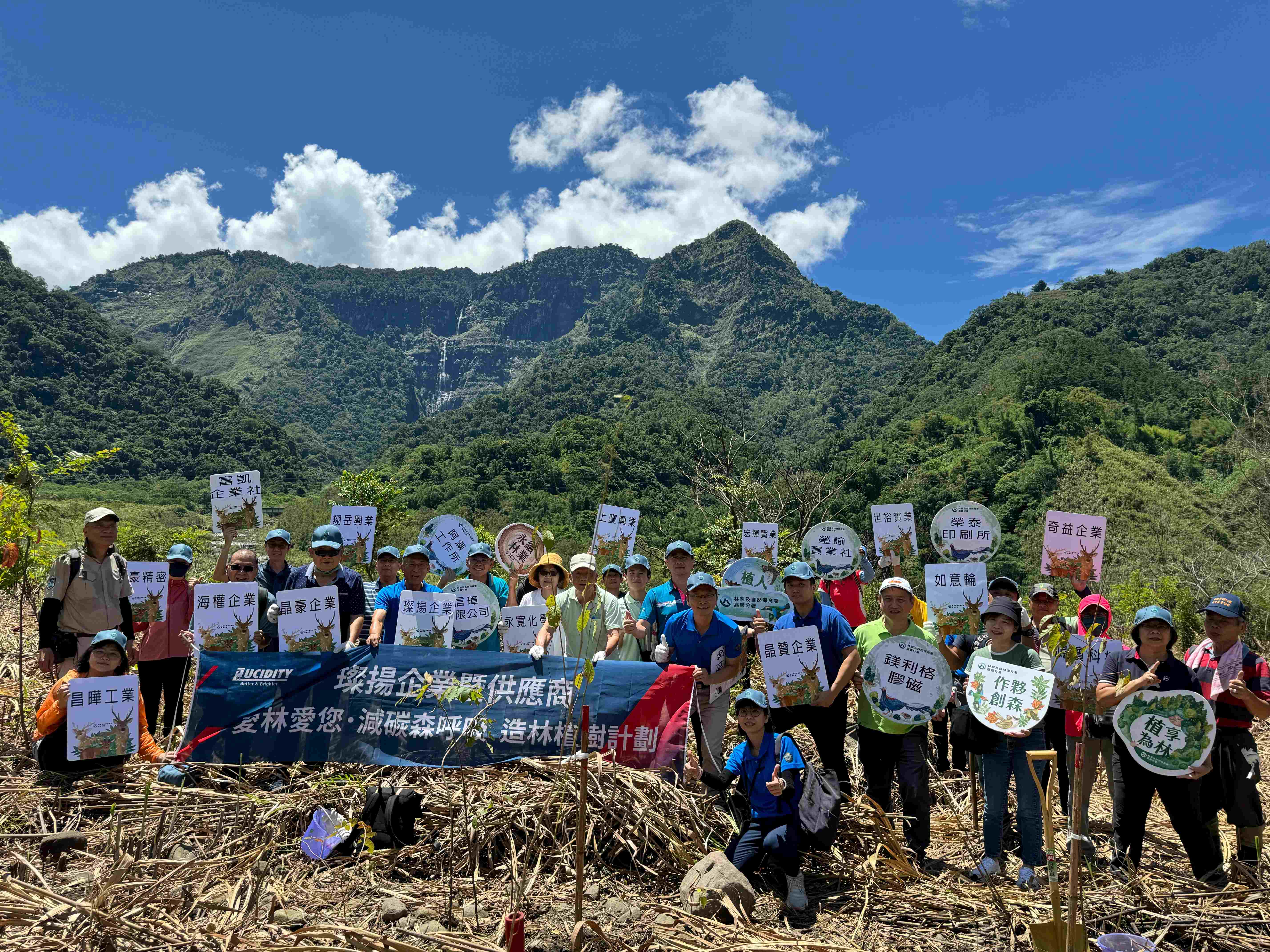 璨揚企業是將LED導入全球大型商用車車燈應用的產業先鋒,除了創新研發高功率LED車燈,更持續導入多項自動化設備,減少原物料浪費,為保護環境奉獻心力,並於112年獲得綠色工廠標章。自109年開始從自身做起到號召旗下20多家供應商,連續5年累積捐款460多萬元支持林業保育署嘉義分署造林工作,認養的造林地從臺南地區擴大到嘉義地區,以善盡企業社會責任。今日璨揚企業董事長黃文献率領22位企業代表,深入阿里山鄉豐山村植樹,參與的企業代表看到豐山的風光明媚,紛紛期待種下的林木能增添山林色彩,讓臺灣山野更繽紛。