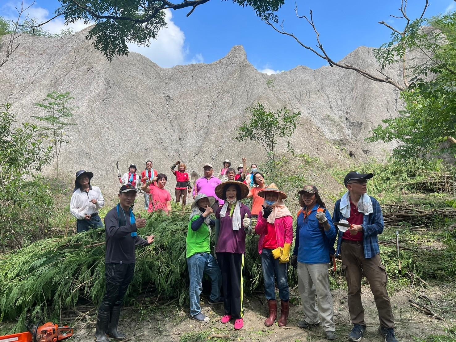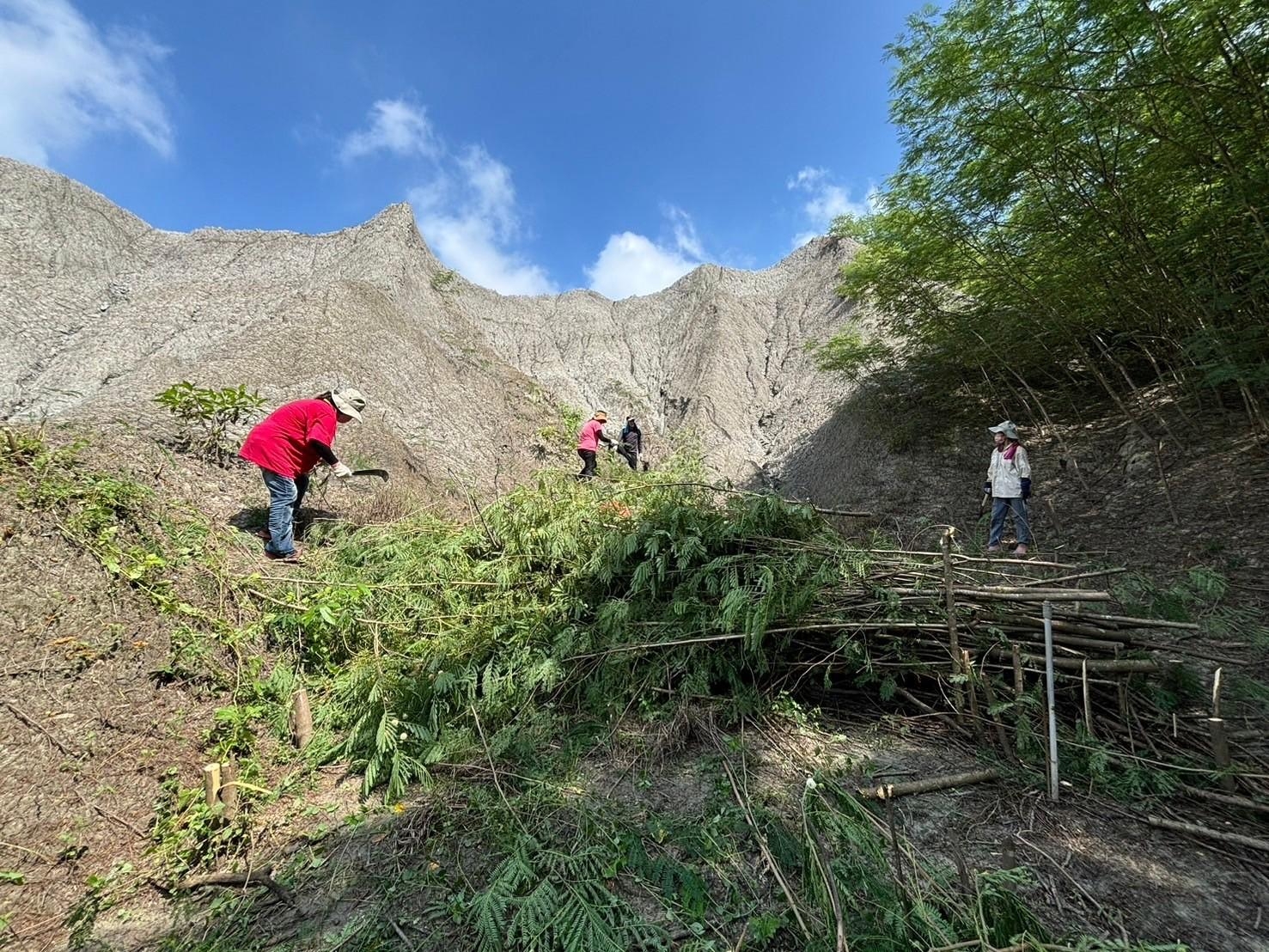 林業及自然保育署嘉義分署自112年起輔導臺南市龍崎永續發展協會執行社區林業計畫,社區志工組成「野地龍崎士」定期進行社區水環境及生態保育巡守,9月1日於牛埔泥岩水土保持教學園區內埤仔溝溪泥岩邊坡進行外來種銀合歡矮化並編柵,同時栽植臺灣原生植物「黃荊」,復育龍崎當地原始民俗植被,找回耆老們童年記憶並提供未來社區推廣應用。