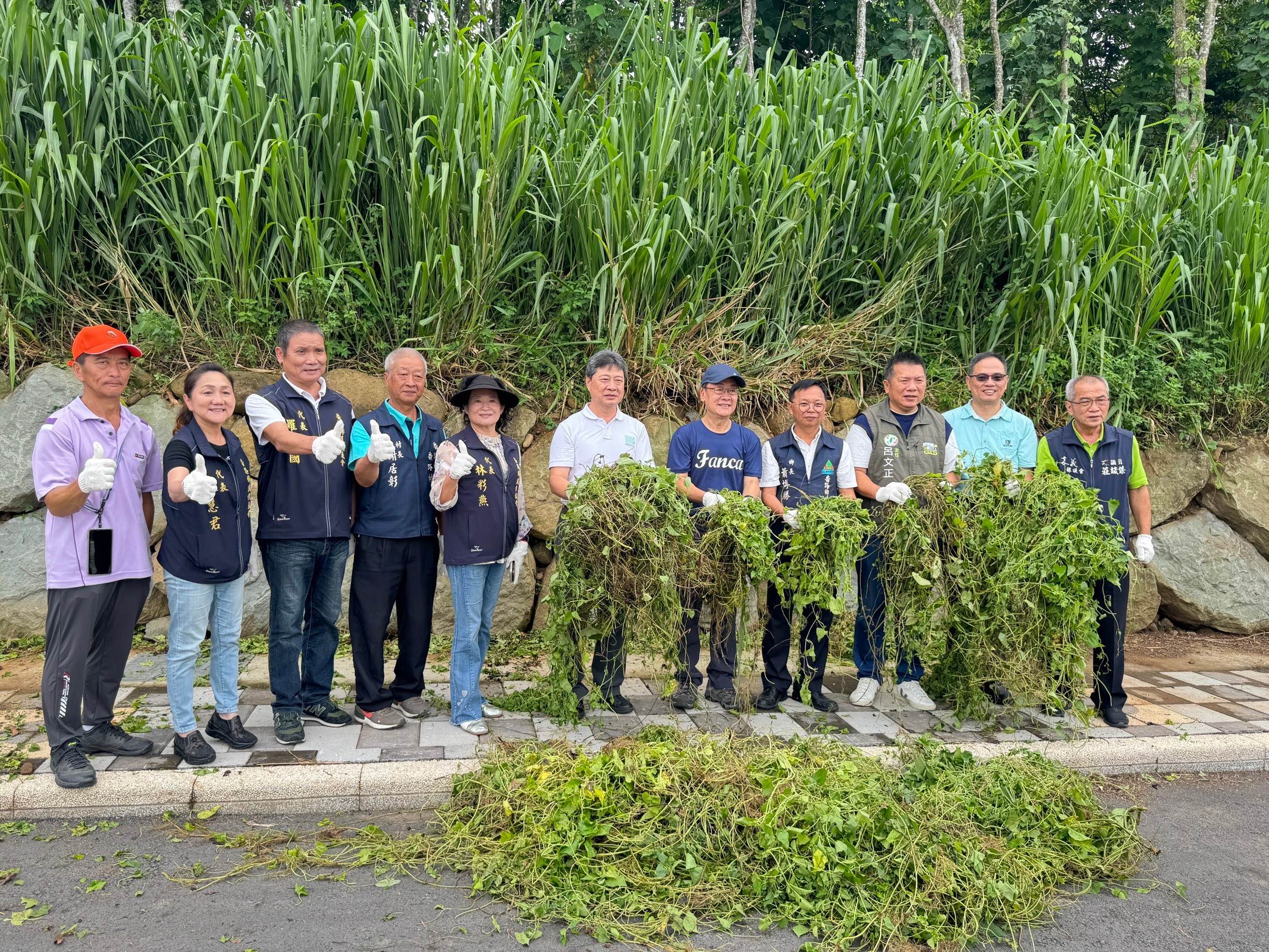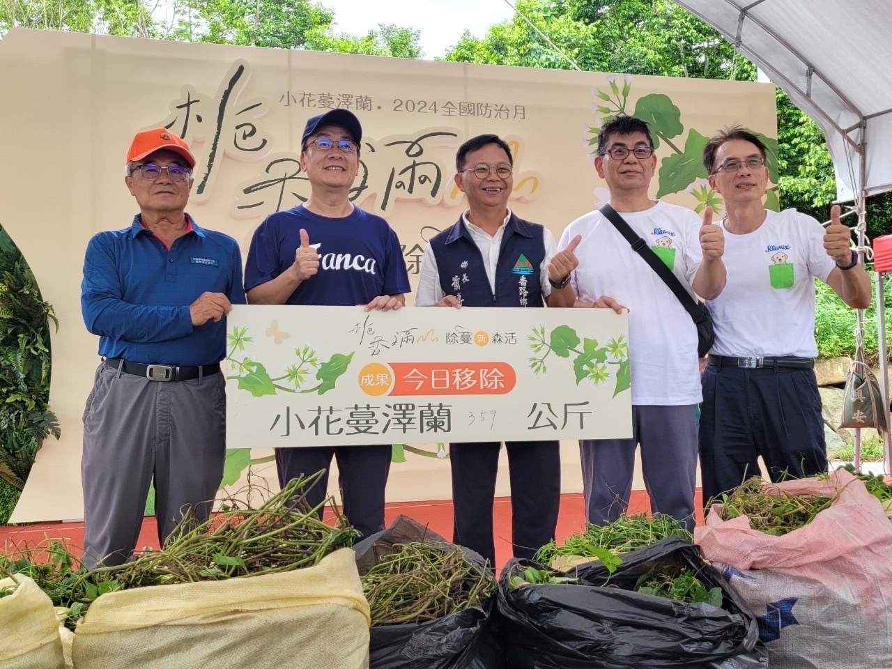 今天(9月7日)是一年一度「小花蔓澤蘭全國防治日」,農業部林業及自然保育署嘉義分署張岱分署長率領同仁偕同嘉義縣番路鄉公所、嘉義縣政府、金百利克拉克臺灣分公司、蘭潭國中師生、國家森林志工及社區居民等計150人,在嘉義縣番路鄉陸軍第5彈藥儲備庫建築群共同參與移除小花蔓澤蘭活動,現場並有收購小花蔓澤蘭及贈苗活動,移除小花蔓澤蘭後則栽種山黃梔等樹苗,以避免小花蔓澤蘭再生,更可營造多樣性生物棲地。經統計參與人員共剷除小花蔓澤蘭359公斤、栽種山黃梔等芳香植物60株。