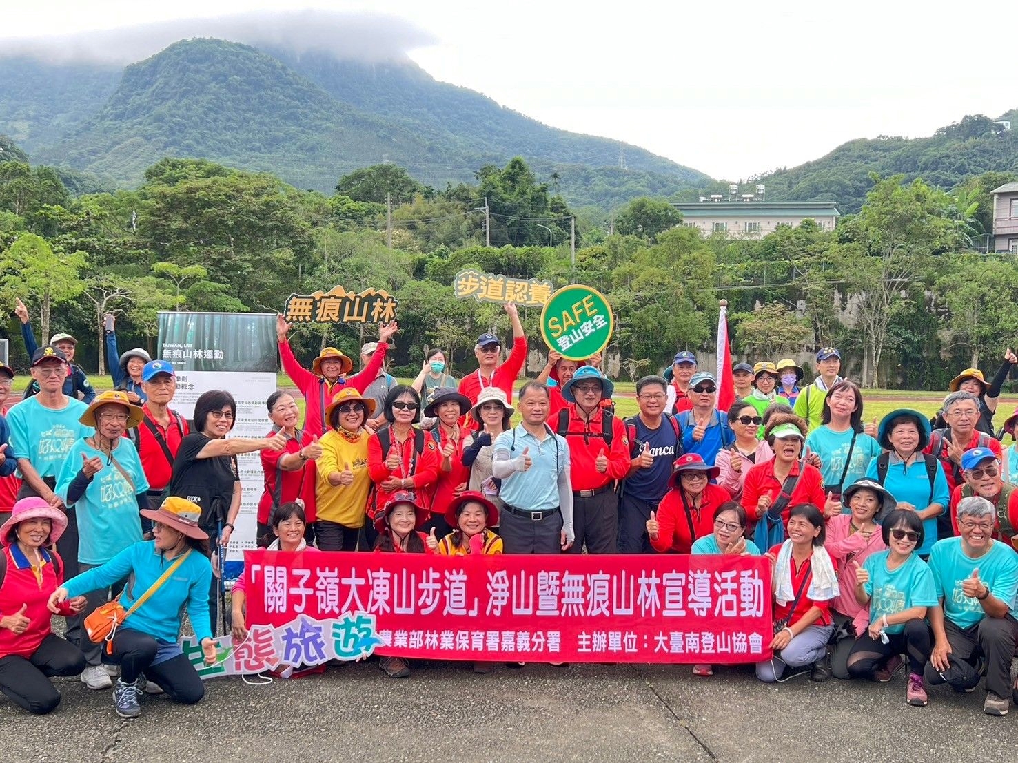今日(9月21日)農業部林業及自然保育署嘉義分署與大臺南登山協會合作舉辦關子嶺大凍山及雞籠山步道淨山活動,號召超過150位協會成員及國家森林志工熱情參與,活動現場登山協會夥伴與森林志工們攜手仔細清理步道沿途的垃圾,透過具體行動展現對自然環境的關懷與責任,此次活動不僅有效提升步道環境,也凸顯出公私協力守護台灣山林資源的成效及重要性。