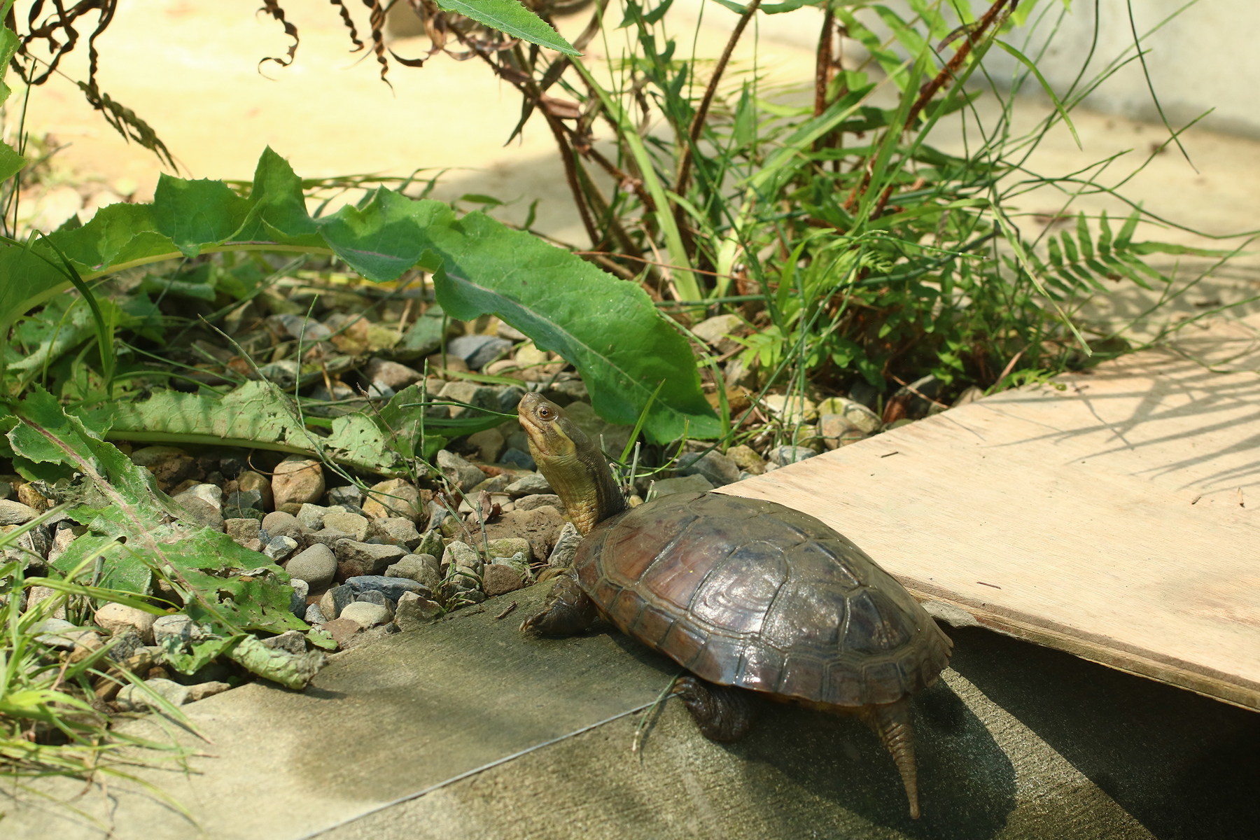 嘉義分署表示,臺灣共有5種原生陸域龜類,近年來因棲地消失與盜獵走私等壓力,致使野生族群存續面臨嚴峻考驗,其中食蛇龜及柴棺龜已被列入瀕臨絕種保育類野生動物,金龜則列為珍貴稀有保育類野生動物。為強化臺灣原生龜類保育工作,觸口龜類保育教育園區於108年成立,作為推廣臺灣原生龜隻的保育研究基地,並自112年開始每年定期開放預約參訪,加強民眾對龜類生態保育的認知。揭牌儀式象徵觸口龜類保育教育園區未來將逐步擴大服務對象,期盼加深與大專院校及國民小學的合作,在臺灣原生龜類的保育研究及教育推廣展開嶄新的一頁。