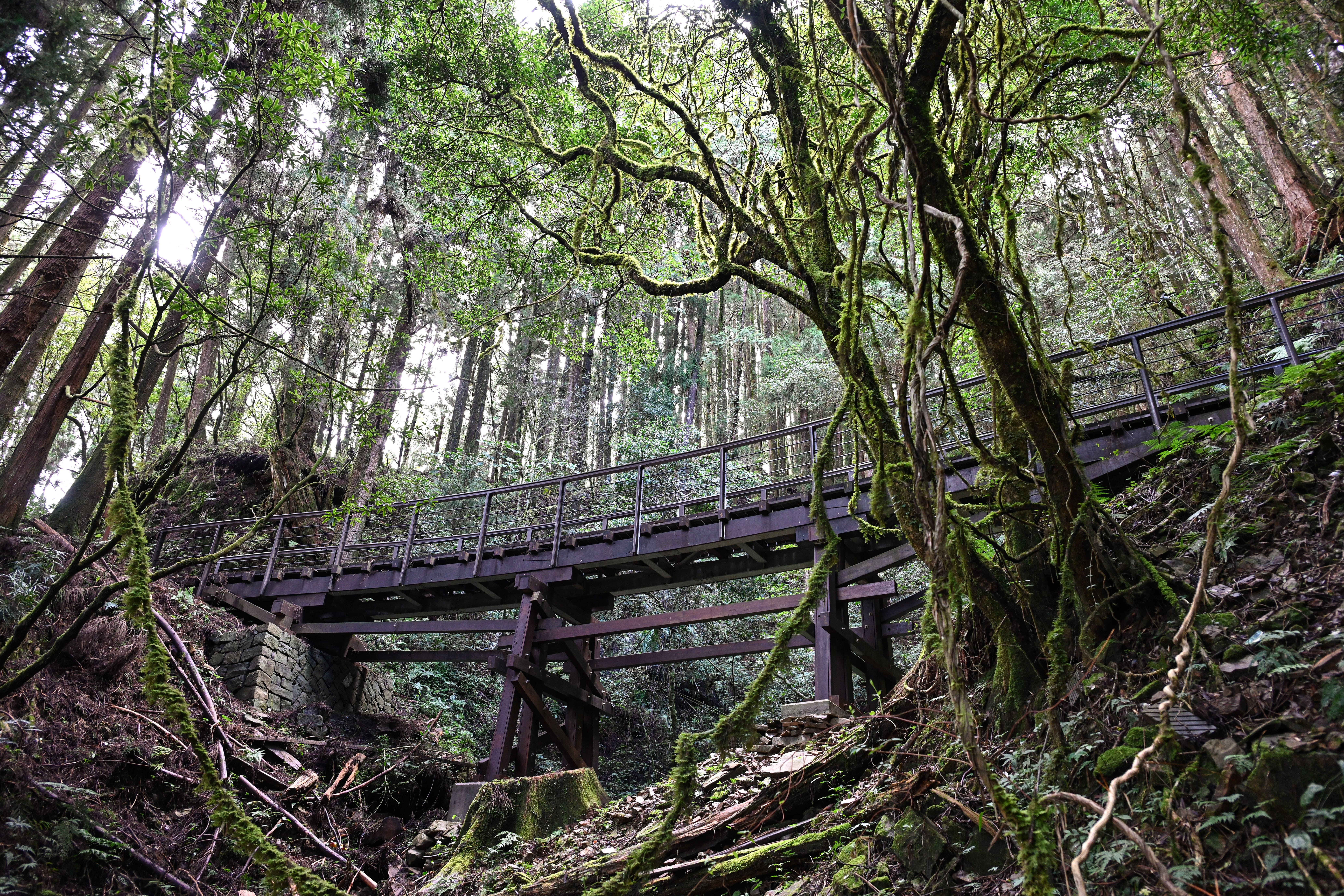 「阿里山森林遊樂區木蘭園排水工程」係嘉義分署為改善遊樂區內木蘭園周邊區域導排水機制,完善保全原有木棧道及步道,並遵循生態友善機制,結合原有林木與當地塊石,打造人文休閒與環境保育並行之嶄新步道系統;加上基地新設的圓弧形3階淨水池,做為淨水滯洪之功用,亦可供民眾休憩遊覽。