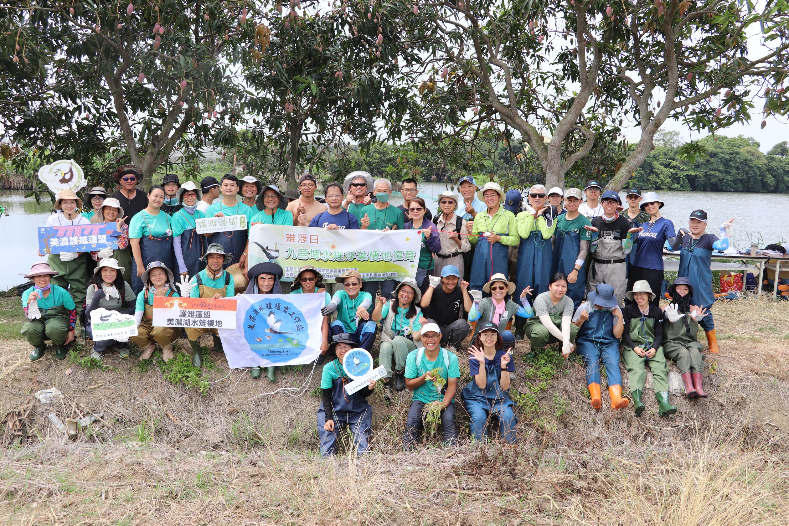 為營造水雉適宜棲息與繁殖的浮葉環境,強化臺灣農田濕地生態系的保育,農業部林業及自然保育署嘉義分署於昨(25)日在嘉義縣水上鄉塗溝村舉辦「雉浮日—九芎埤水雉浮葉棲地復育」活動,邀集生物多樣性研究所、農田水利署嘉南管理處等政府單位夥伴,以及國家森林志工、官田水雉生態教育園區志工、美濃湖水雉復育工作站志工、嘉義縣野鳥學會、荒野保護協會嘉義分會、塗溝社區發展協會與國立嘉義大學學生等,共計50人從嘉義、臺南、高雄齊聚九芎埤,於九芎埤種植印度莕菜、菱角等浮葉植物,復育水雉棲地。 嘉義分署說明,水雉為臺灣農田濕地代表性保育鳥種,屬於農業部公告的珍貴稀有保育類野生動物,主要在濕地內的浮葉植物上築巢、覓食,自民國78年水雉公告為保育類野生動物以來,歷經三十餘年,臺灣本島水雉族群數量從不到50隻,至113年冬季突破3000隻,是臺灣野生動物族群復育的標誌性物種。然而水雉族群仍面臨菱角農老化、改作導致棲地面積逐漸萎縮等問題,又如數年前因大旱導致嘉南平原菱角田區停止灌溉,在氣候及農業變遷多重影響下,恐面臨現有棲地不足的困境。為此,嘉義分署在國土生態綠網的框架下,積極尋覓可營造浮葉植物的水雉補充棲地,經盤點發現九芎埤位列於嘉南埤圳重要濕地(國家級),屬農田水利署管轄且無灌溉功能之埤塘,且其周邊之菱角田為嘉義縣水雉生態給付之推動重點區域之一,是極具潛力之水雉衛星族群復育據點,故向農田水利署嘉南管理處認養。 活動當日,嘉義分署發動來自嘉義、臺南、高雄等致力於保育水雉的民間團體與志工夥伴,齊心合力於九芎埤東側水灣約2,000平方公尺區域內,種植近2萬株的印度莕菜及菱角,期透過浮葉植物營造繁殖與覓食環境。嘉義分署指出,此次行動不僅是水雉復育工作的重要一環,更是推動「嘉南國土生態綠網」計畫的具體實踐,透過國家與民間攜手合作,串聯濕地地景,強化生態廊道連結,進一步提升國土生物多樣性安全網效能。活動過程中,許多參與者是第一次下水親身體驗棲地營造作業,現場氣氛熱絡。未來嘉義分署將持續與各界合作,透過復育行動、友善耕作推廣及生態給付制度,擴大水雉與濕地關注物種之友善環境面積,實現人與自然共好願景。