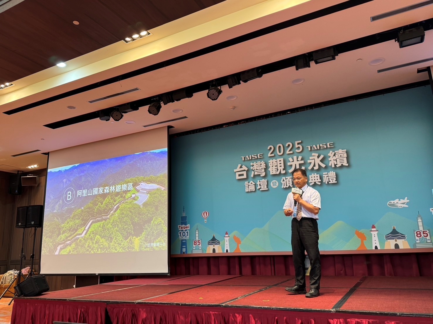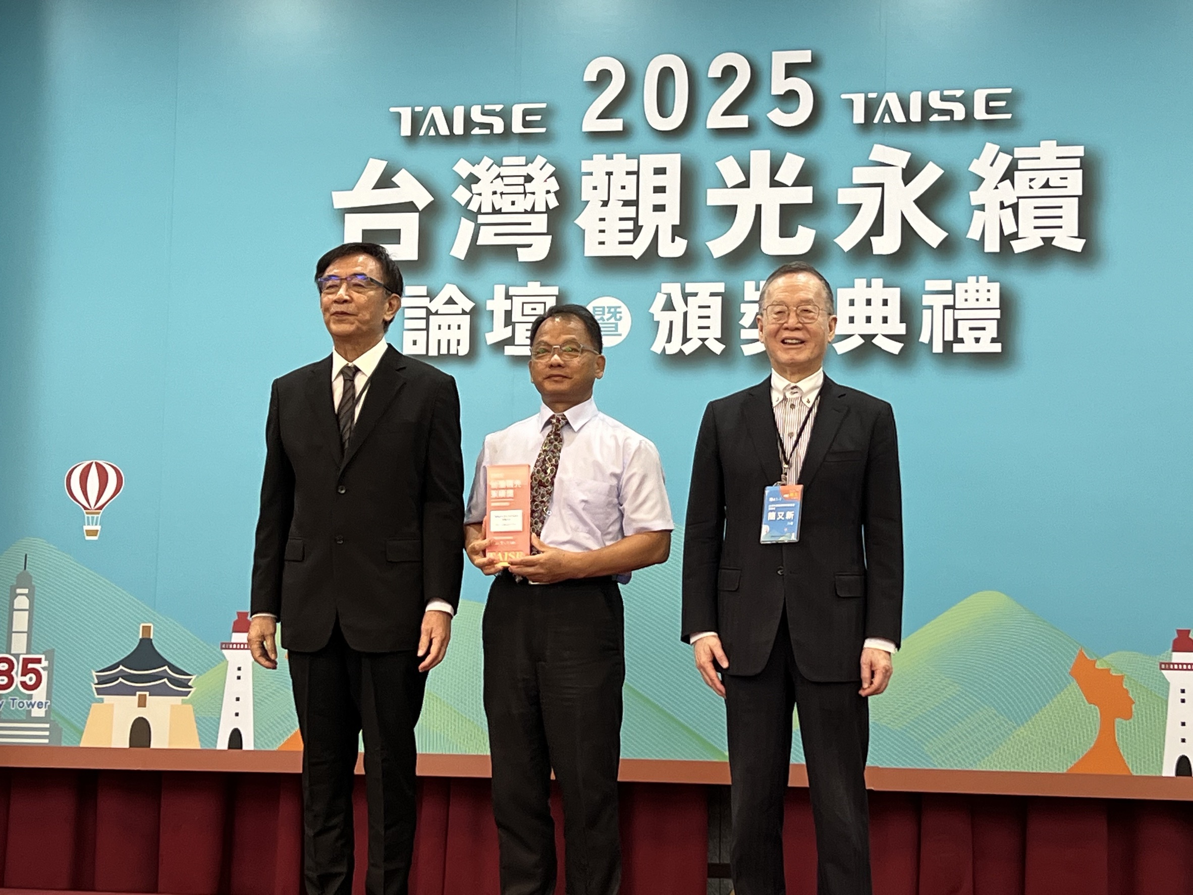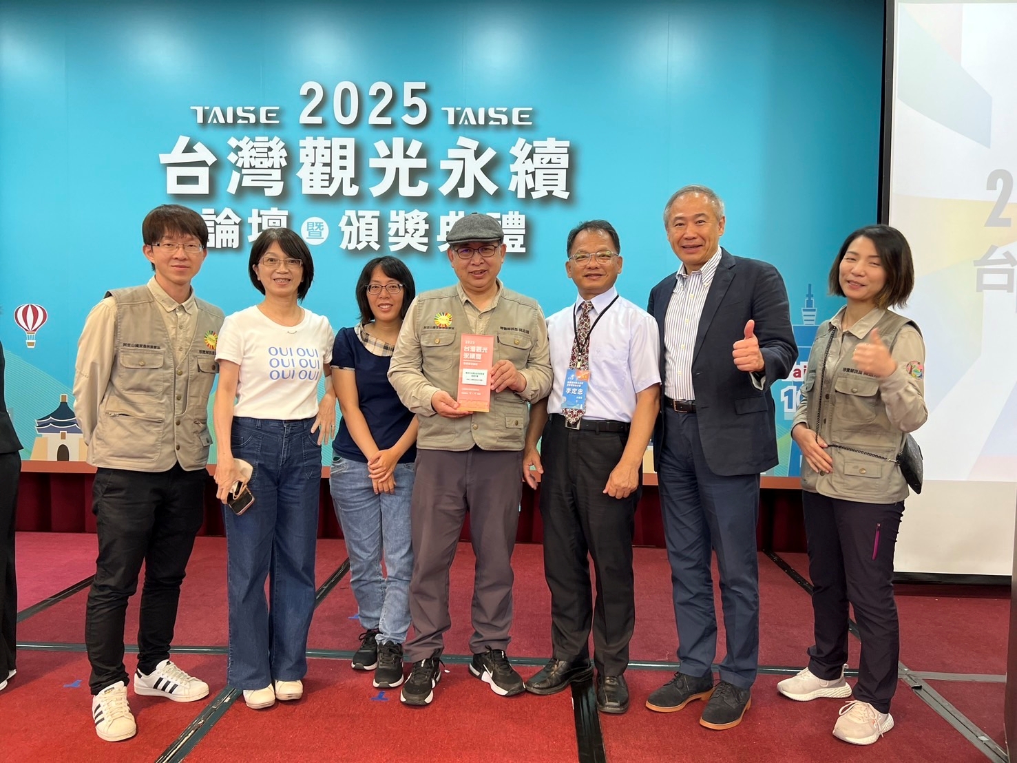 2025台灣觀光永續獎今(4)日於台大醫院國際會議中心舉行頒獎典禮,農業部林業及自然保育署嘉義分署所轄阿里山國家森林遊樂區榮獲「永續旅遊目的地金級獎」,成為台灣永續旅遊發展的標竿典範,由嘉義分署長李定忠率同仁及社區夥伴代表領獎,共享榮耀!