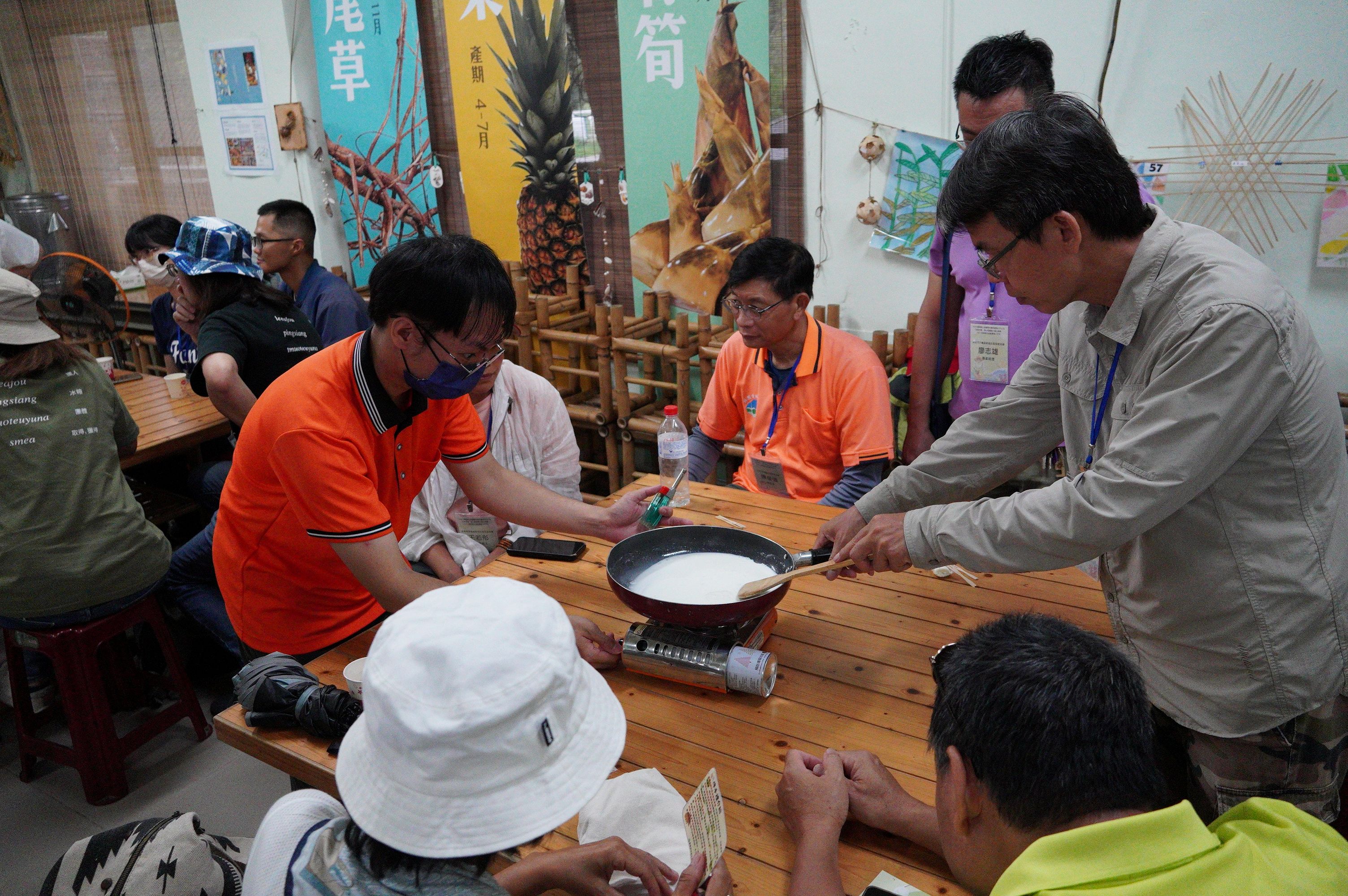 左鎮公舘社區發展協會陳柳足理事長精心呈現社區林業及地方創生成果,社區活用葛鬱金、莿竹等民俗植物為在地創造經濟價值,運用葛鬱金打造雪花糬DIY手作體驗課程,並復振竹工藝凝聚社區向心力。返鄉青年賴政達導覽左鎮市場的空間改造,搭配在地職人傳統竹編工藝,讓老舊的市場注入創生活力。走入充滿人文歷史淬鍊的左鎮老街,欣賞保留的木造建築,現代咖啡館、茶藝館、選物店的入駐,為原先沒落的老街創造新生命及樣貌,展現左鎮豐沛的里山精神與地方創生能量。