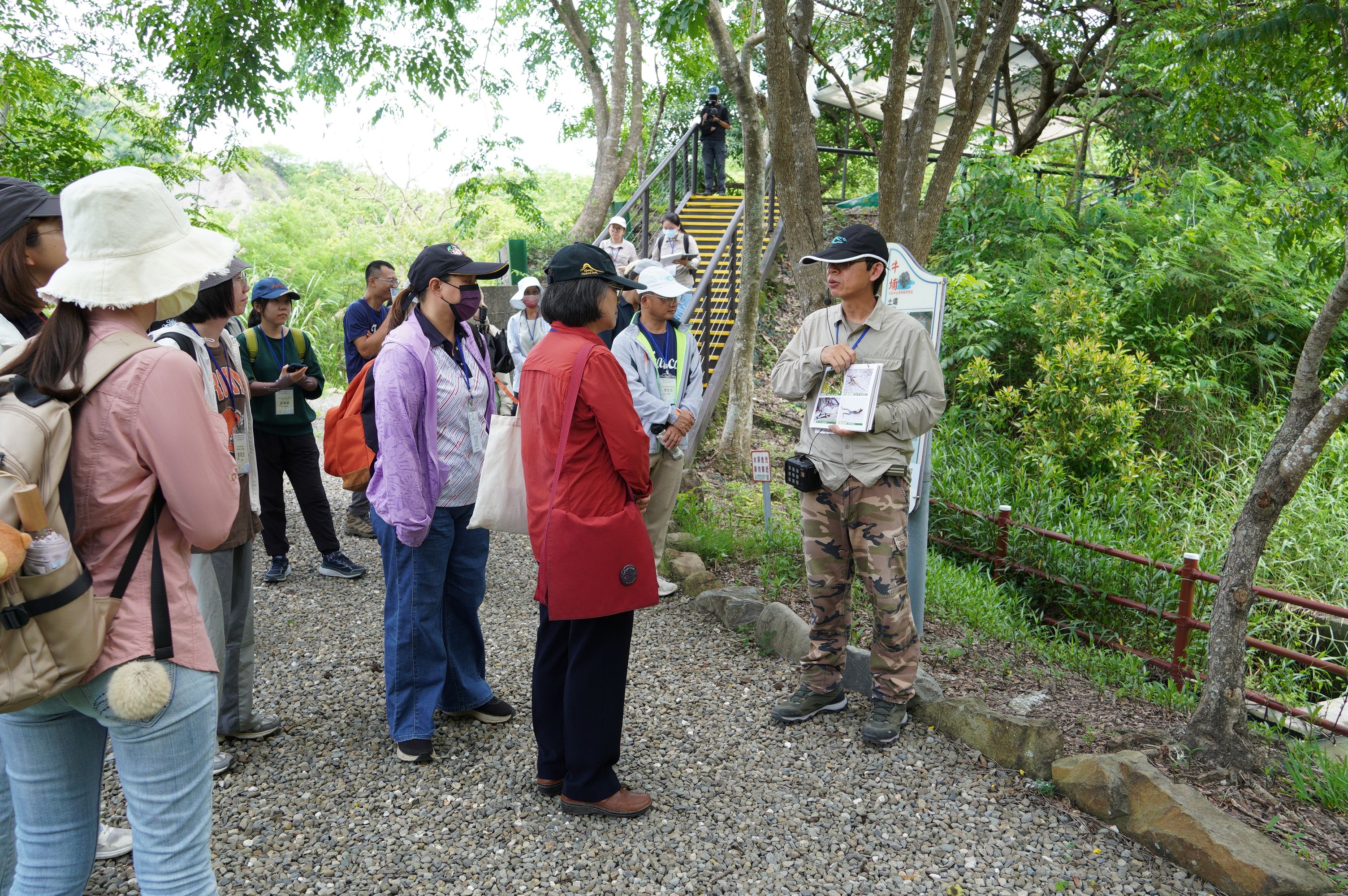 本次三合一工作坊實地走訪龍崎、左鎮淺山惡地,首先由臺南市龍崎永續發展協會余奕靖執行長分享協會與在地居民實踐里山倡議的心路歷程,藉由社區林業計畫培力專業解說員,投入牛埔泥岩惡地的特殊地景保育與生態調查,帶領參訪夥伴觀察光蠟樹上吸食汁液的獨角仙,展現龍崎豐富的生態資源與解說軟實力。接續龍興社區發展協會精心籌備里山風土餐桌,由陳靜儀總幹事解說特色農產及穿山甲保育歷程,並導入家庭農園概念,為社區永續發展及生態保育帶來一線生機。