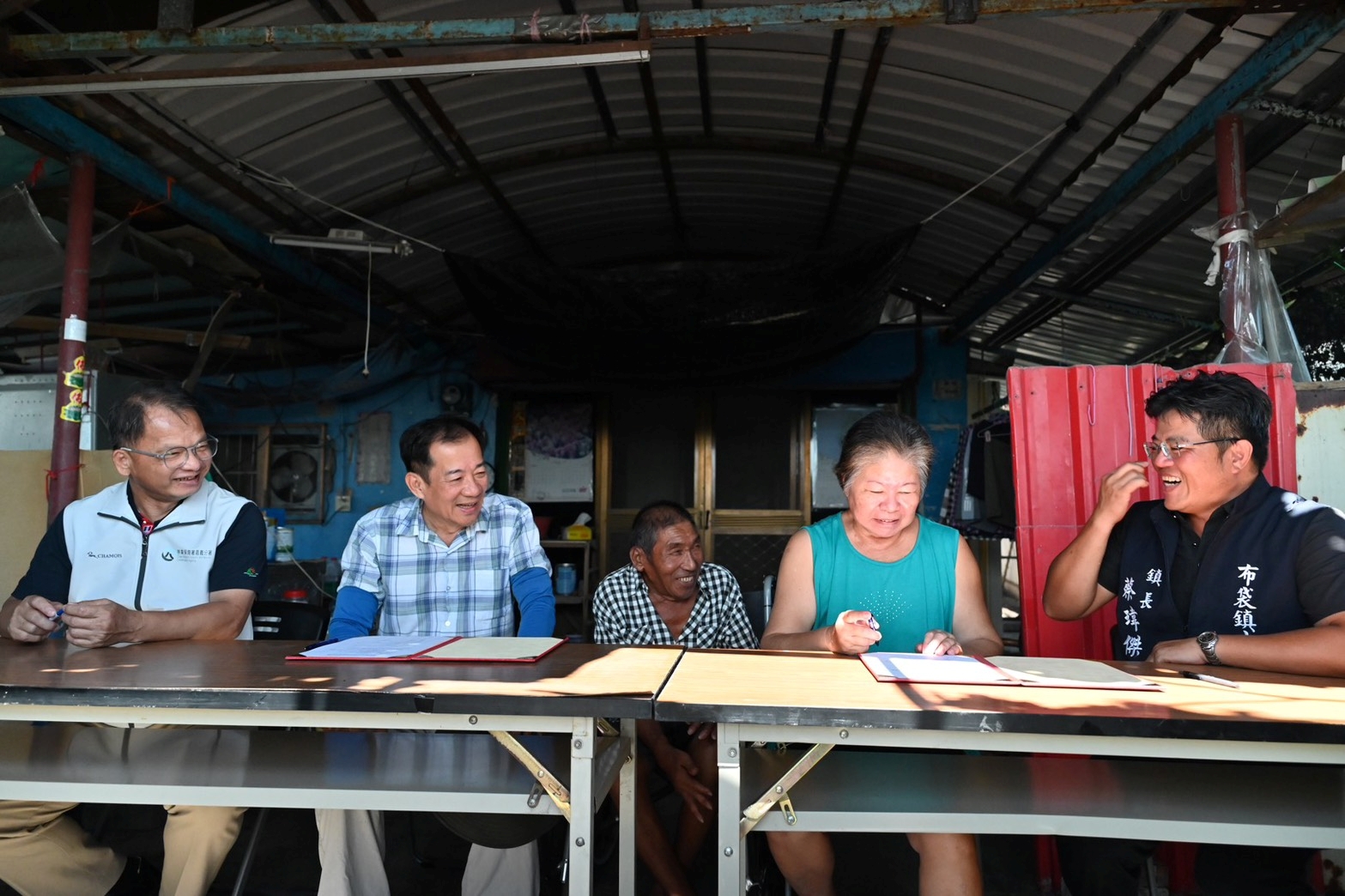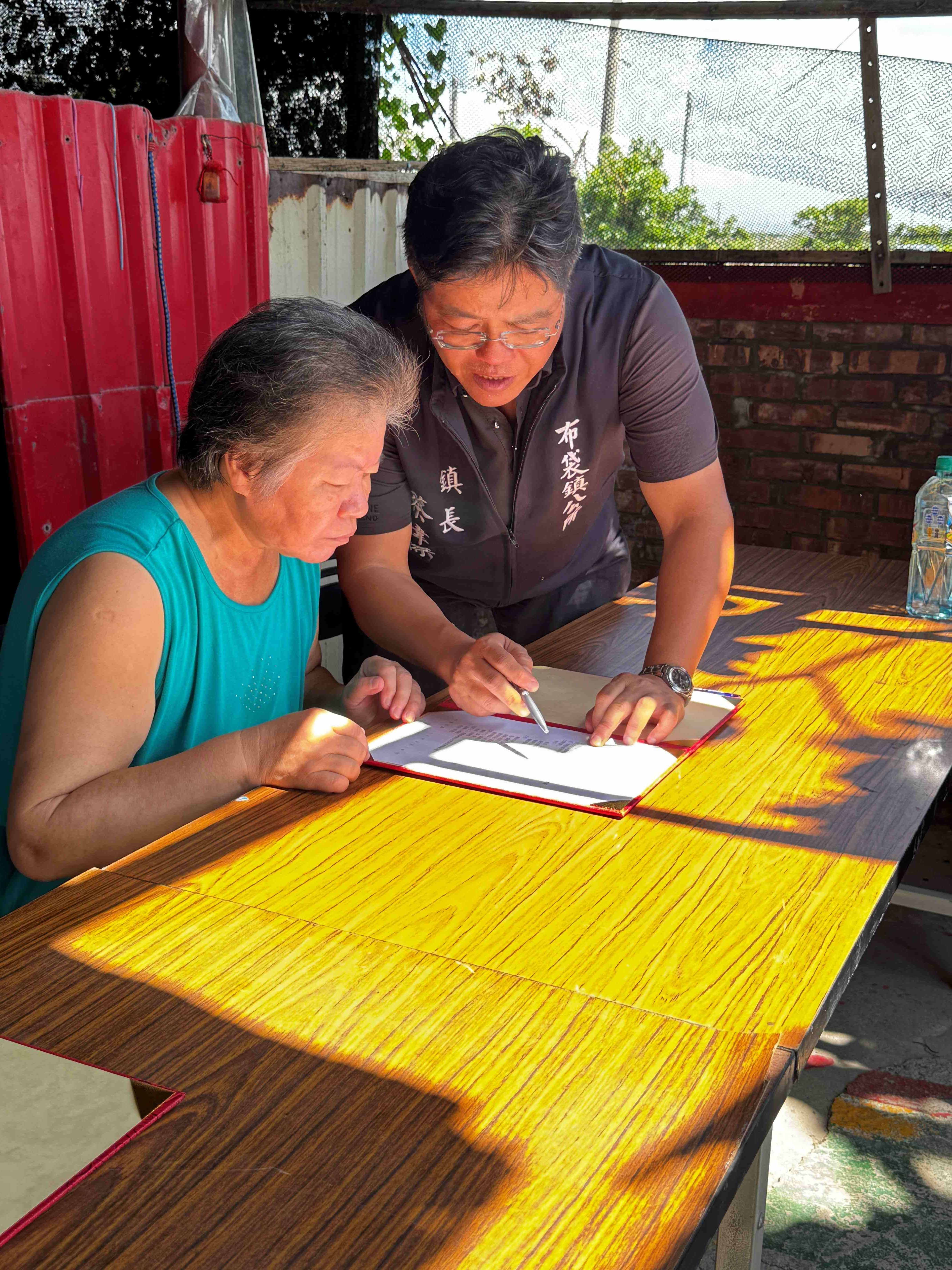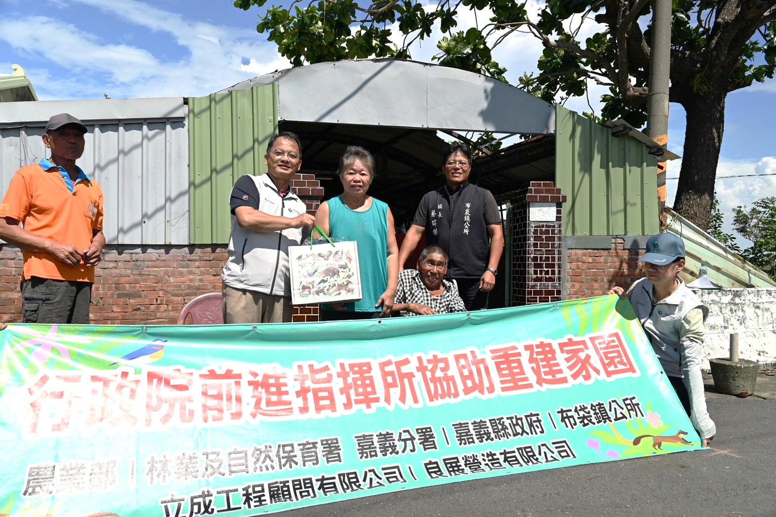 丹娜絲颱風重創雲嘉南地區,造成多處民宅屋頂牆面受損嚴重,農業部林業及自然保育署嘉義分署在「行政院雲嘉南災害復原前進指揮所」調度下,媒合廠商協助嘉義縣布袋鎮居民重建家園。透過嘉義分署的號召,立成工程顧問有限公司及良展營造有限公司等2間金質獎優良廠商主動加入災修行列,多次訪查布袋鎮受災屋狀況並詢求住戶意願。今(19)日在嘉義分署分署長李定忠及嘉義縣布袋鎮鎮長蔡瑋傑的見證下,受災民眾正式與廠商簽約,廠商允諾會以最短的時間備料施工,將房屋儘速修繕完成,並且發揮「雪中送炭」精神負擔全額費用,讓住戶有安心棲身的家園。