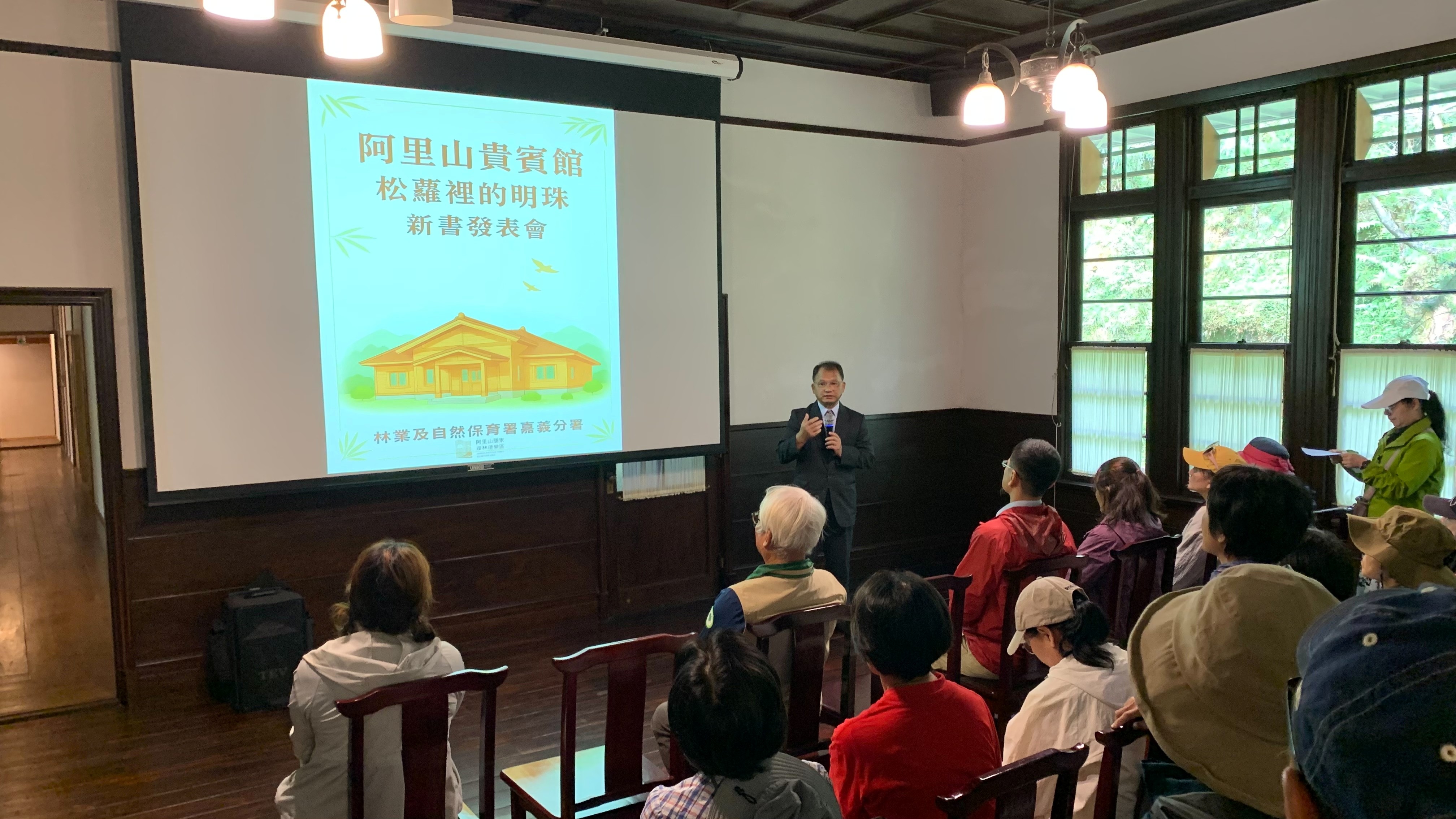 為推廣阿里山地區珍貴的文化資產與自然人文之美,林業及自然保育署嘉義分署於10月20日舉辦《阿里山貴賓館:松蘿裡的明珠》新書發表會,由嘉義分署分署長李定忠及國家森林志工兼本書作者王弘明老師,共同帶領35位民眾走進這座歷經近百年歲月洗禮、屹立山林間的歷史古蹟—阿里山貴賓館。 分署長李定忠表示《阿里山貴賓館:松蘿裡的明珠》由歷史建築愛好者王弘明老師歷時多年深度考察、精心撰寫,不僅詳實紀錄阿里山貴賓館自1930年日治時期興建以來的歷史沿革,更深入剖析其和洋折衷建築美學,呈現這座「山林明珠」如何成為台灣高山古蹟中的建築經典,本書不僅是一部建築研究專書,更是一段凝結歷史、人文與自然記憶的珍貴紀錄。 阿里山貴賓館原為日本始政40周年台灣博覽會的高階接待場所,歷經時代更迭與多次整修,除了參照日治時期原始建築圖說,將屋面、煙囪、內外牆面、木地板依原貌整修外,因應未來作為展示及空間活化再利用等用途,導入除濕、保暖空調設備,讓遊客有較舒適的體驗;也設置多媒體互動導覽設備,利用360度旋轉鏡頭即時觀看屋架內棟札、幣串、垂木及透氣窗等,使遊客更了解貴賓館歷史及建築特色。該工程除了獲選代表農業部參選第23屆公共工程金質獎外,更榮獲2023年嘉義縣舊建築景觀營造類建築園冶獎殊榮!是阿里山地區最具指標性的文化歷史地標之一。身處海拔約2,200公尺的林間,貴賓館宛如松蘿環繞的歷史寶盒,靜靜訴說著時代的記憶與建築之美。 為讓更多人認識這座珍稀建築,活動當天特別邀請王弘明老師親臨現場,分享其調查彙整過程中的點滴故事與寫作心得,並親自帶領「阿里山貴賓館導覽解說」。透過導覽員與作者的雙重視角,參與者可親身感受屋簷線條、窗花設計與木構結構間的工藝細節,深刻體會高山建築如何與自然環境共生,進一步提升對文化資產保存的理解與關注。此外,活動亦規劃「水山療癒步道」分組體驗,讓民眾循著林間步道漫遊於山霧與松蘿之間,認識阿里山獨特的生態景觀與森林療癒效益,參與者滿懷期待地專注於體驗山林的過程,也滿足對阿里山貴賓館神祕窺探的好奇心,進而促進人與自然、文化與心靈的深層交流,達到寓教於樂與身心療癒的雙重成效。 透過新書發表會、實地導覽與水山療癒步道的互動體驗,期盼讓更多人認識阿里山豐厚的文化底蘊,喚起對高山歷史建築保存與永續利用的重視與認同。