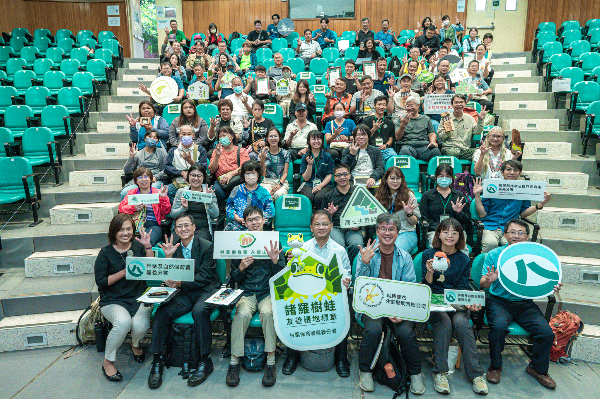 嘉義分署長期推動社區林業、生態保育及諸羅樹蛙友善棲地管理標章,表揚在地夥伴的努力成果。臺南市左鎮區公舘社區發展協會以莿竹工藝傳承與「葛鬱金」食農教育翻轉泥岩堊地,榮獲113年度特優社區;績優社區則包括臺南市龍崎永續發展協會及嘉義縣梅山鄉瑞峰社區發展協會,分別致力於移除銀合歡改栽種原生植物黃荊、參與穿山甲保育救傷與山麻雀社區保育行動及宣導等面向展現亮眼成果,體現社區共同守護生態的決心。嘉義分署自111年起推出「諸羅樹蛙友善棲地管理標章」,輔導農民以友善諸羅樹蛙的方式耕種竹林,獲得地方農友的認同,進而自主成立嘉義縣友善諸羅樹蛙蔬果生產合作社打產銷團體戰,並從標章走向生態品牌「好嘉筍」,以提高友善農產品價格,促使更多農民願意投入保育的行列。