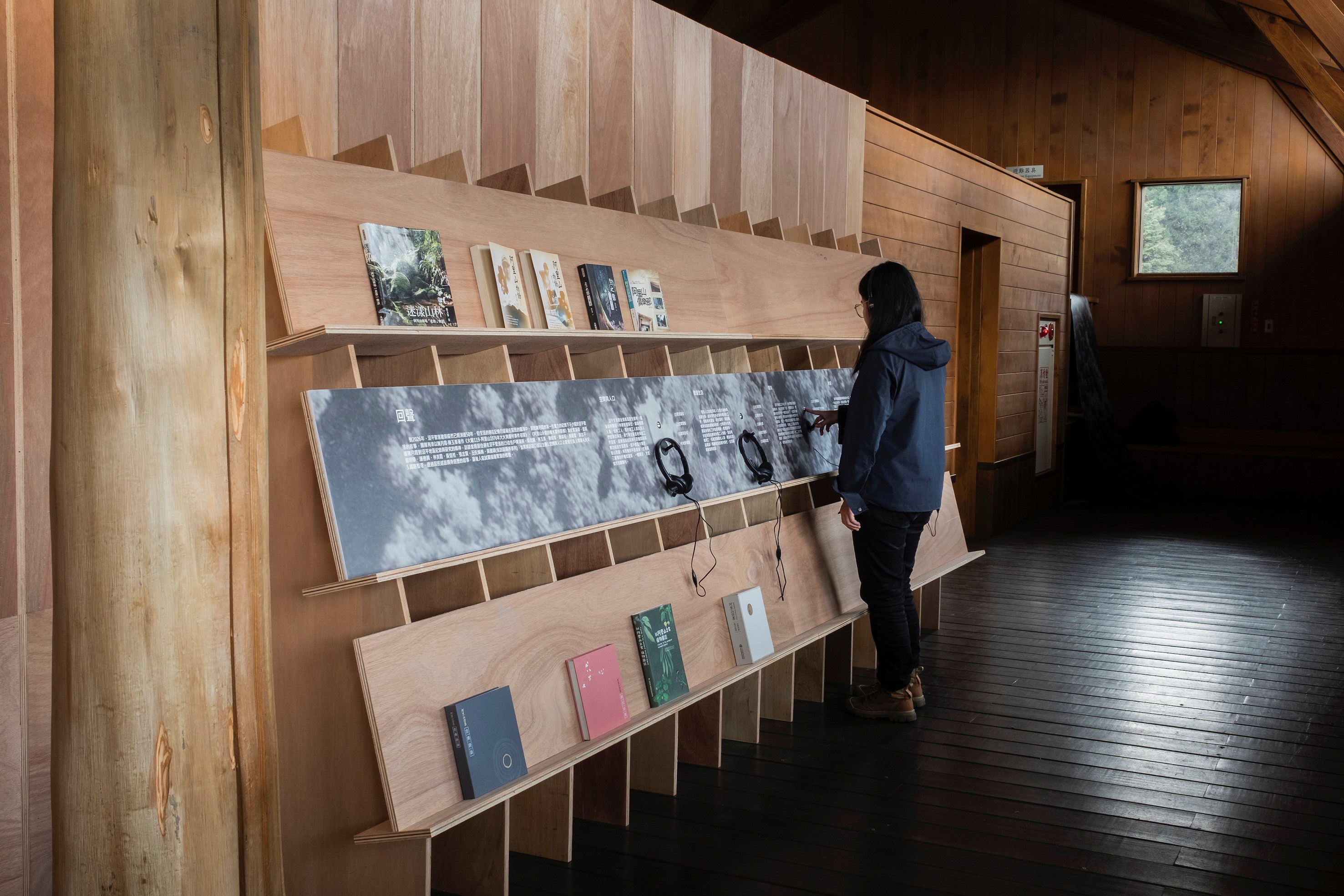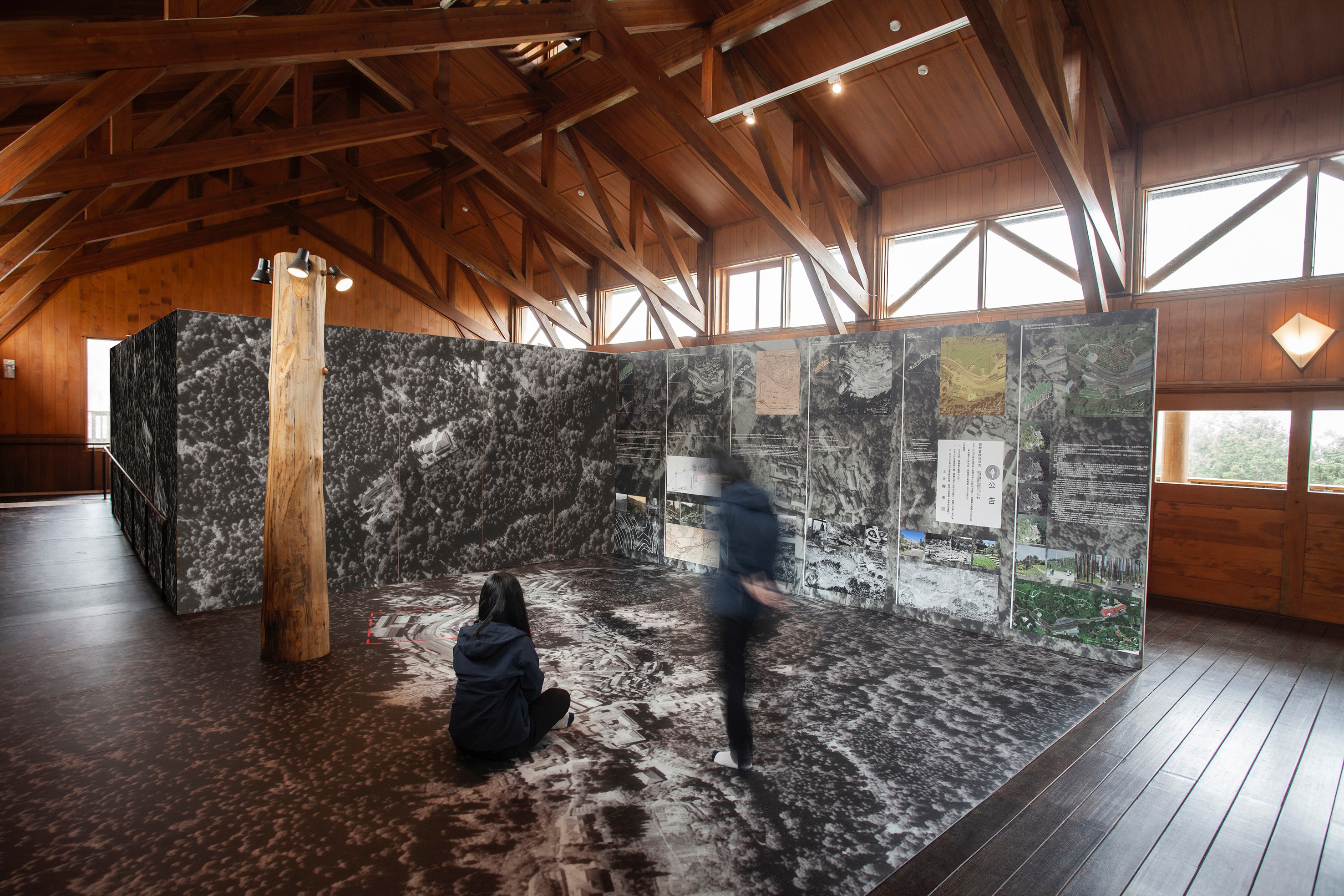 沼平火車站二樓室內展區則設置《從森林到森林》平面及影像展示,展示地板與牆面上印製比例1:100的1963年沼平地區空照圖,讓民眾能對應現況,認識沼平舊聚落規模、聚落與車站及工業空間之間的關係。《回聲》聲音裝置傳遞歷史,藉由訪談曾經居住在沼平聚落的15位住戶,將其訪談口述整理成《回聲》聲音裝置,透過居民述說親身經歷的過往,讓後人能試圖描繪聚落的樣貌。