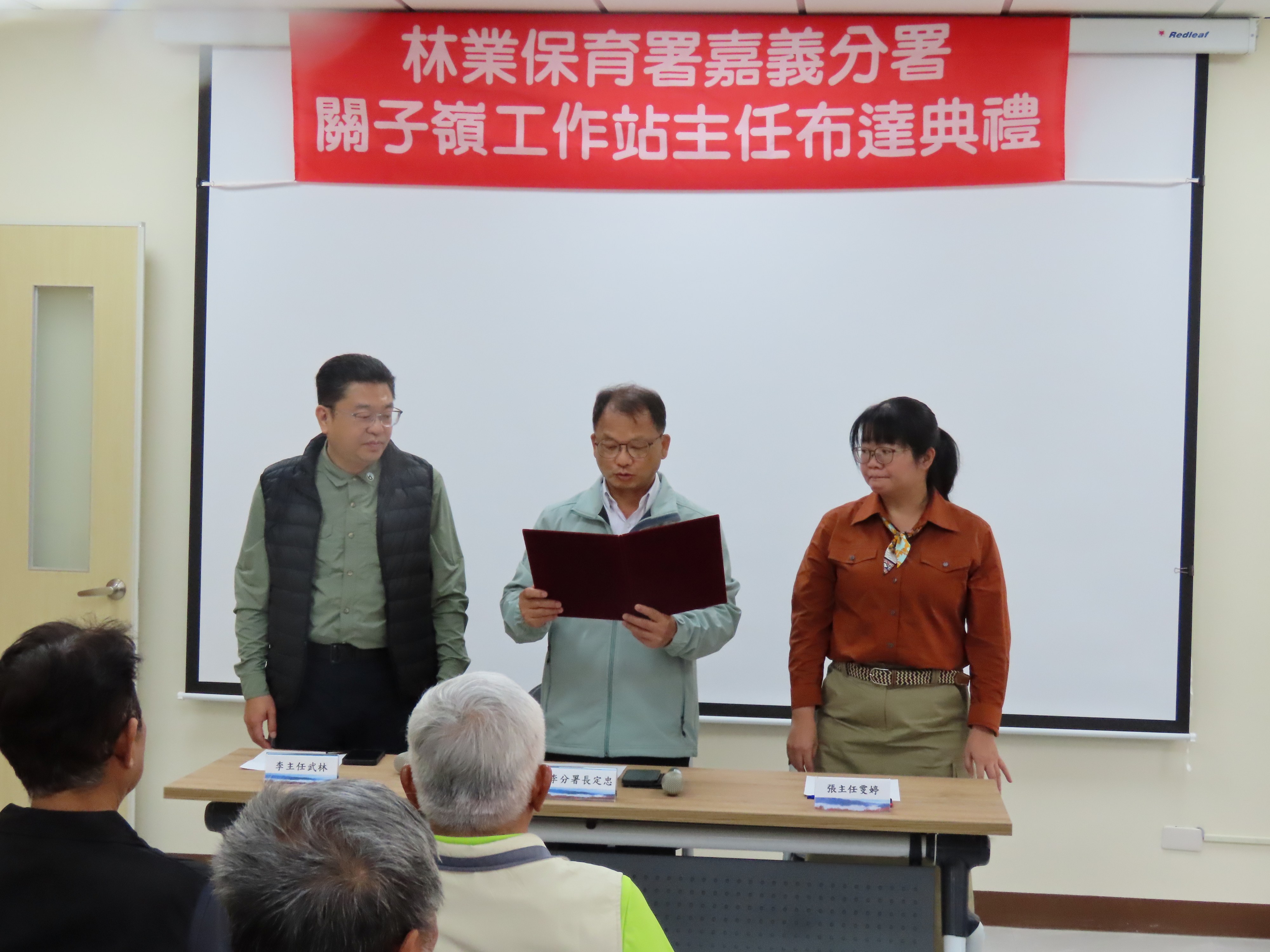 農業部林業及自然保育署嘉義分署於2日辦理2工作站主任布達典禮,分別於奮起湖及關子嶺工作站舉行,由分署長李定忠主持,典禮圓滿順利完成。