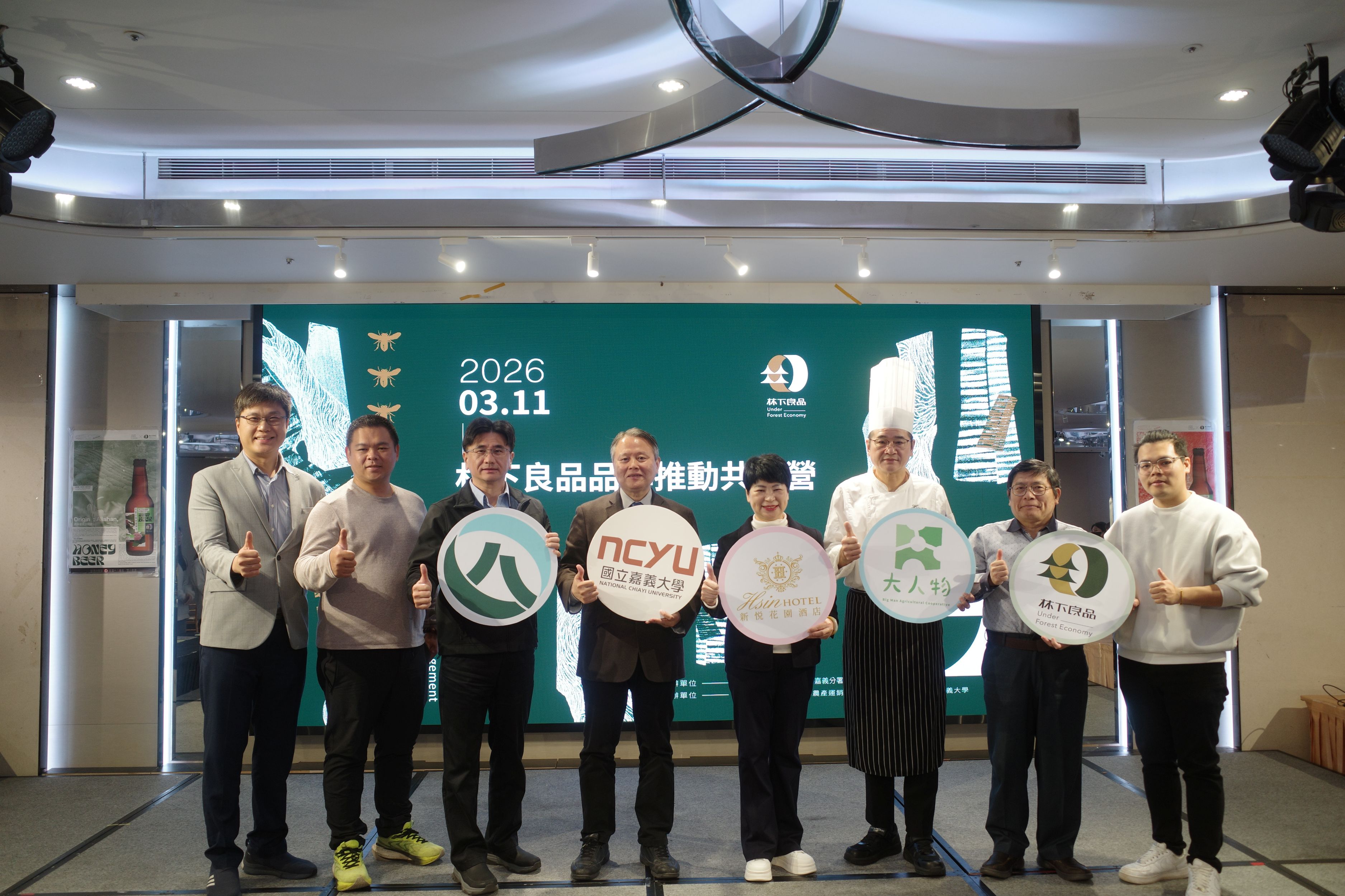 農業部林業及自然保育署嘉義分署今(11)日於嘉義市新悅花園酒店舉辦「林下良品」品牌推動共識營,邀請臺中市新社區菇產銷班第11班劉啟葦班長、台灣社區藝術與人文發展協會廖朝昌副理事長分享段木香菇及蜂產業永續發展經驗,強化林農生產技術與經營能力。活動並首度攜手新悅花園酒店,將林下經濟產品化身創意餐點,開啟產地與餐飲業者的品牌對話,共同推進「林下良品」品牌發展。